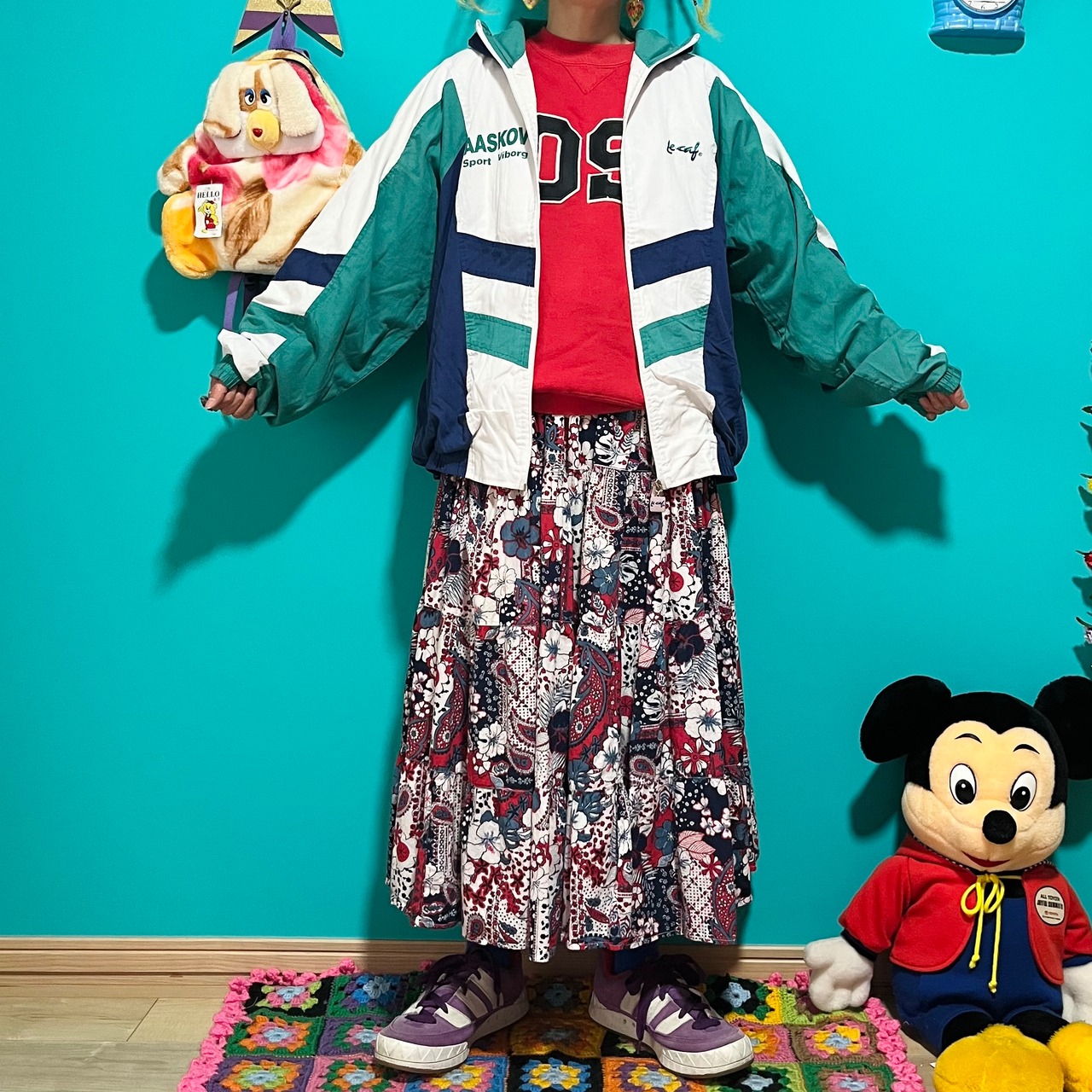 四角いジップチャームと背中のプリントもいい感じです!
