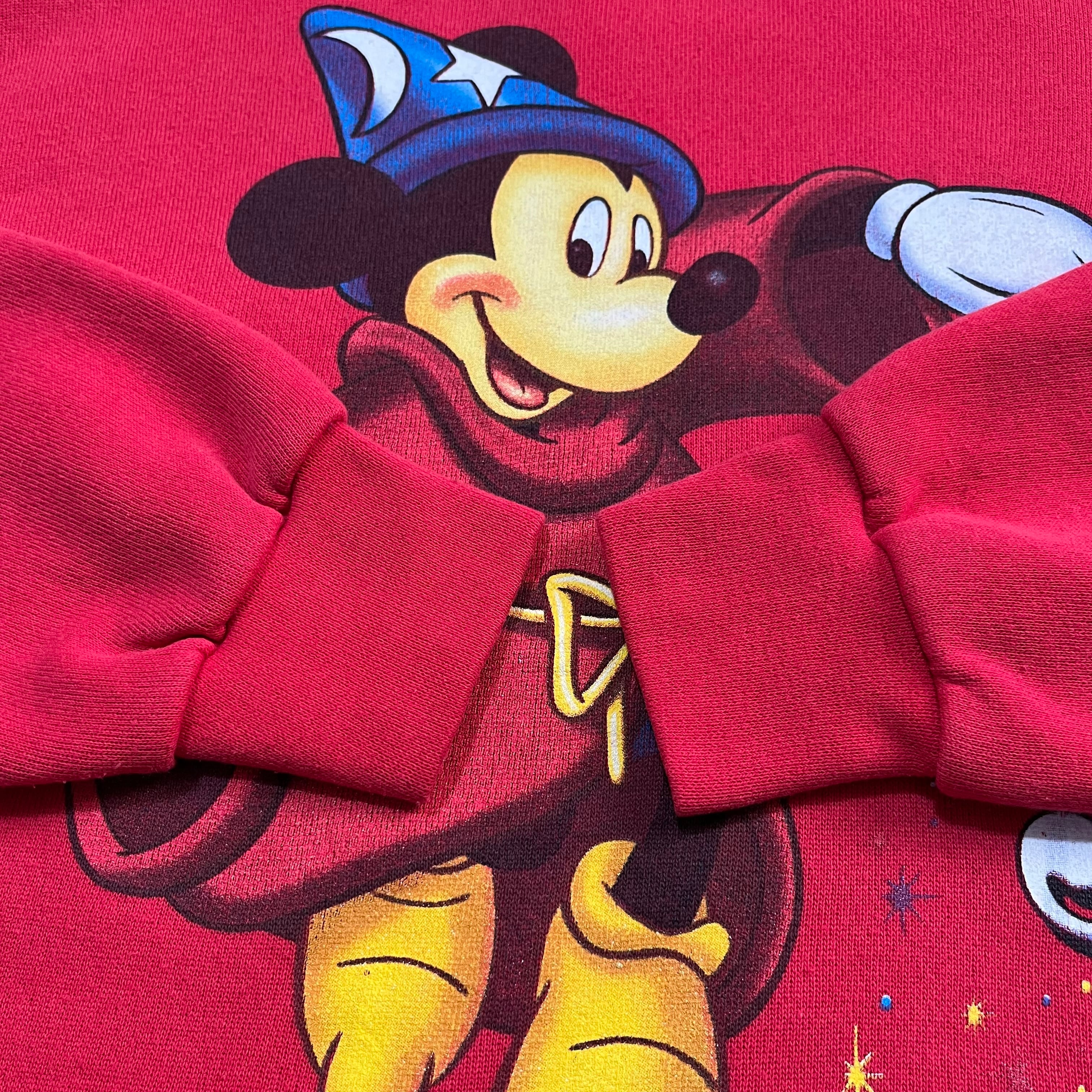 ファンタジアの魔法使いミッキーがプリントされた真っ赤なスウェットです。