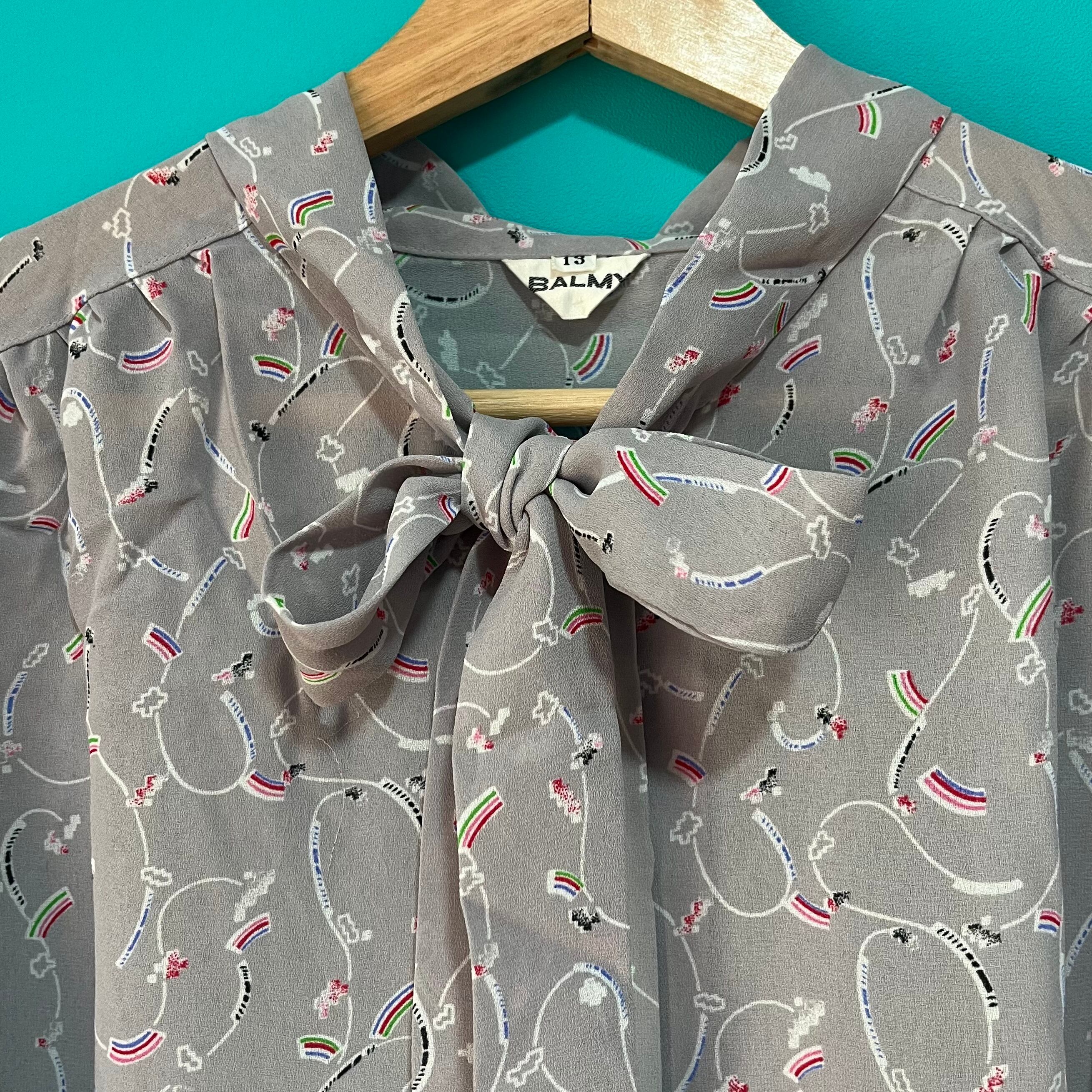 小さな虹がたくさん掛かった日本製レトロブラウスです。