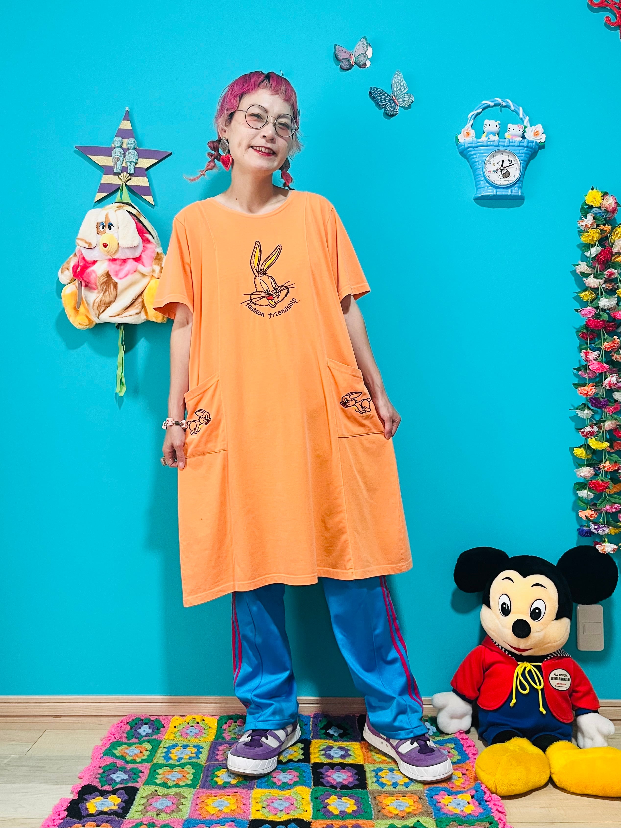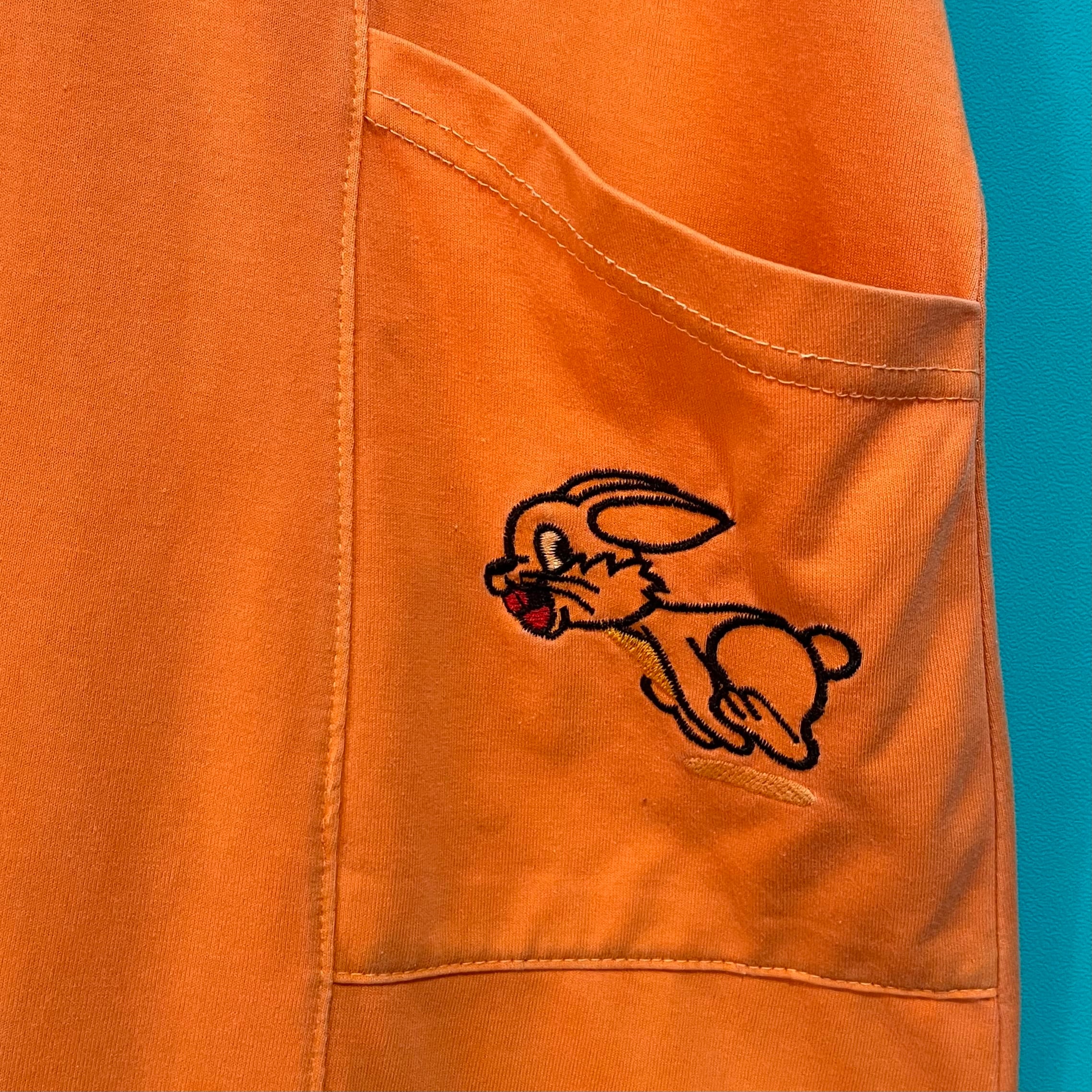 大きなポケットがあり、コミカルなウサギが飛び跳ねていますね。