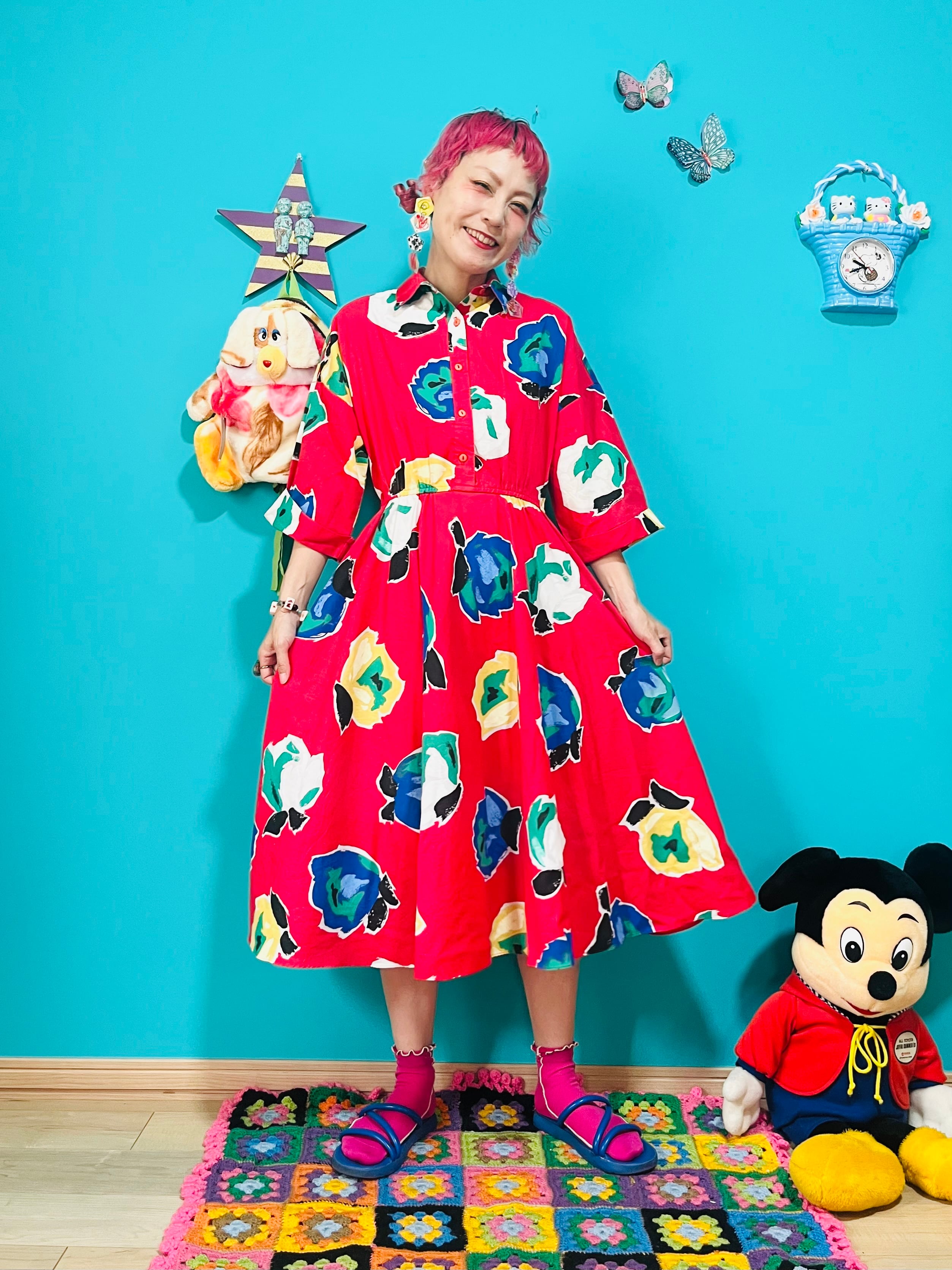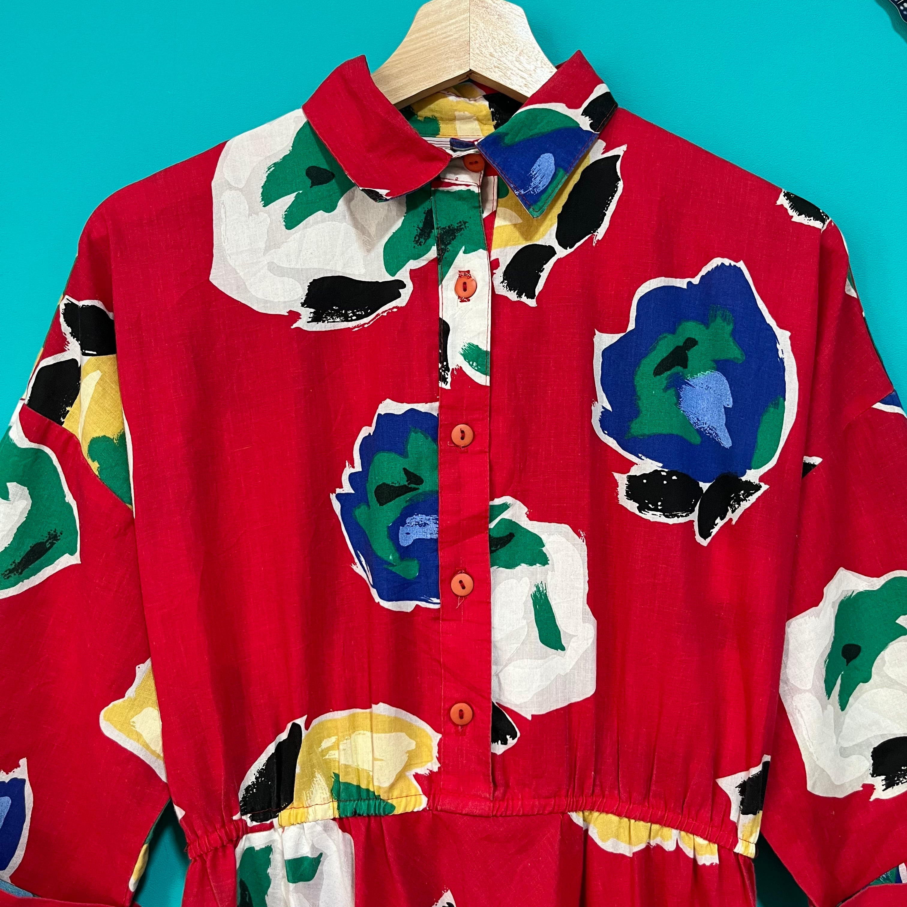 アメリカ製の真っ赤なお花柄ワンピースです。