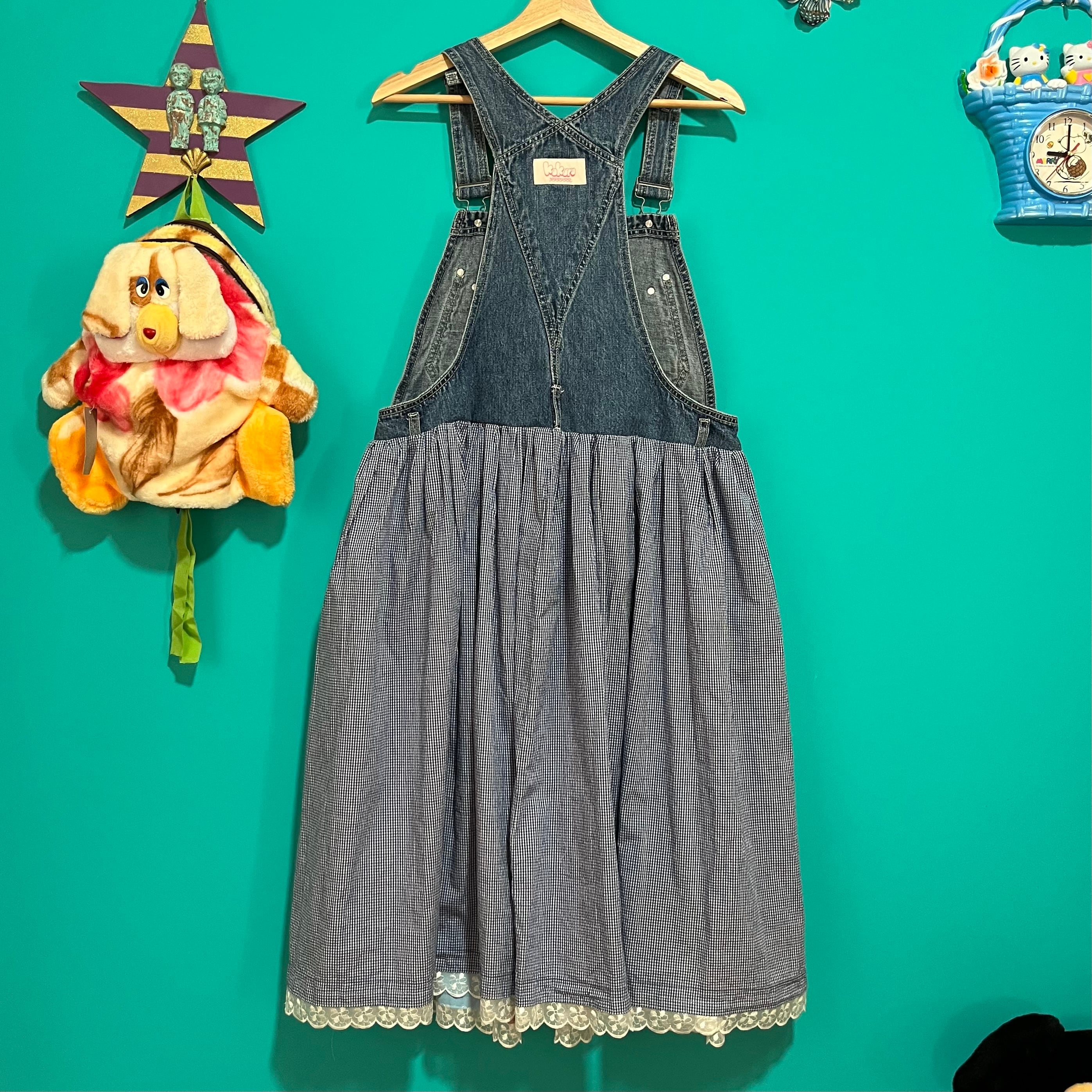 古着のオーバーオールにvintageのディズニーシーツと古着スカートをドッキングしました。