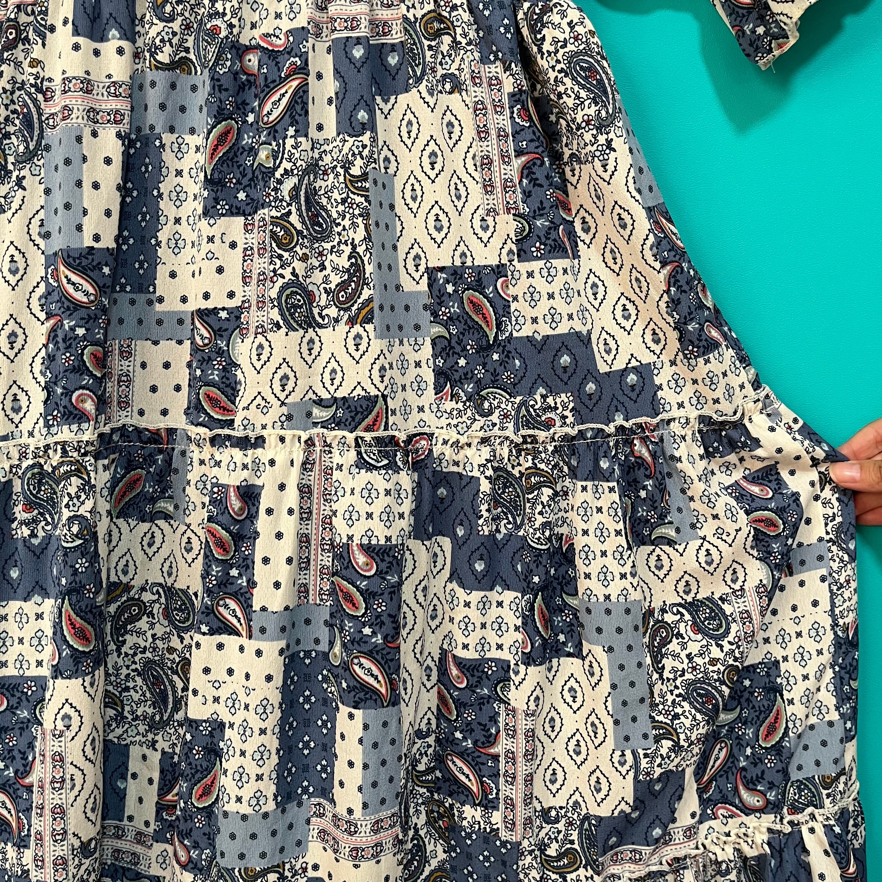 ふんわり膨らむ袖と広がりすぎないティアードスカートが