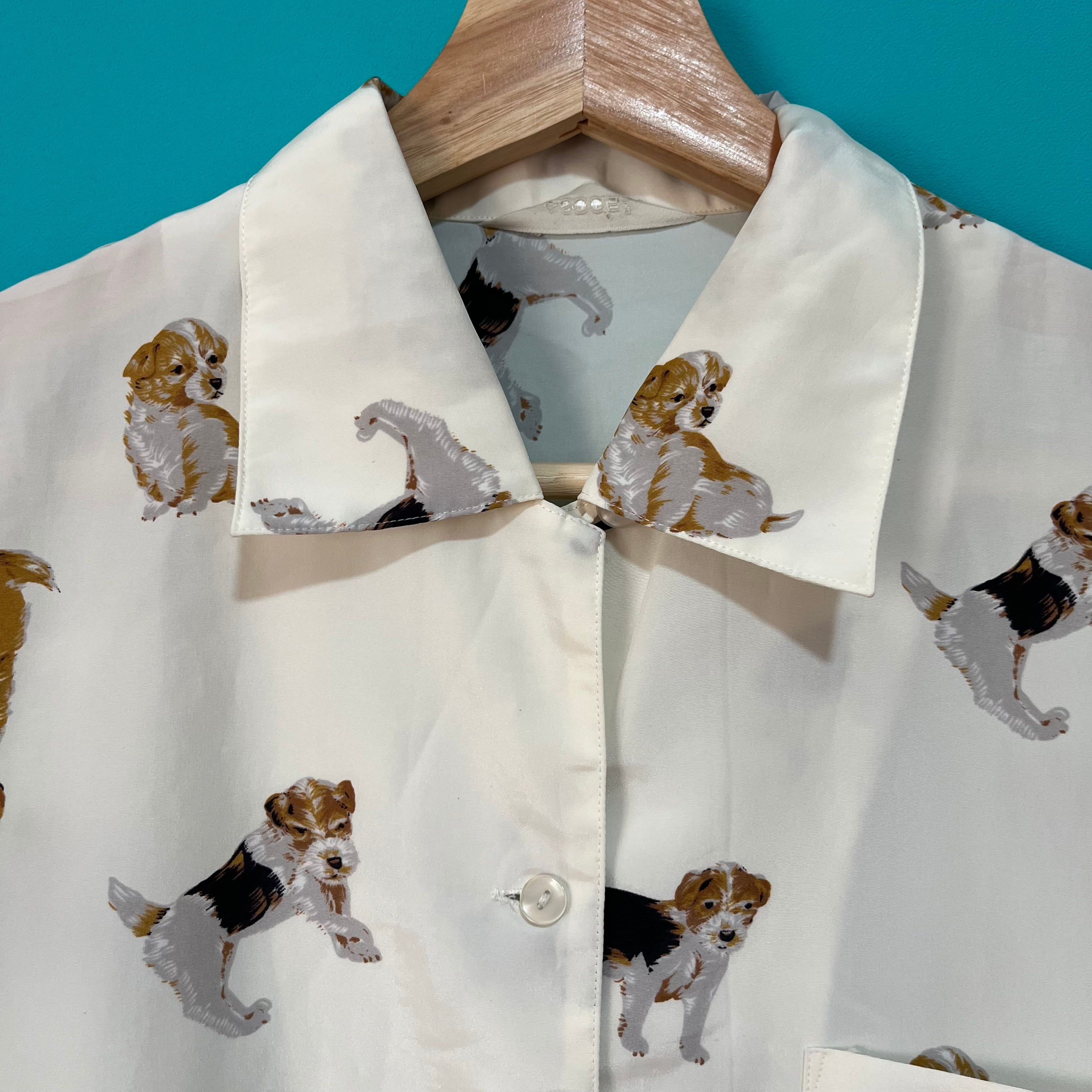 愛らしいわんちゃん柄のレトロブラウスです。