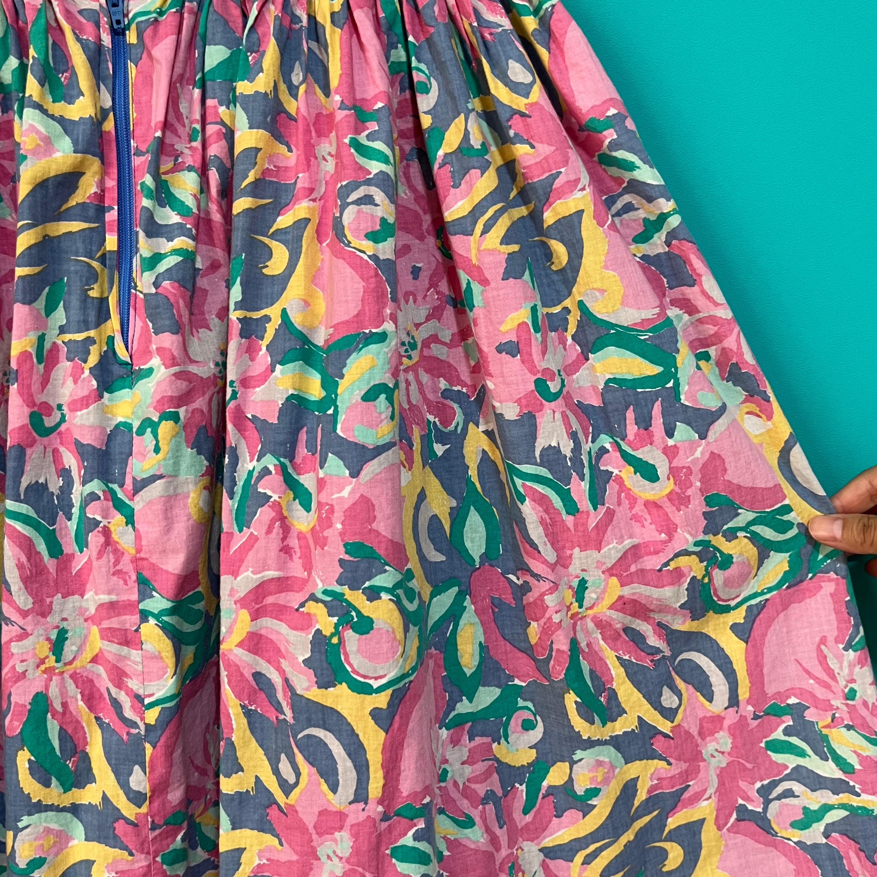 コットン素材のパステルカラーお花柄スカートです。