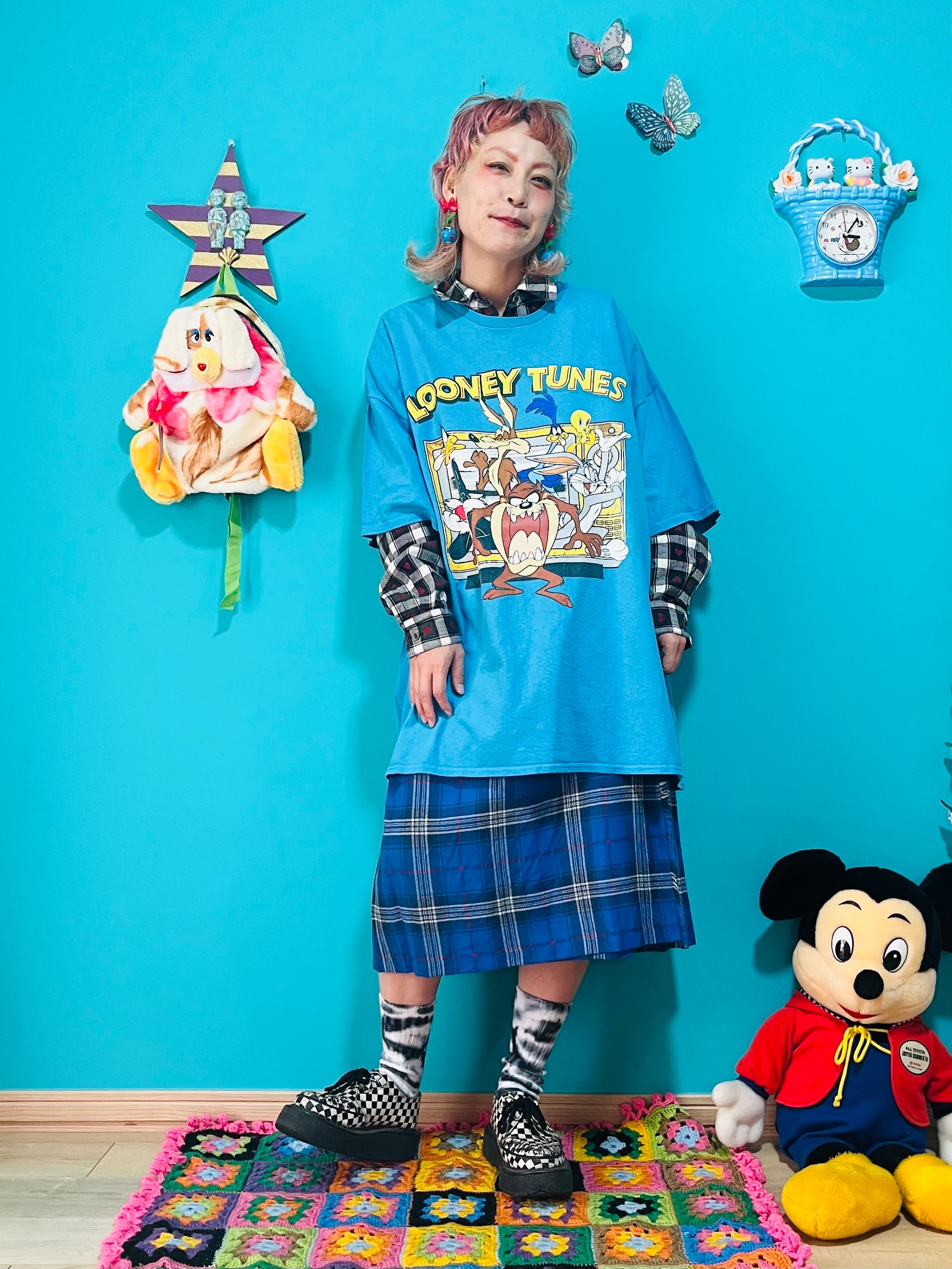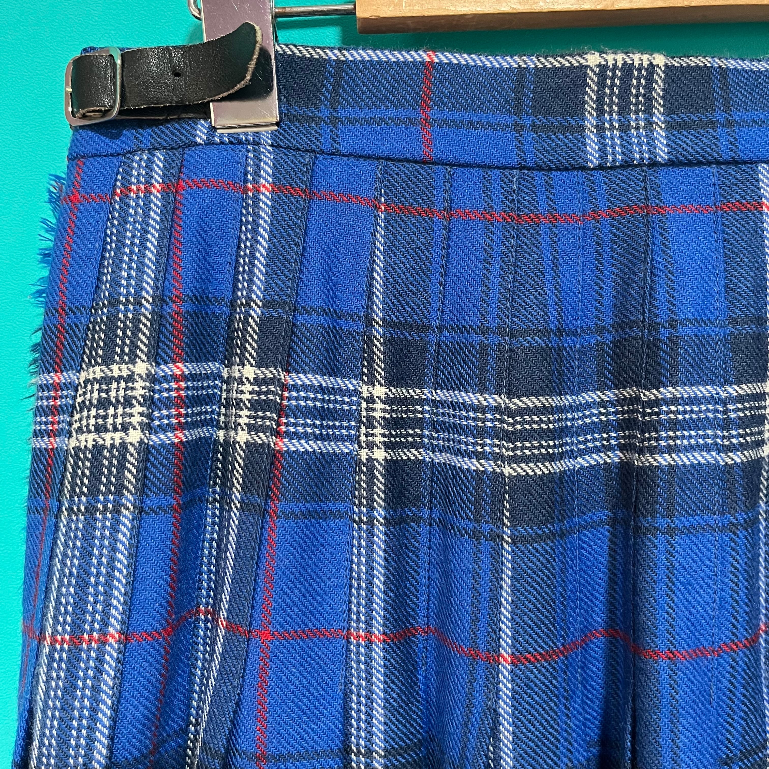 ブルーのタータンチェック柄巻きスカートです。