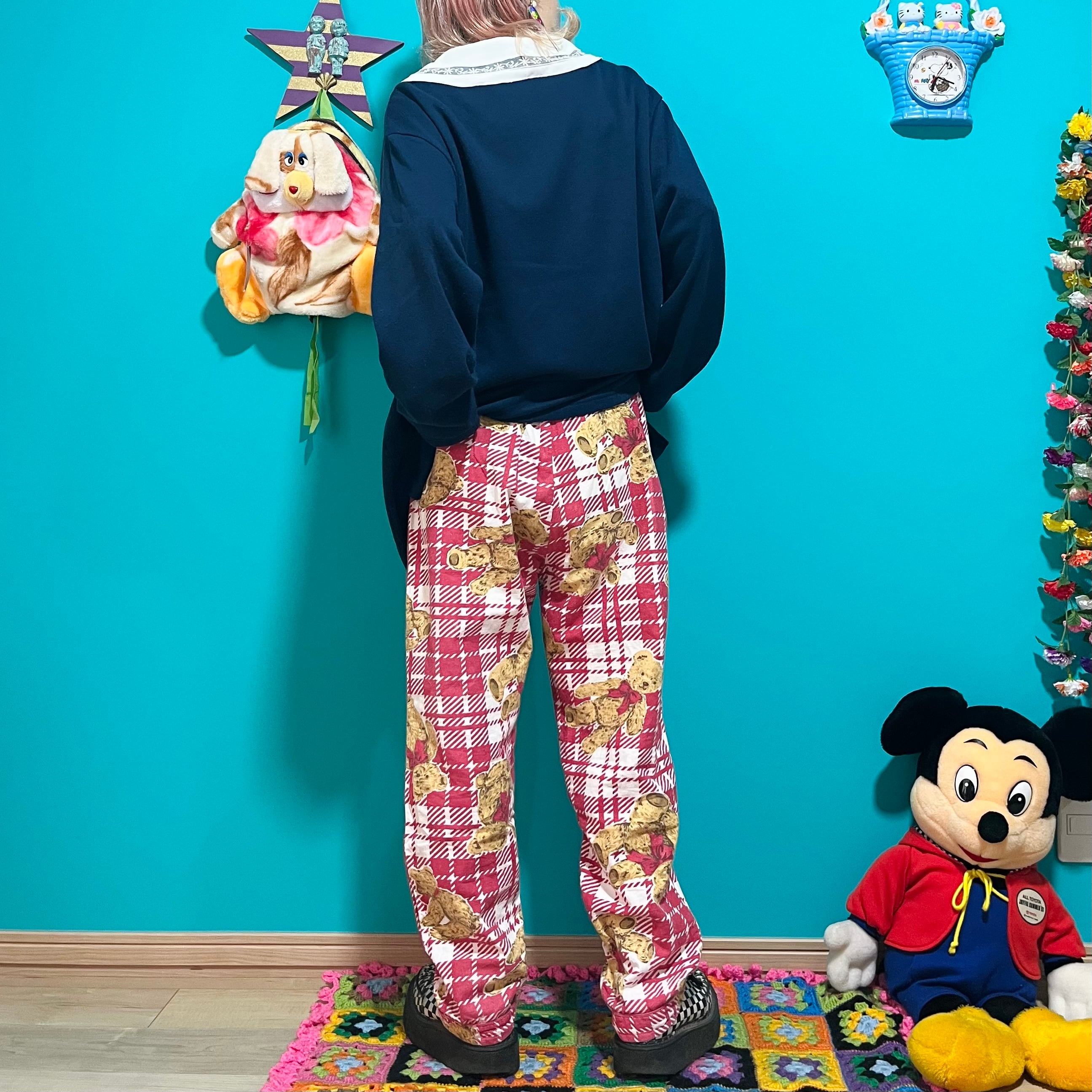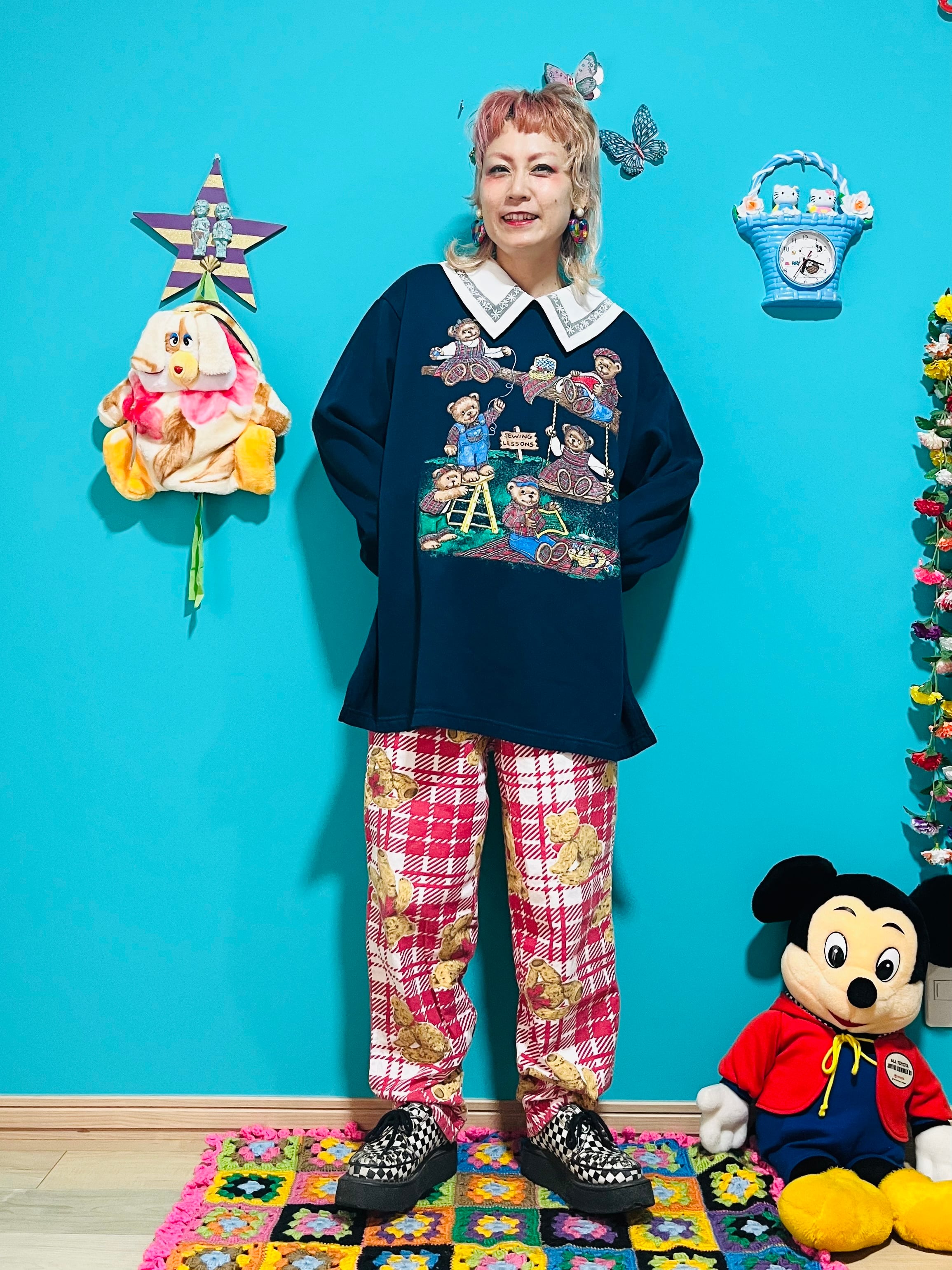 状態:全体的に使用感があり、裾にピンクの色移りのシミがあります。