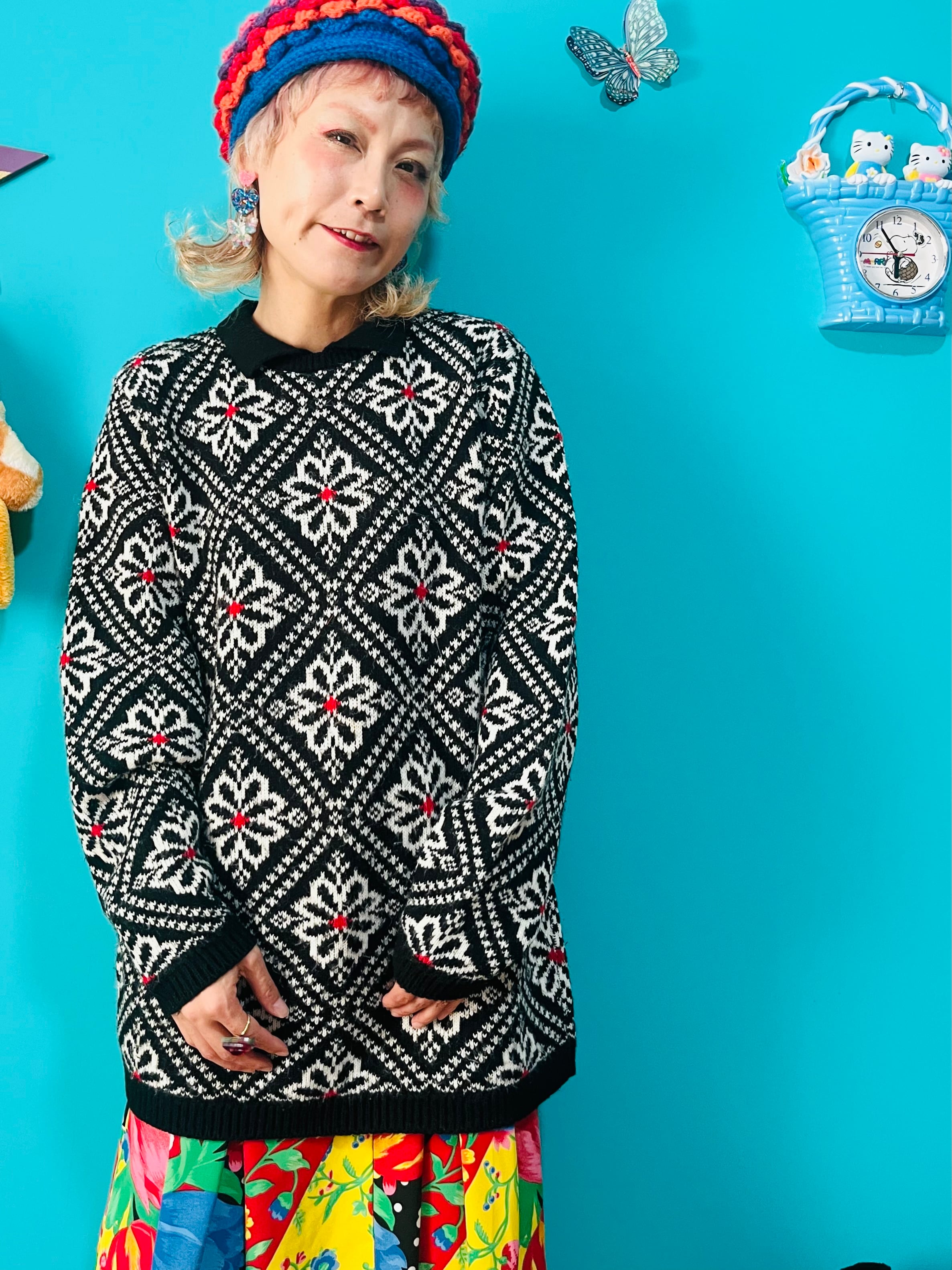 レトロなお花柄ニットです。