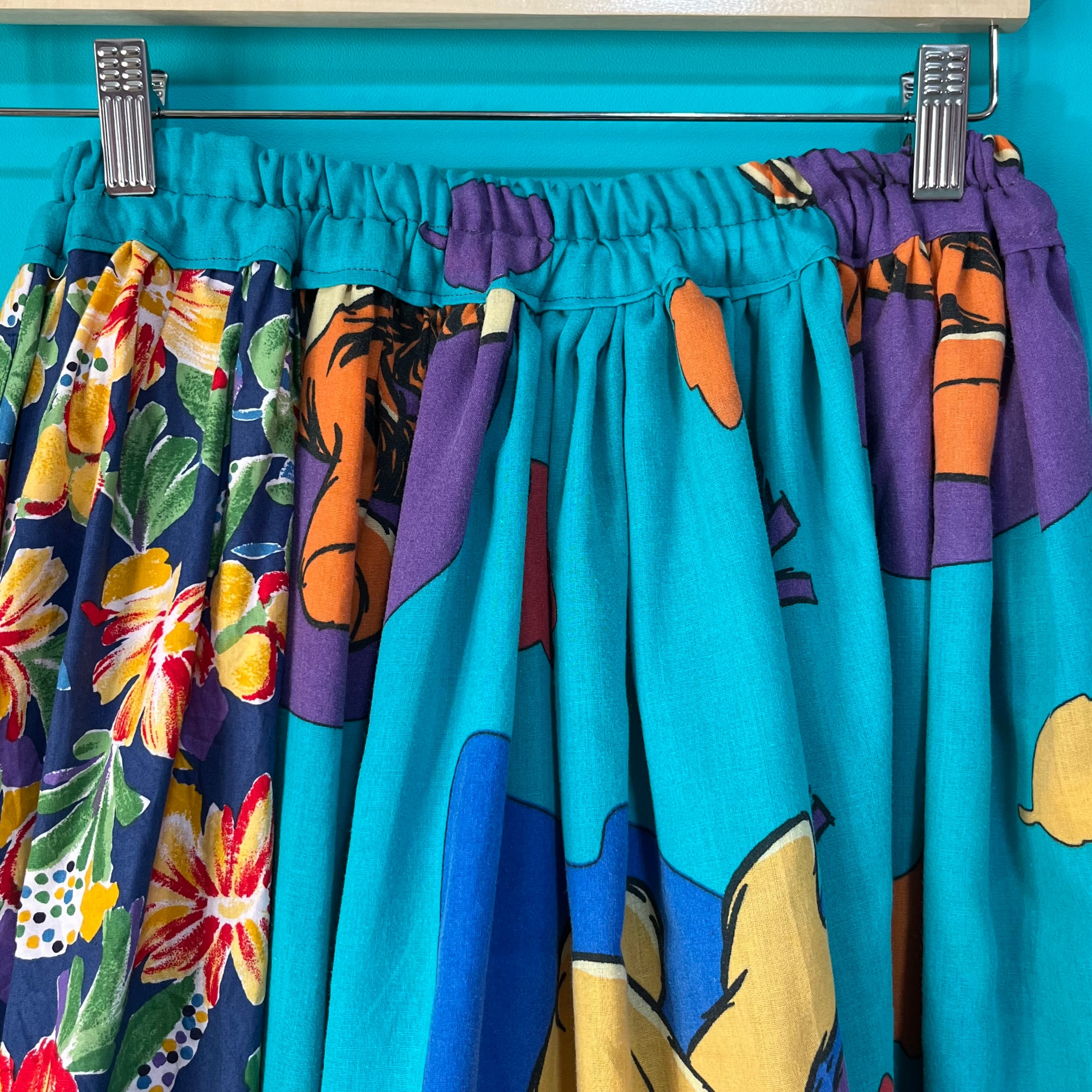 キッズサイズの古着スカートとプーさんのヴィンテージシーツをドッキングしたスカートです。