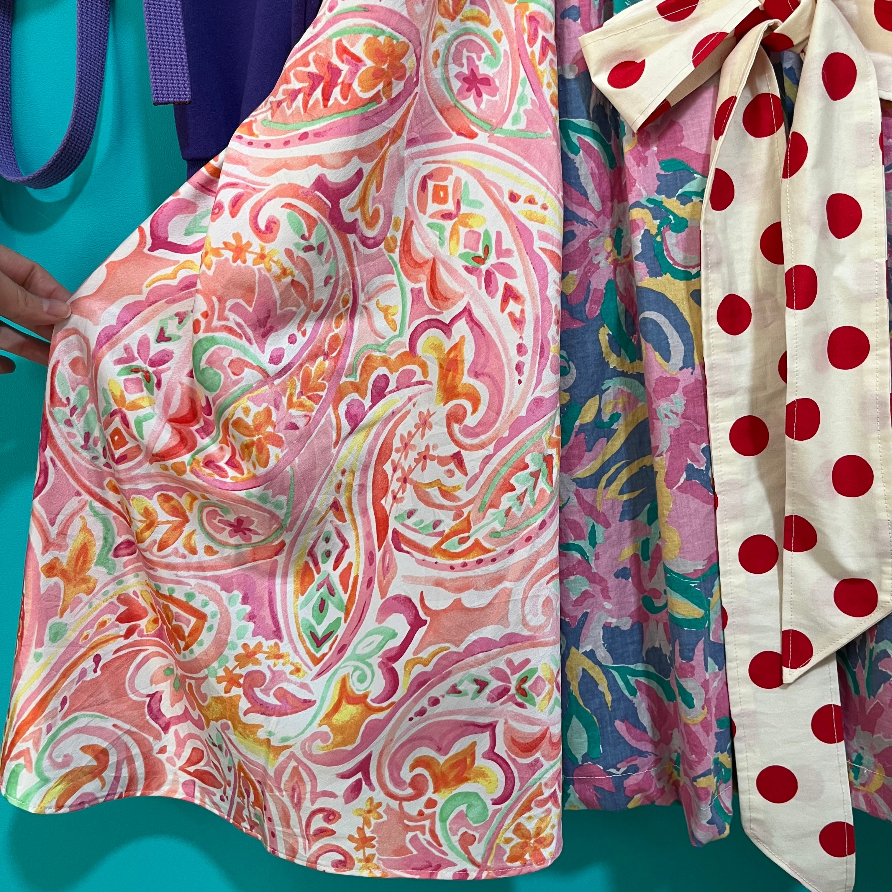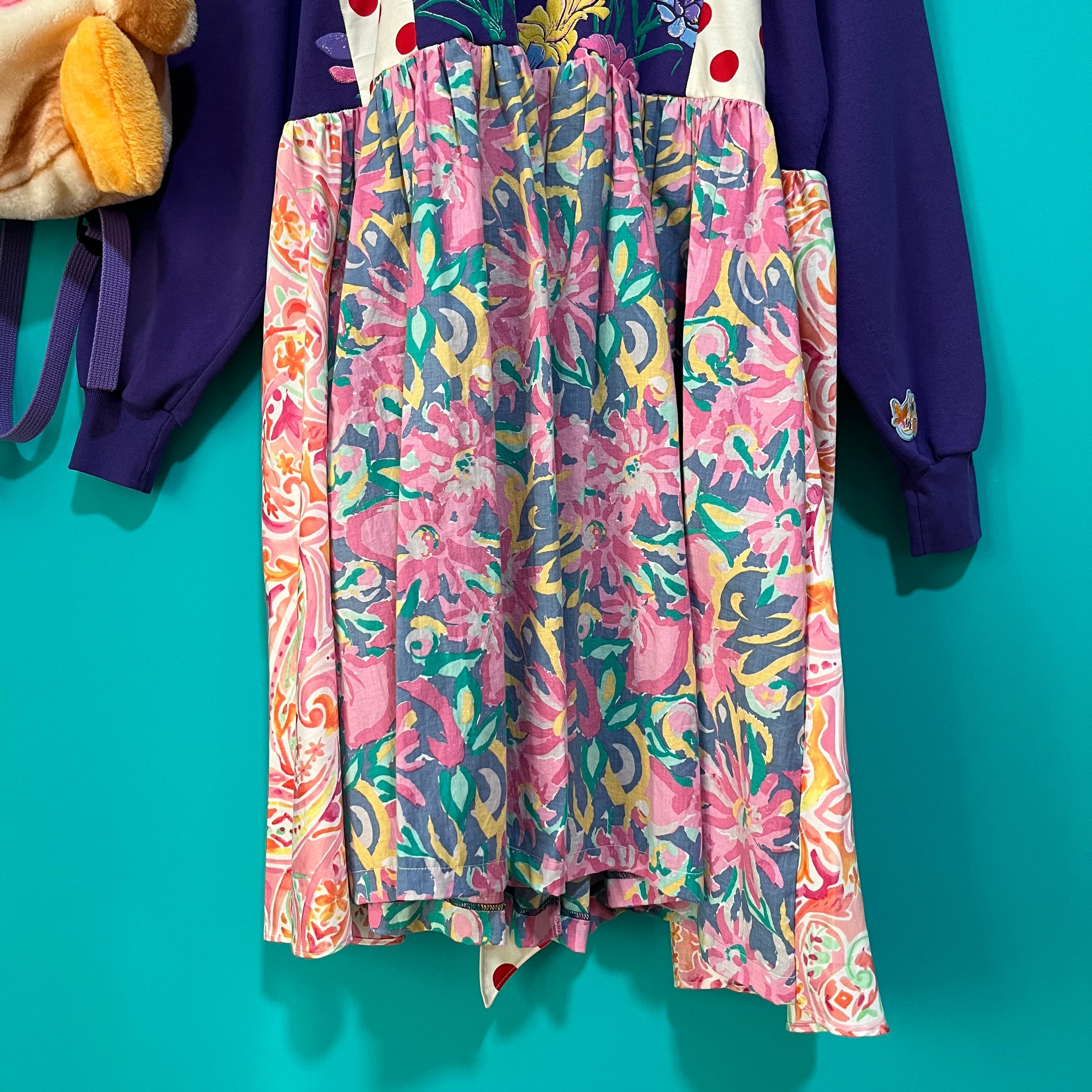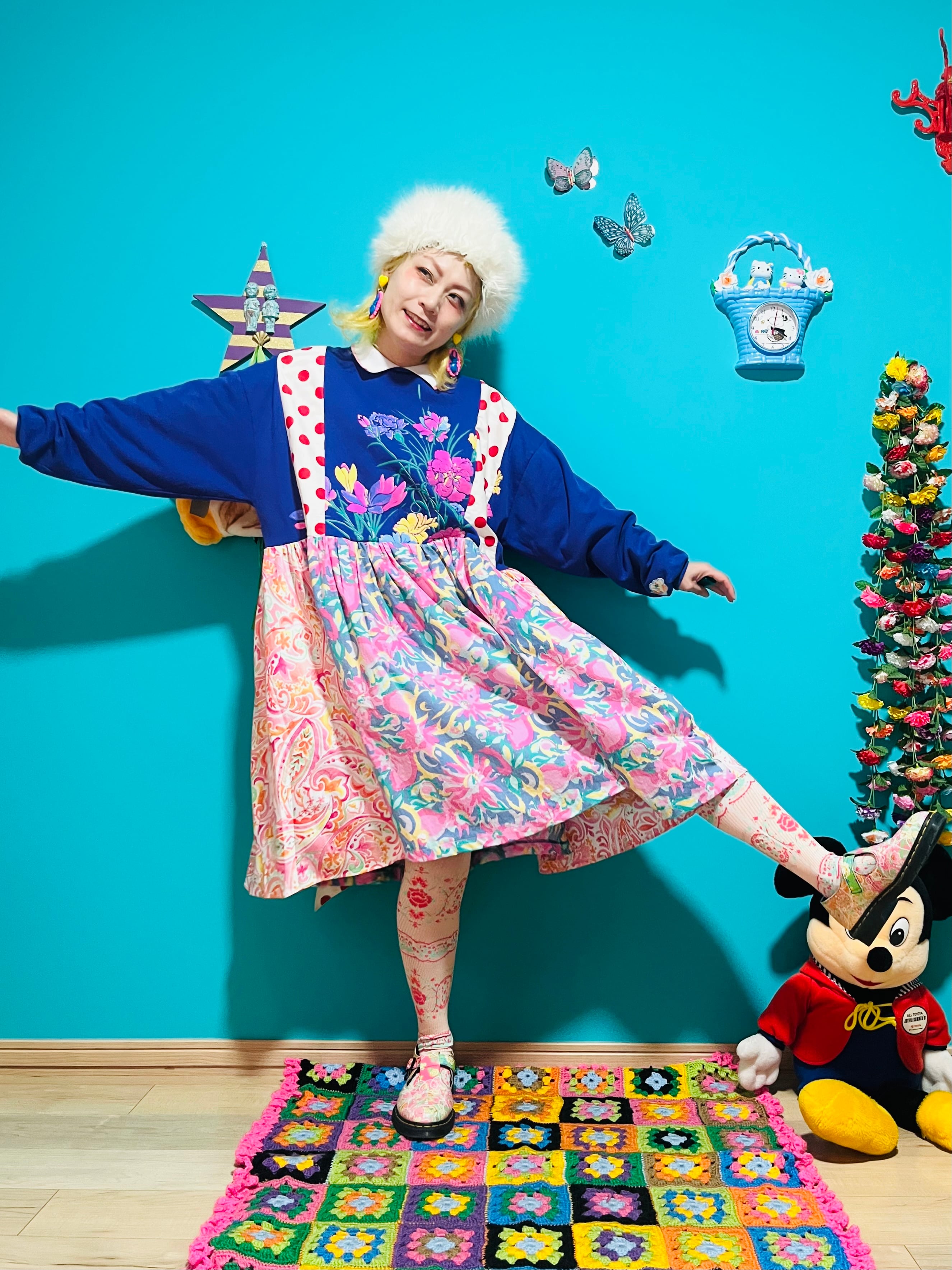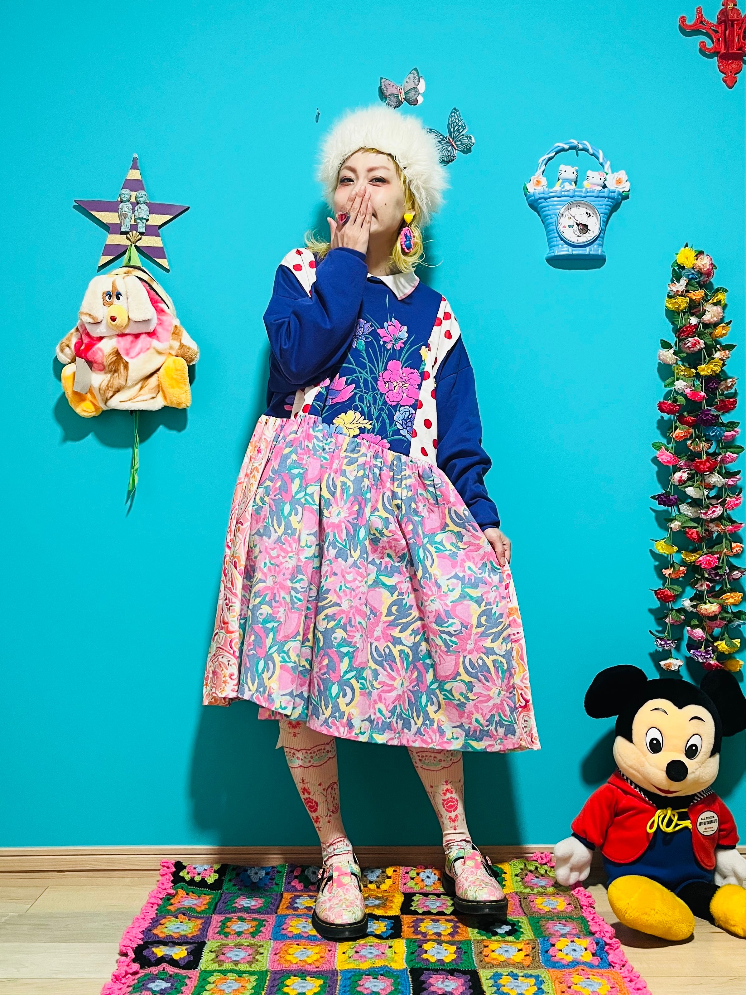 古着のお花柄スウェットを中心に、2種類のスカートをドッキングしました。
