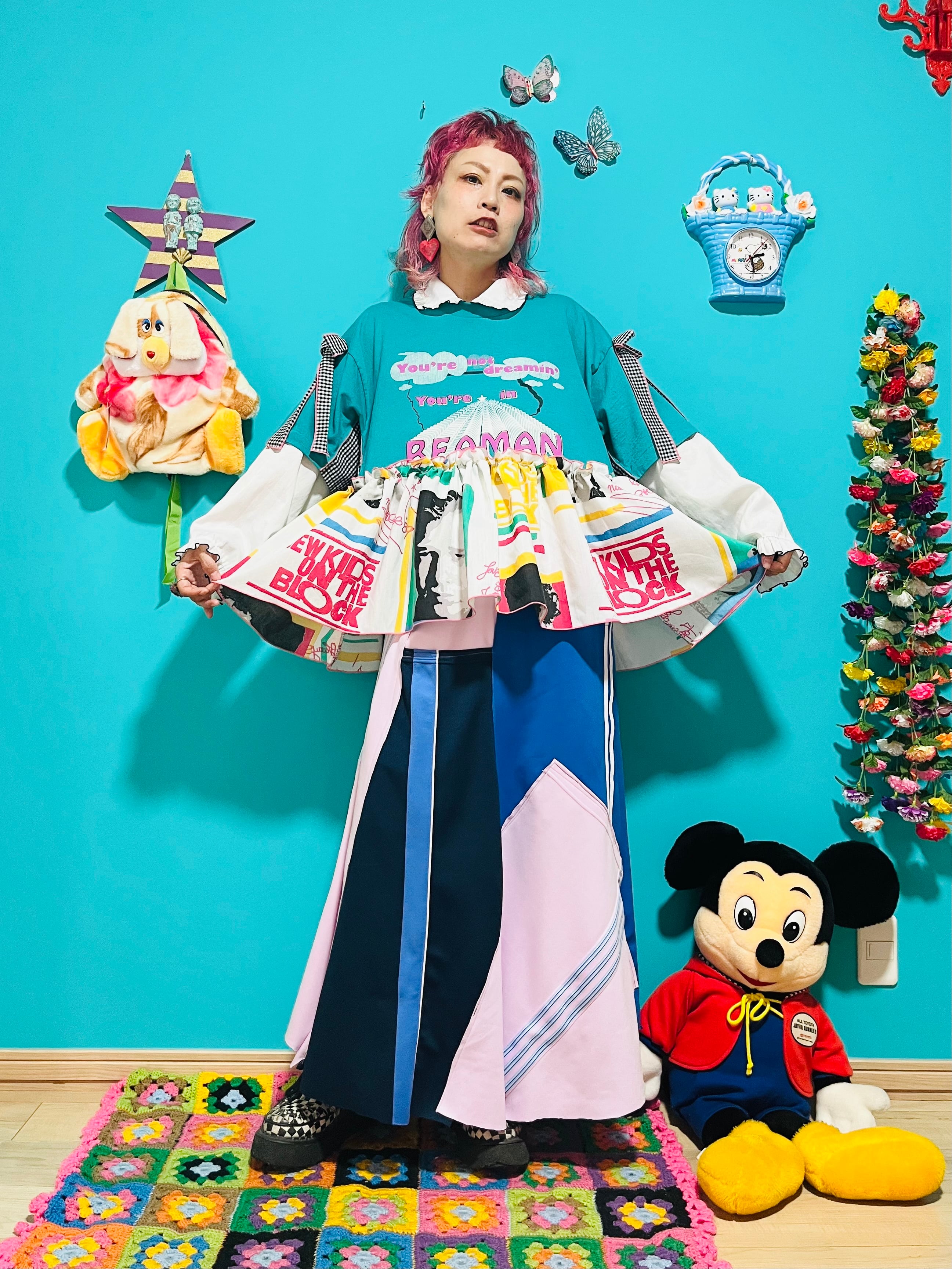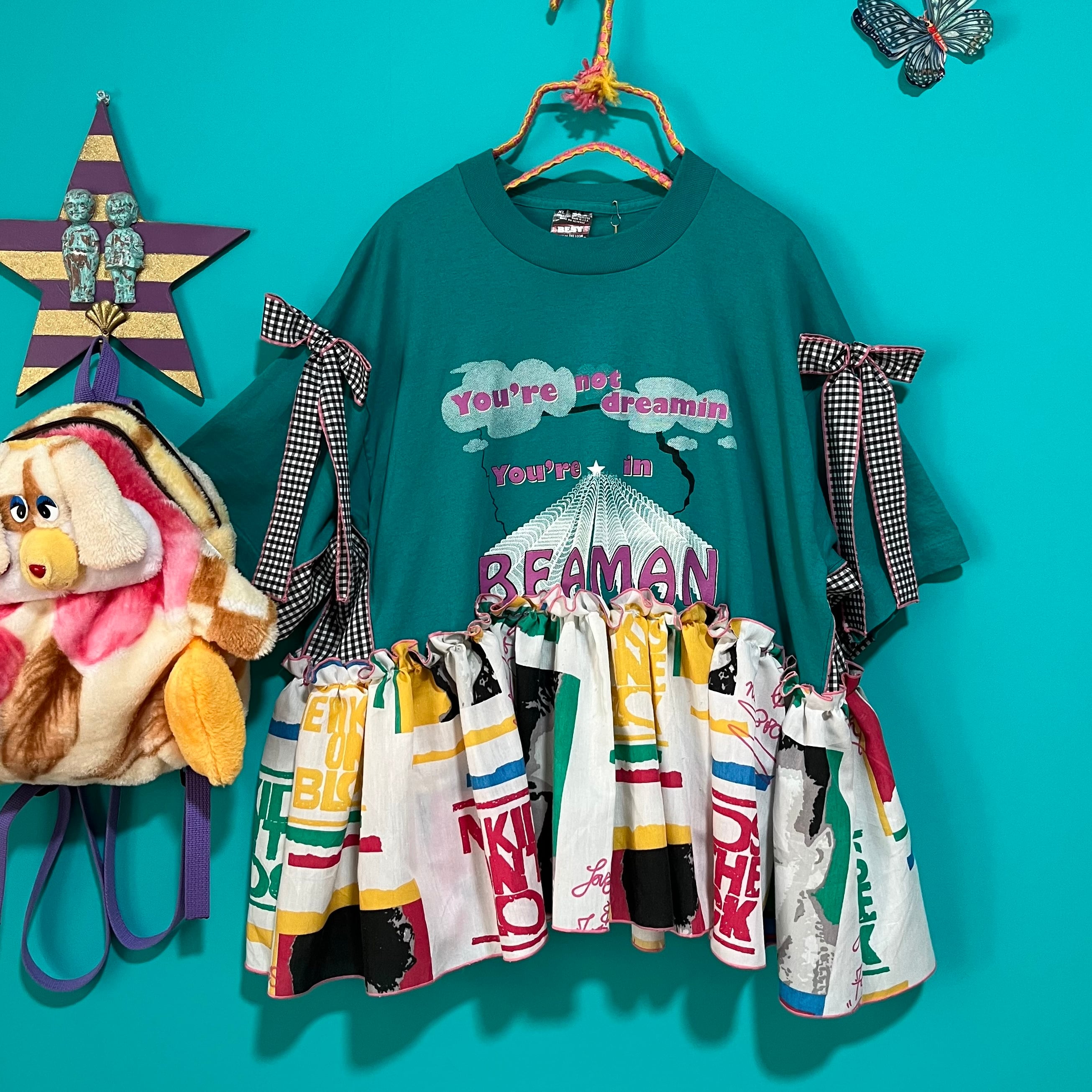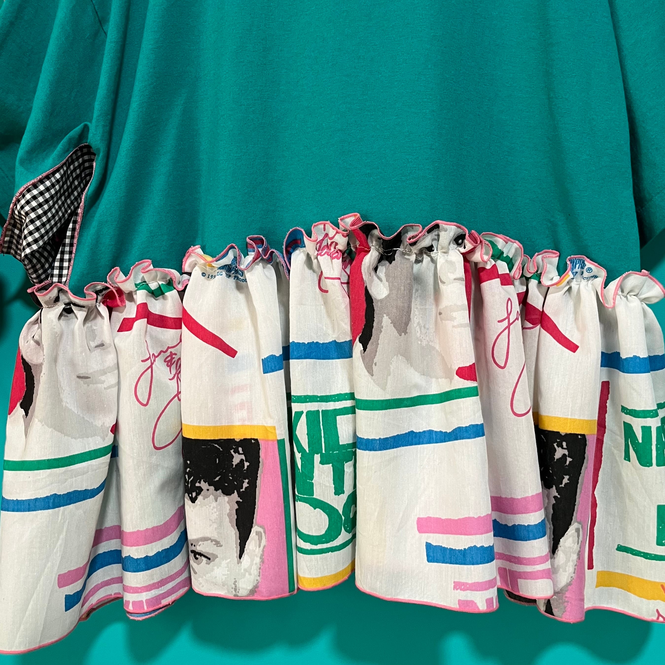 アメリカ古着のTシャツにヴィンテージシーツをドッキングしました。