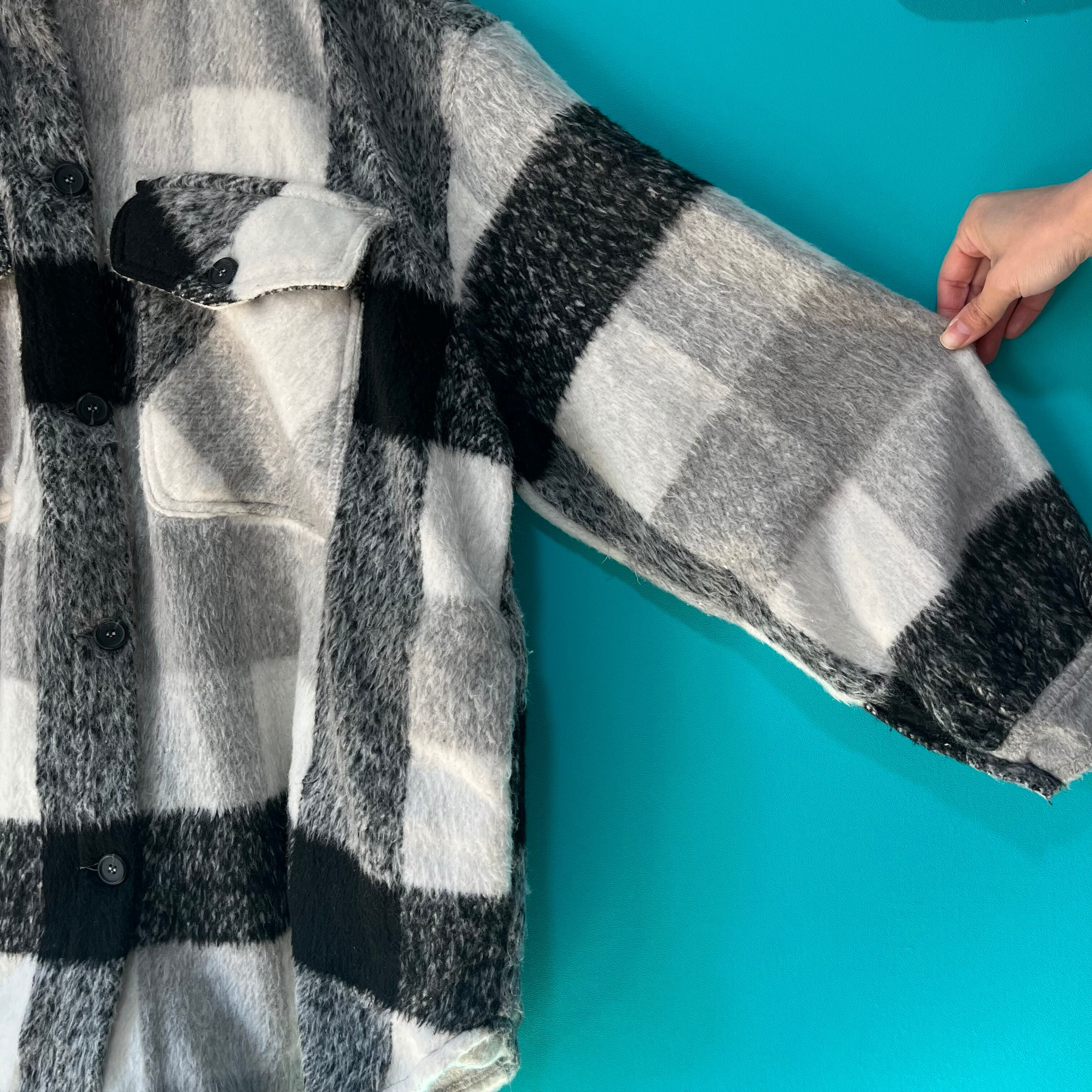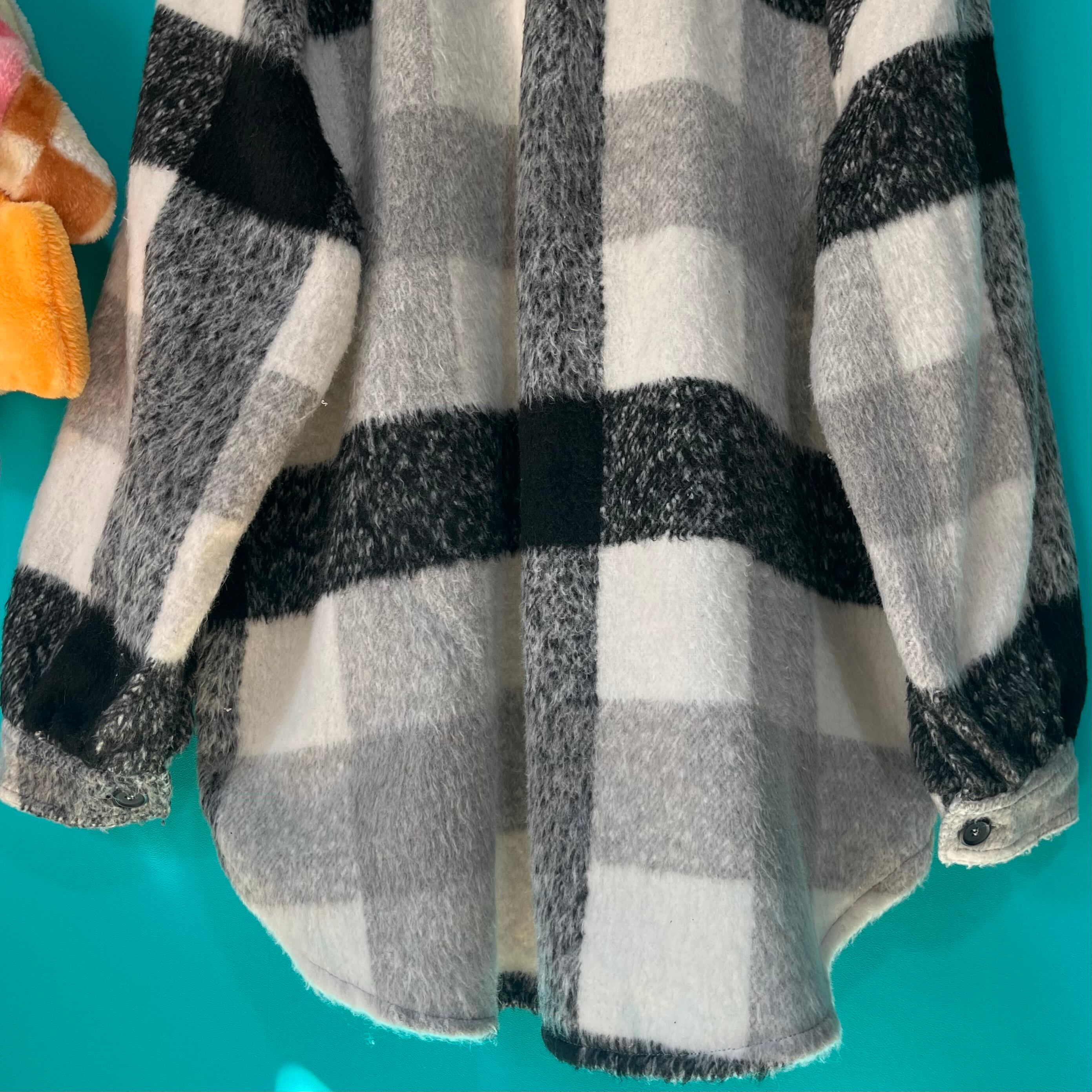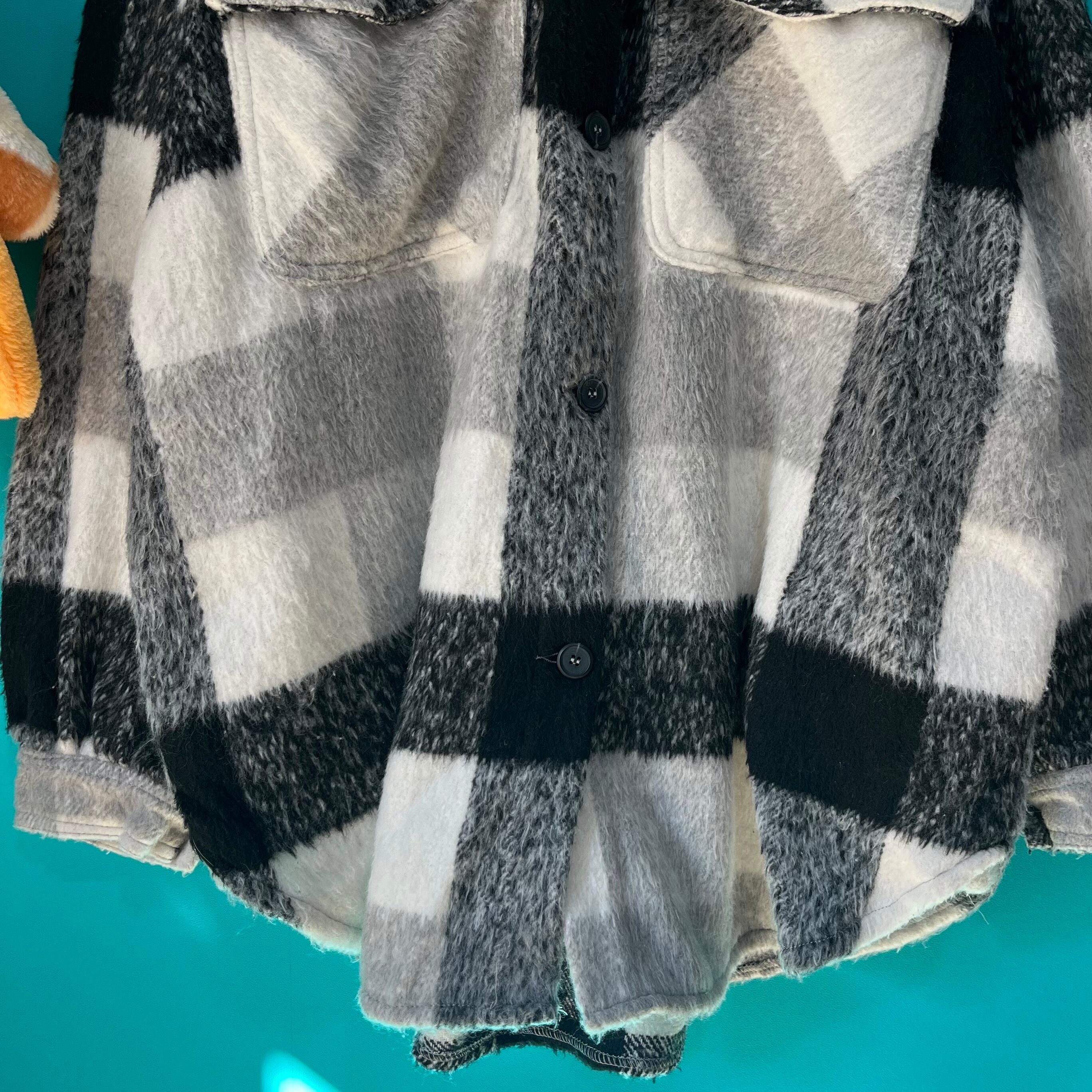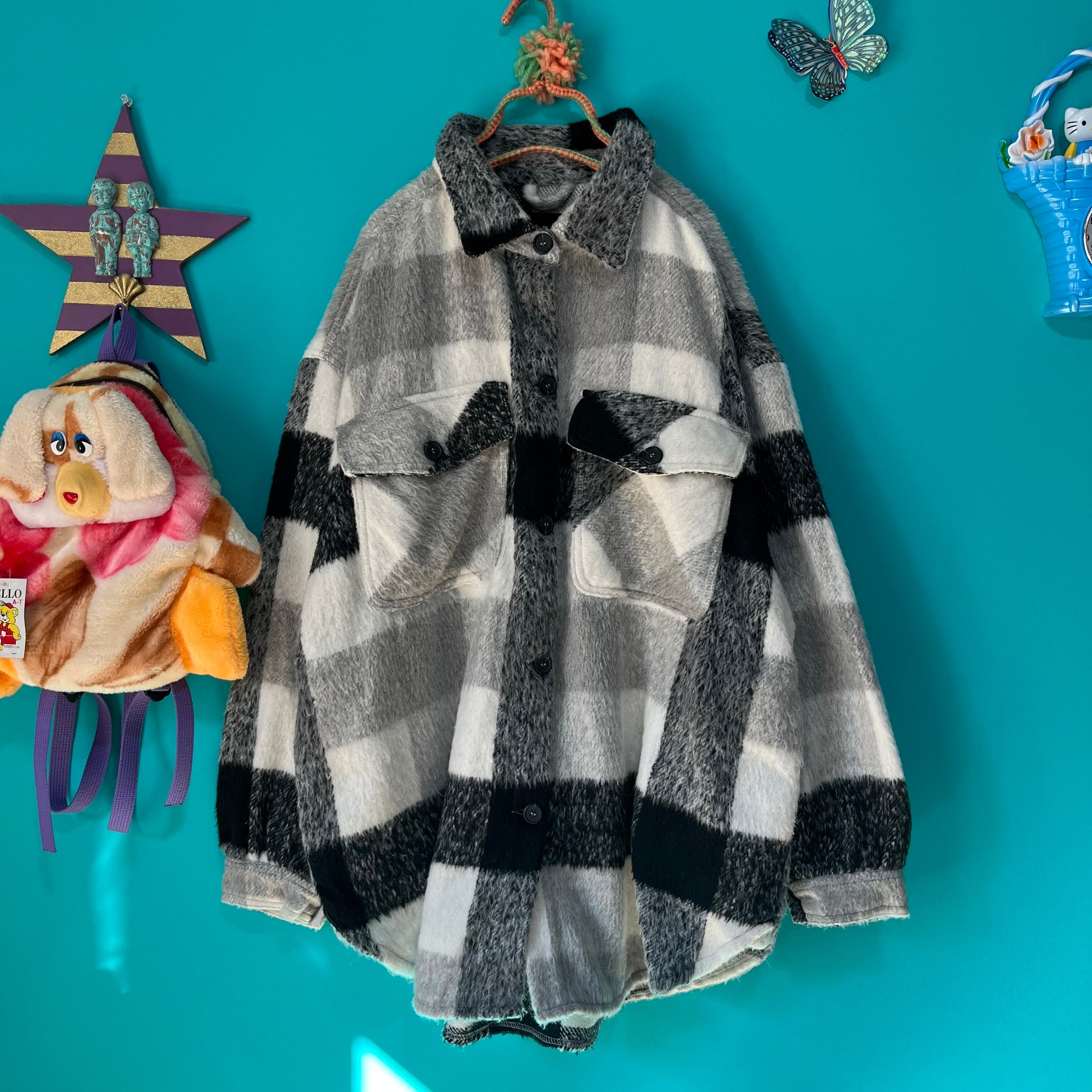 ふわふわ素材ビッグサイズのシャツジャケットです。