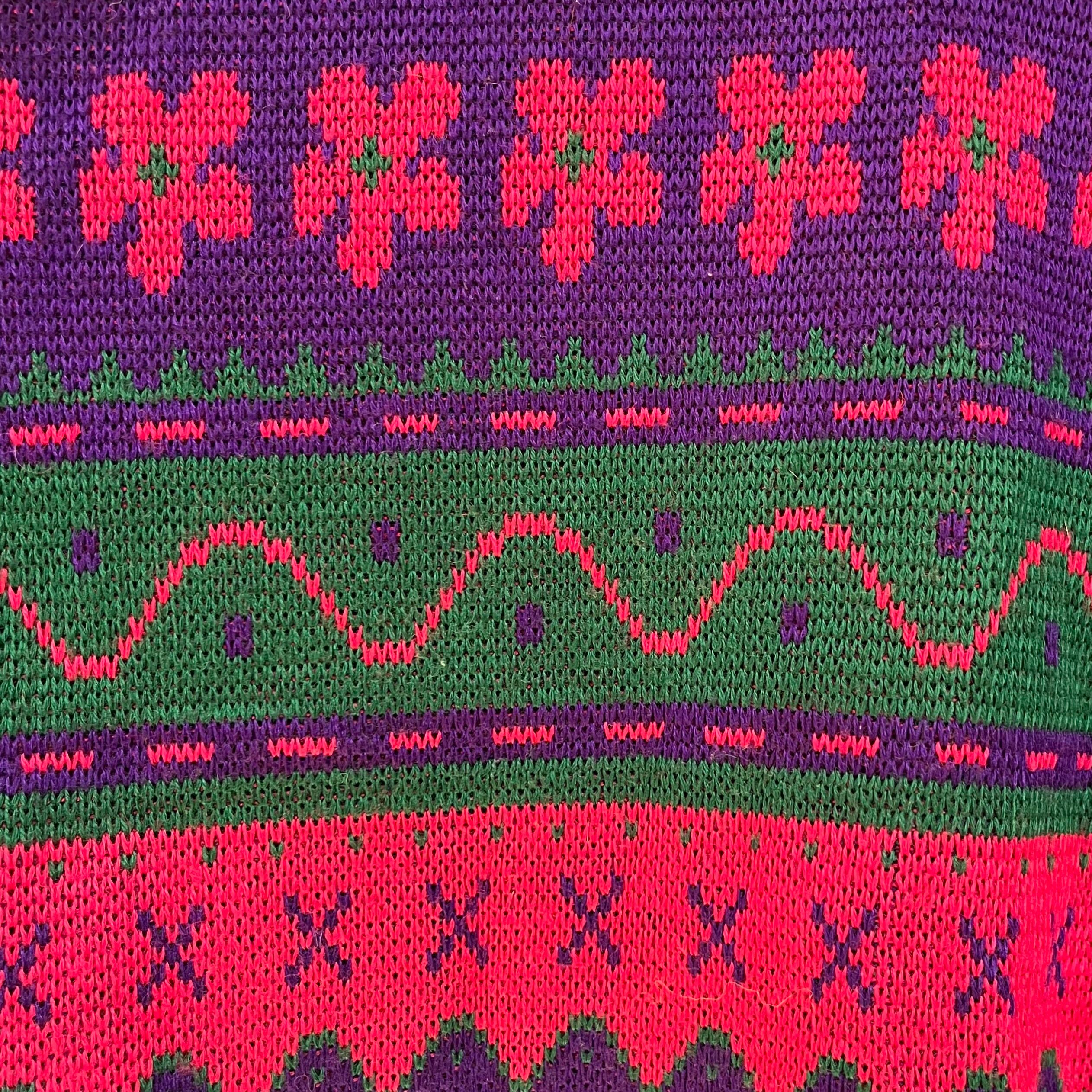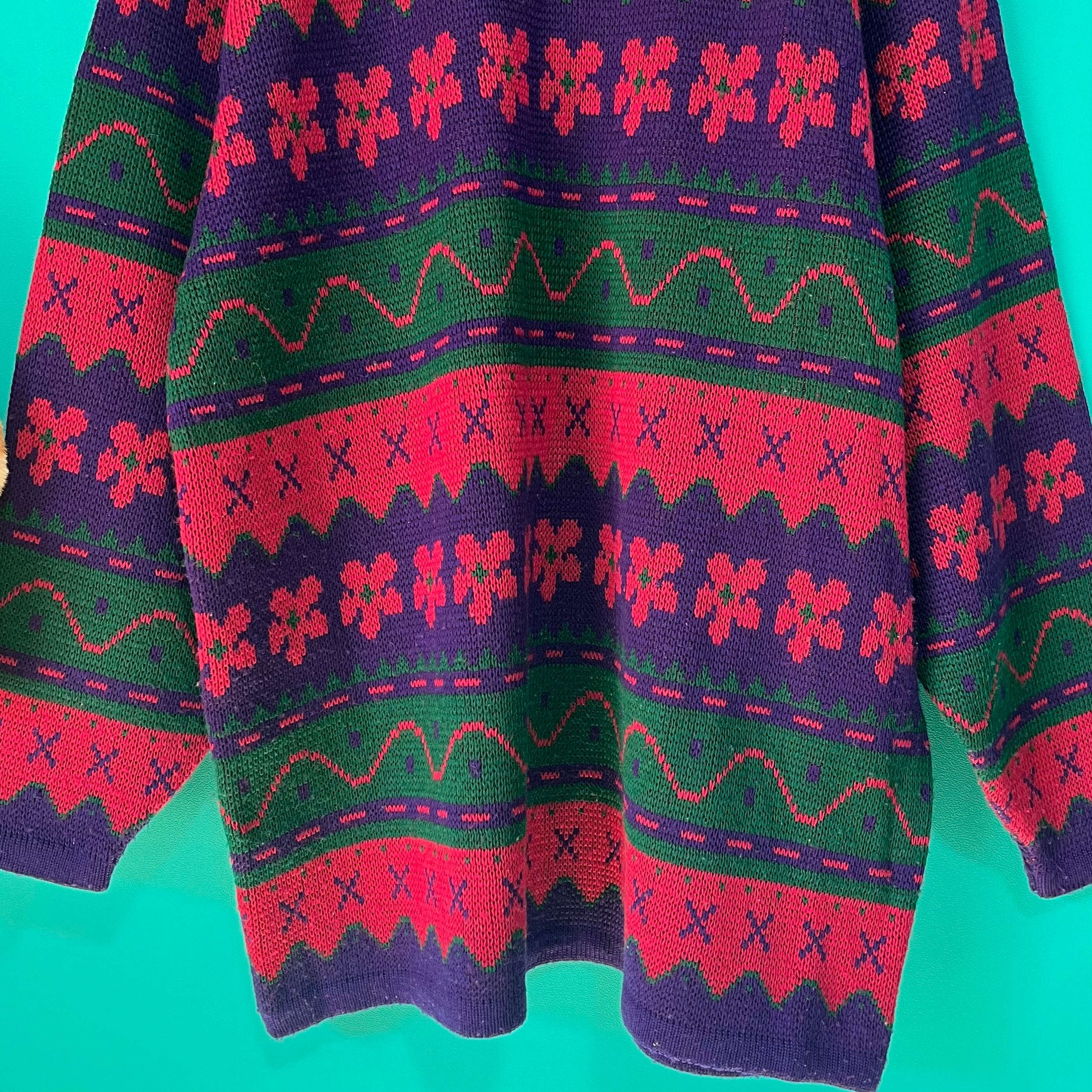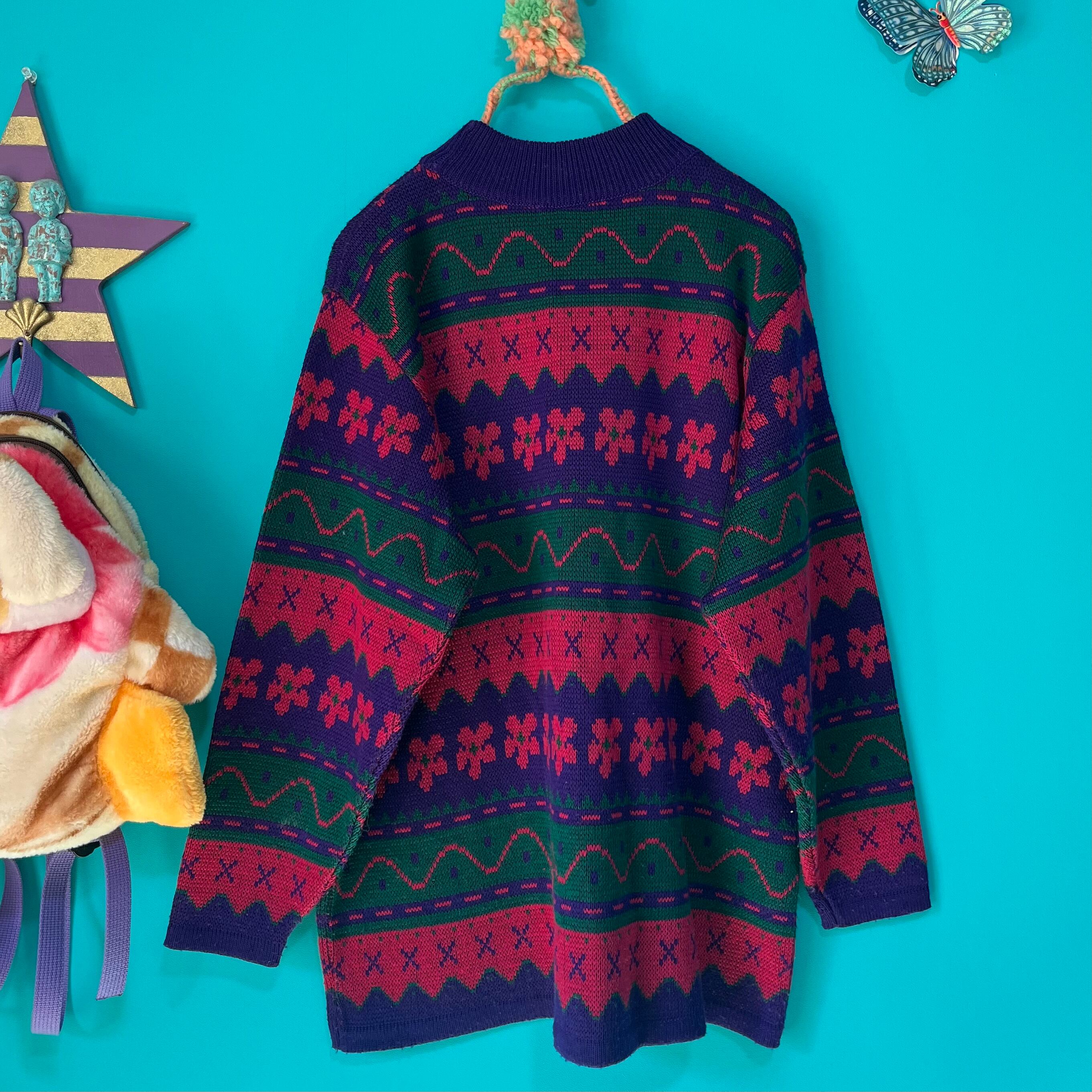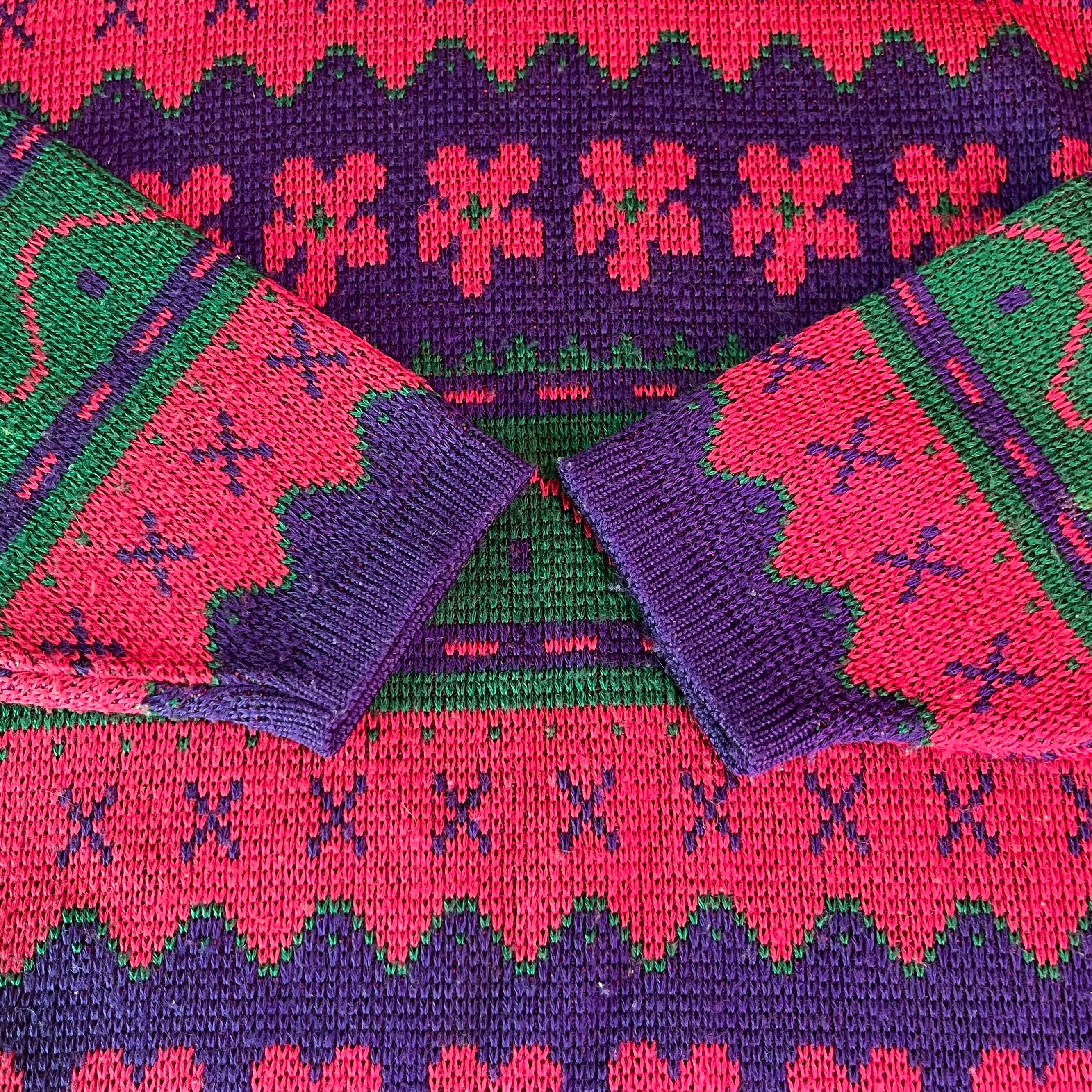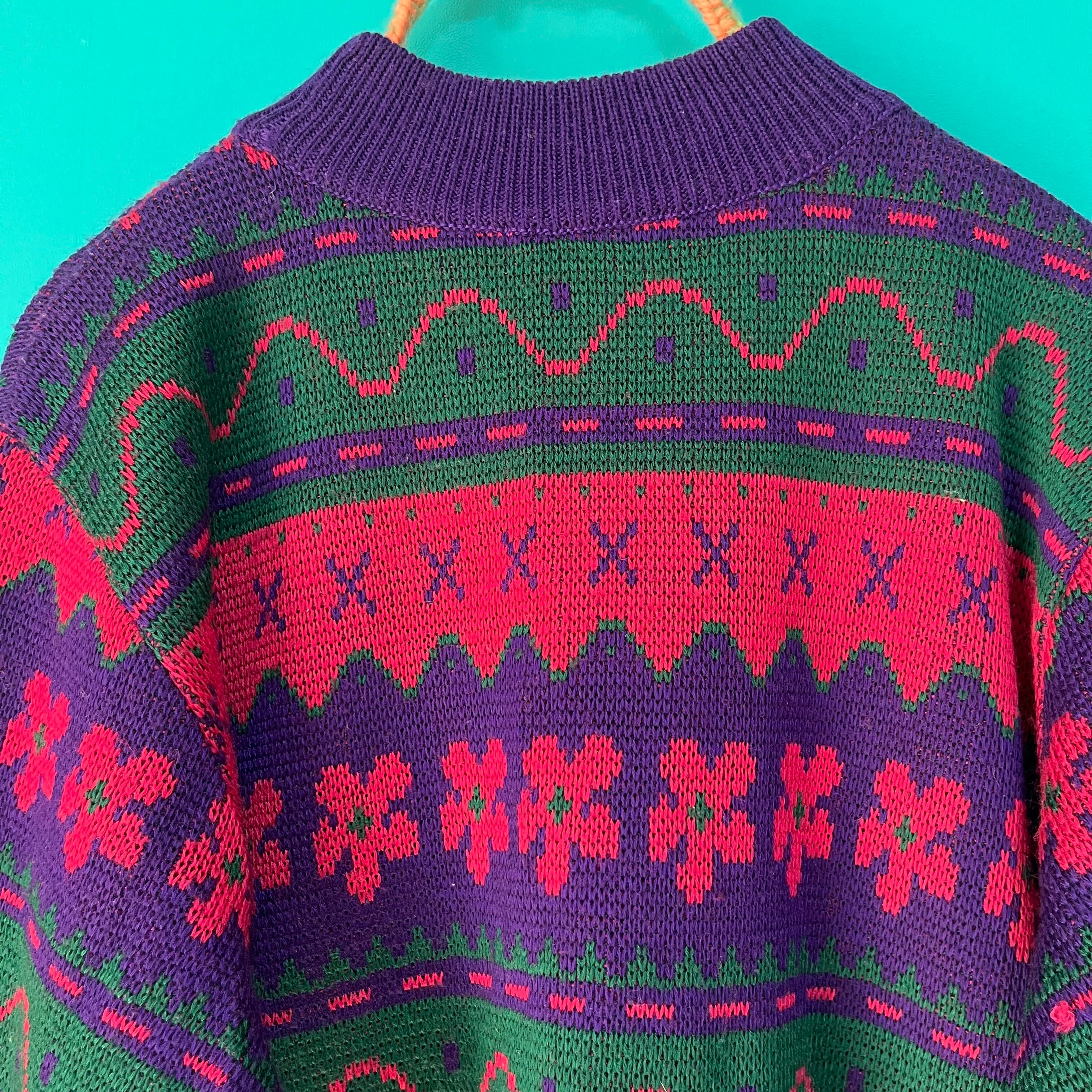 ぐにゃぐにゃした模様が個性的なお花柄レトロニットです。