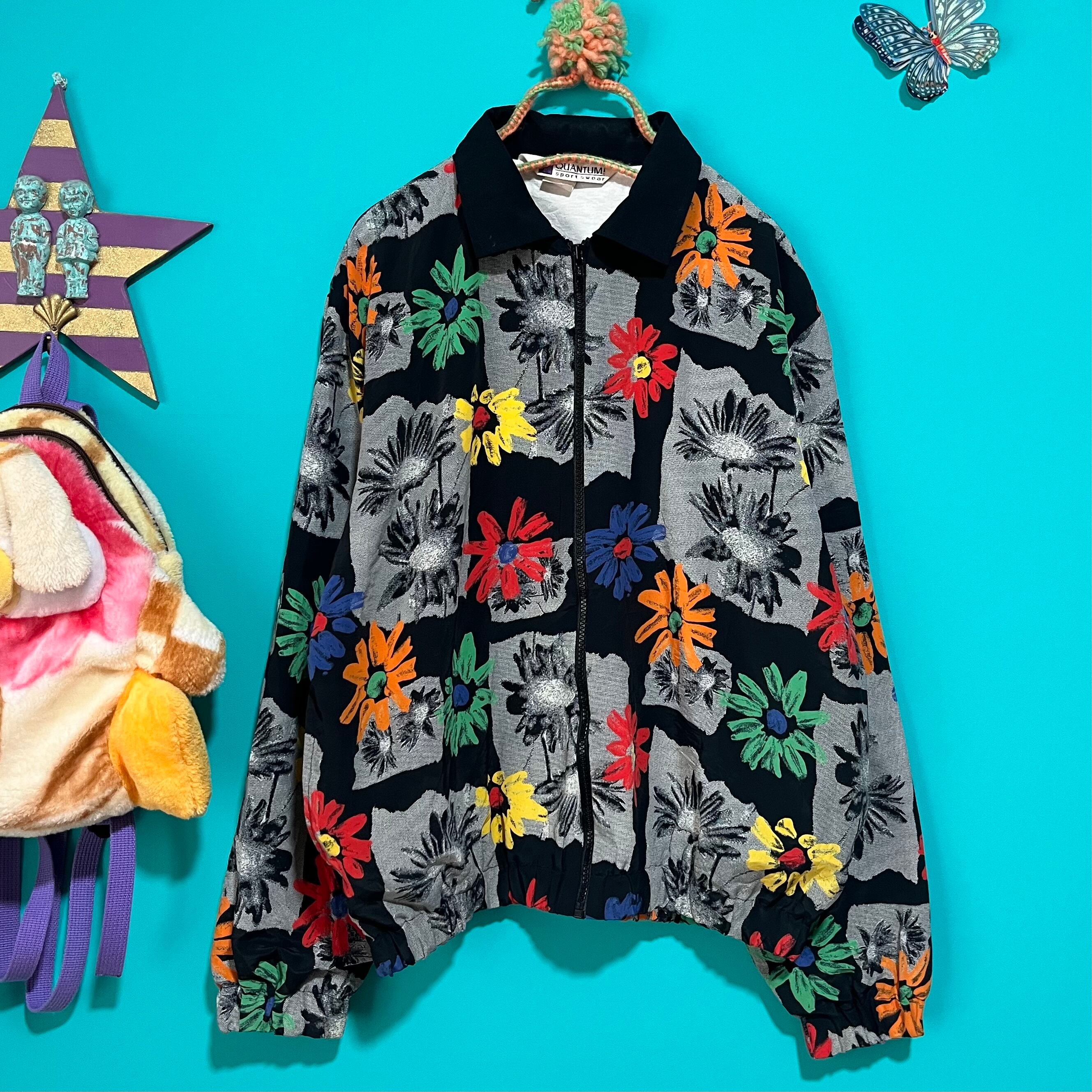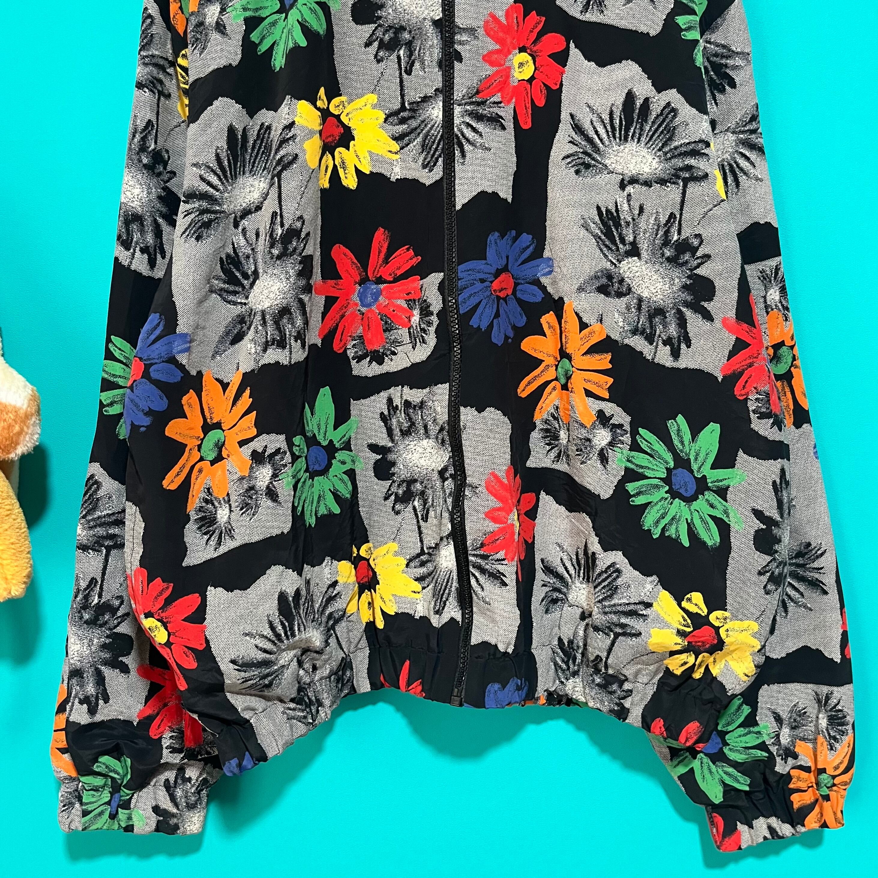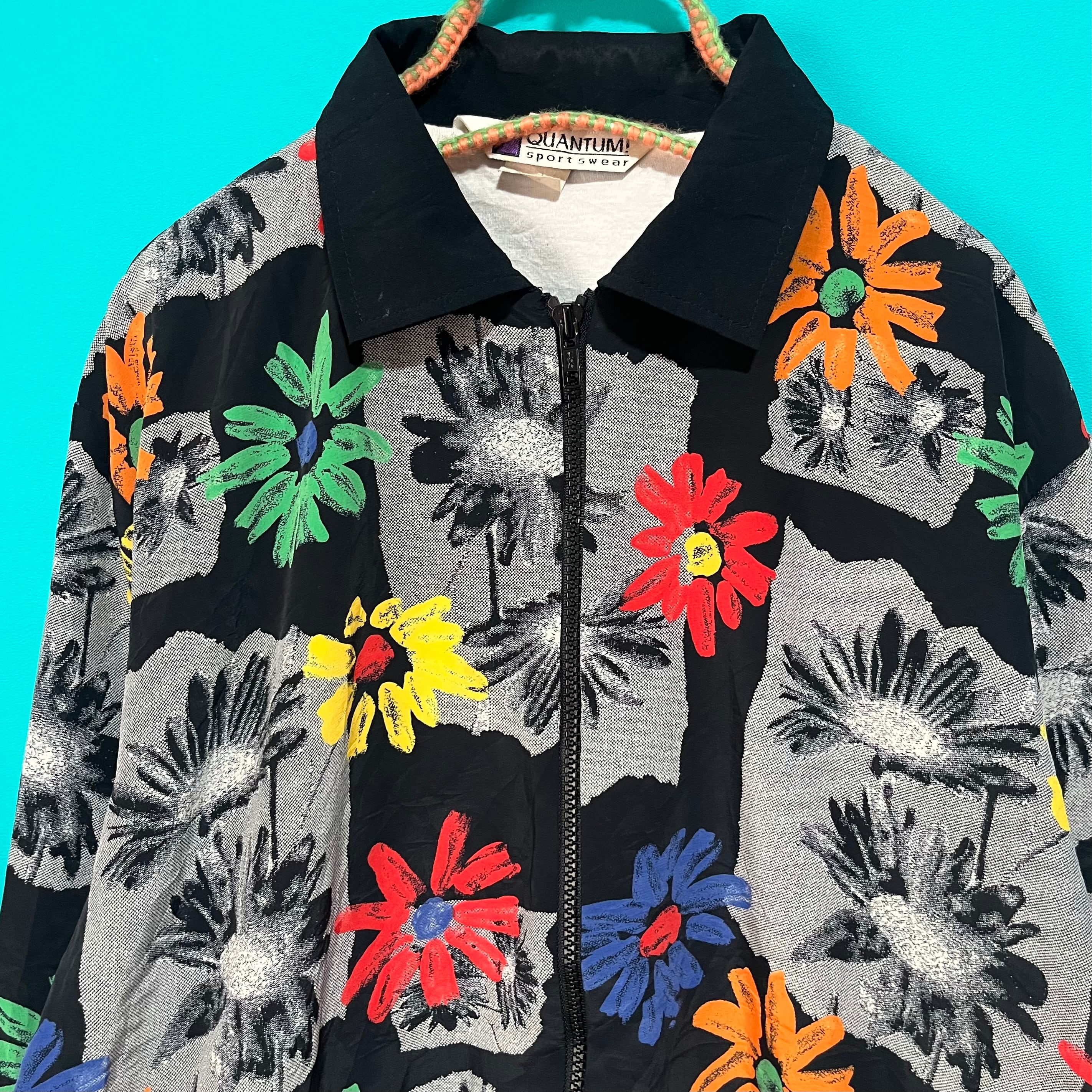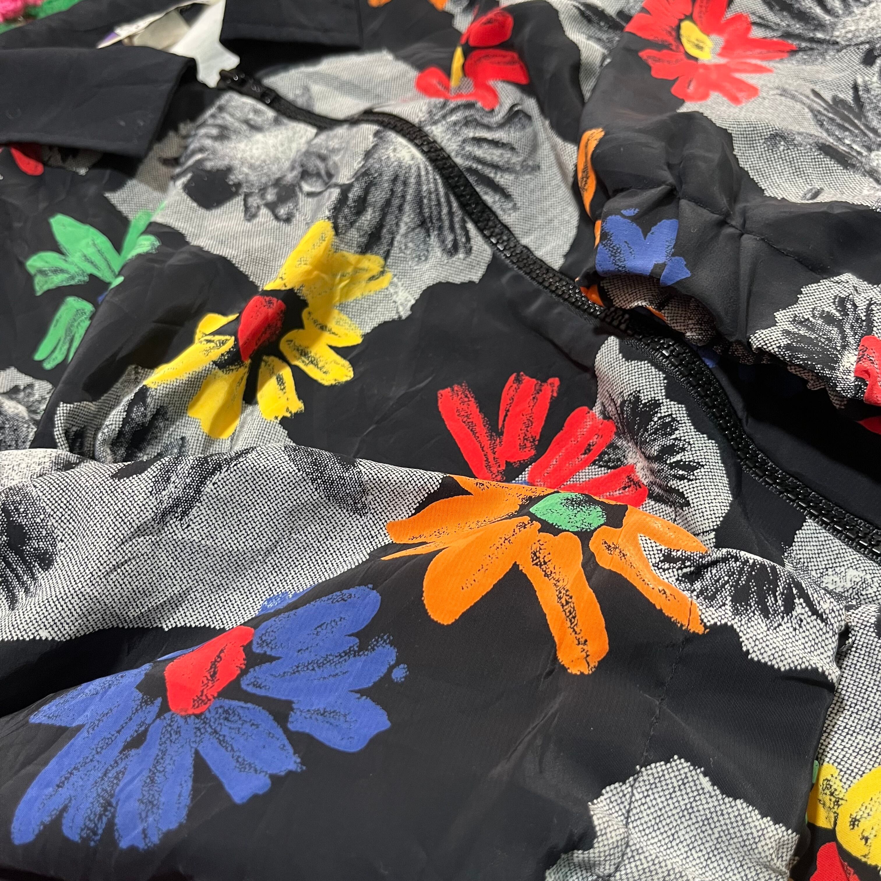 絵の具で描いたようなお花模様が印象的なジップカーディガンです。