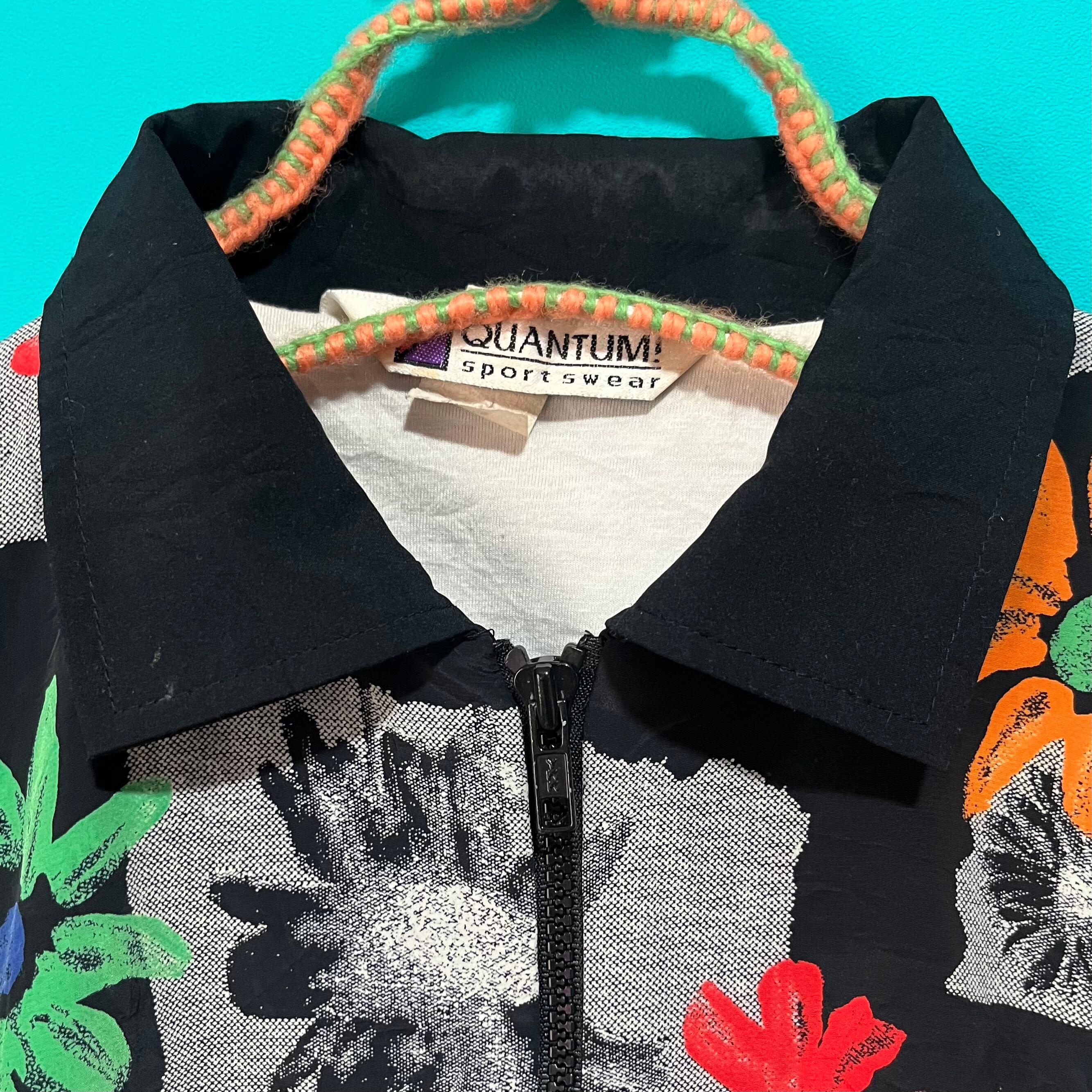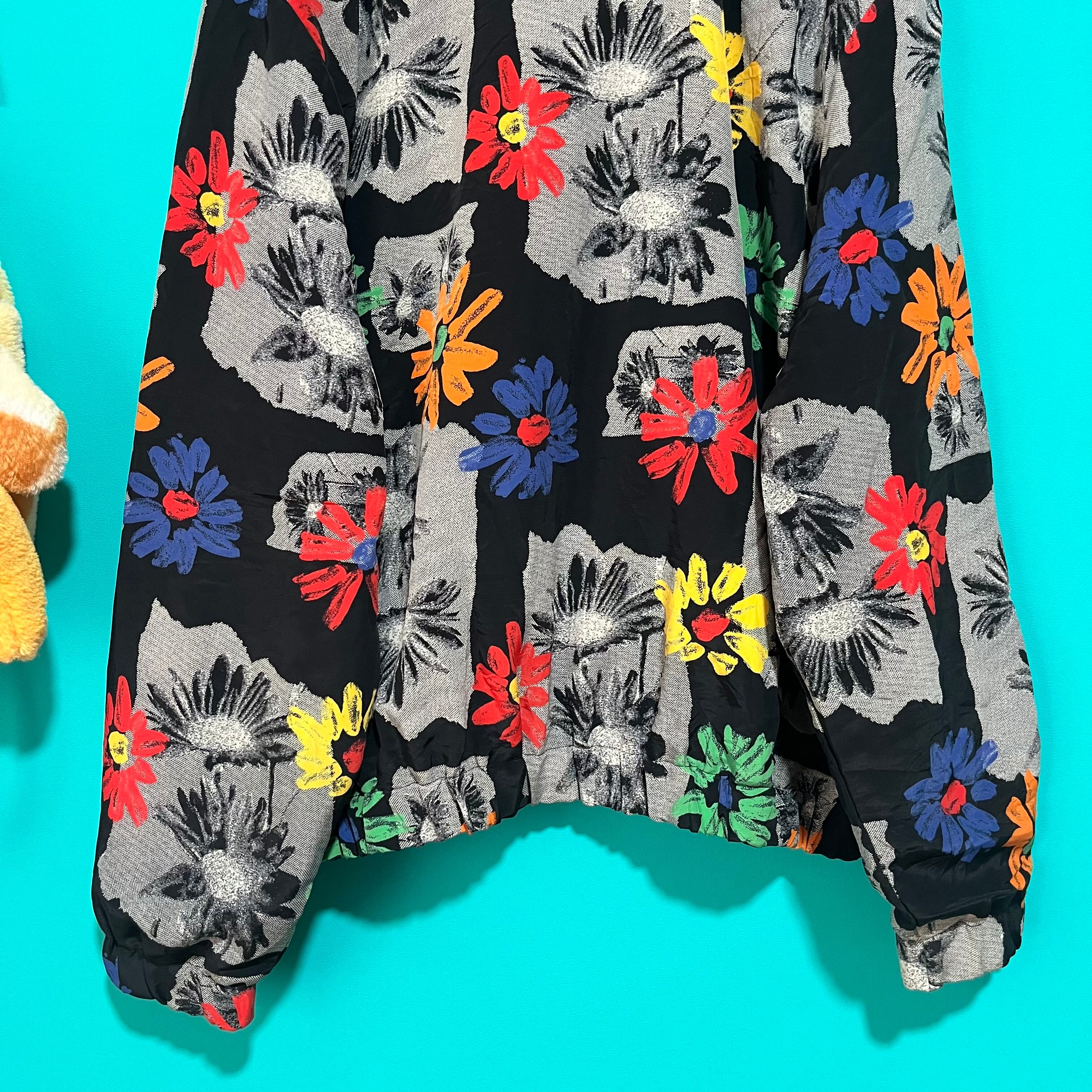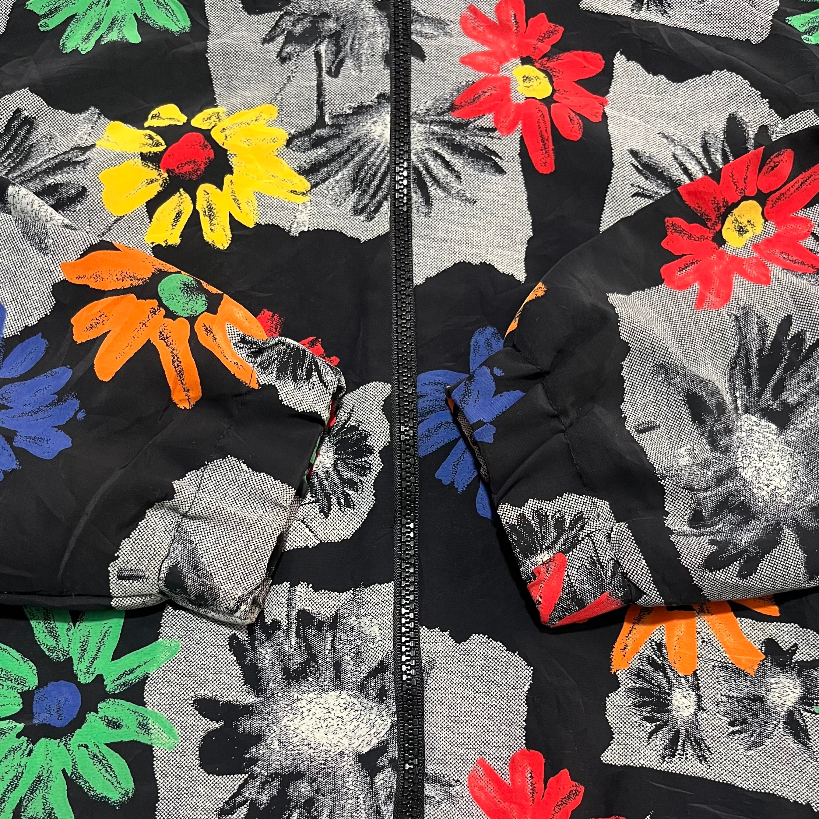 絵の具で描いたようなお花模様が印象的なジップカーディガンです。