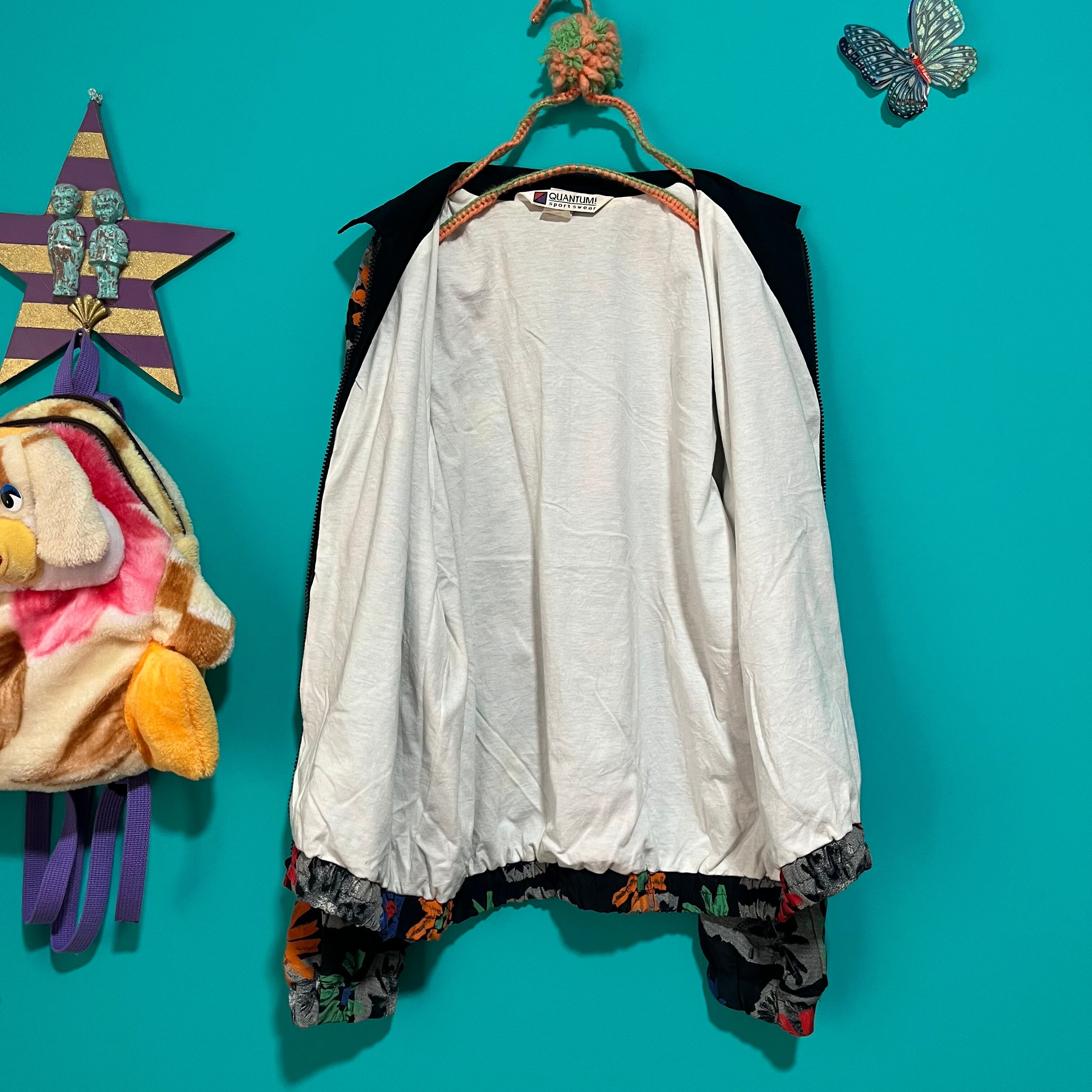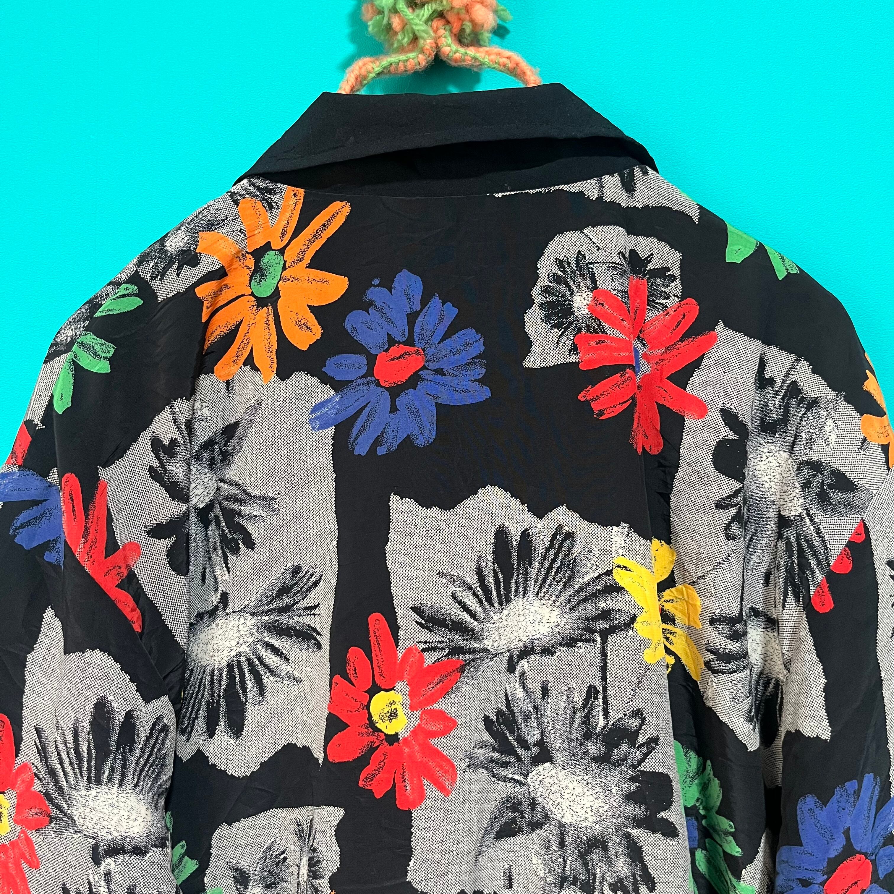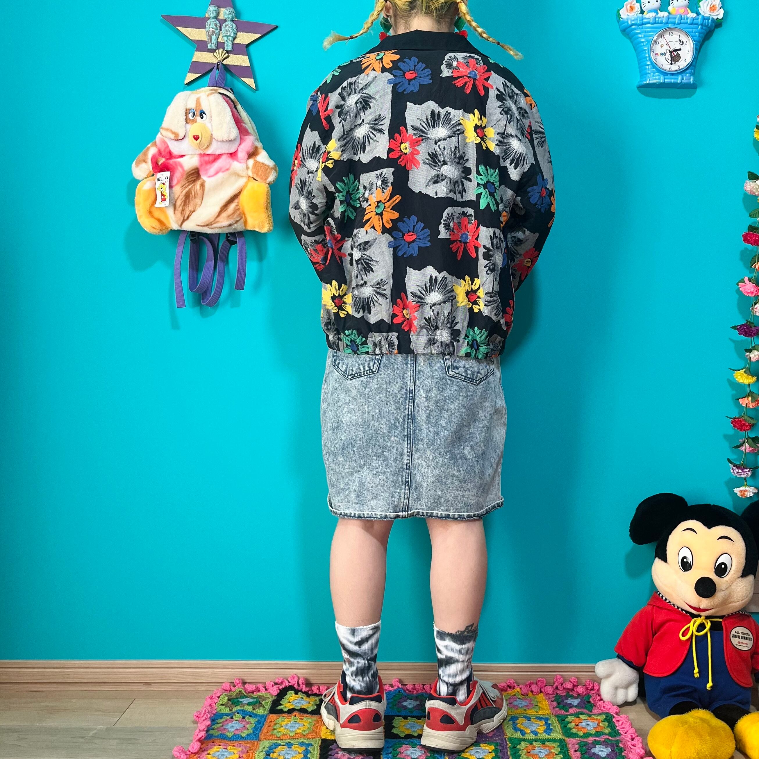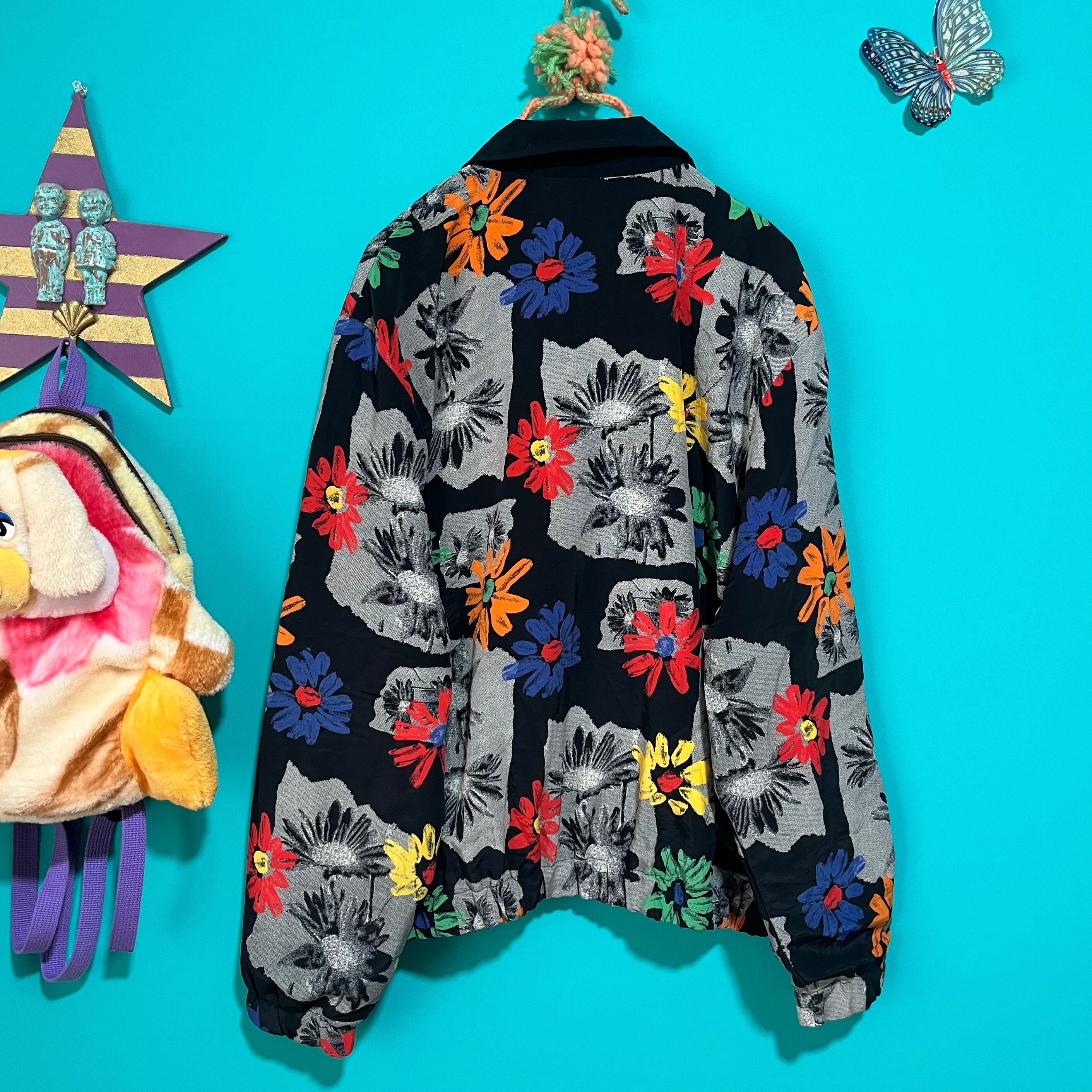 絵の具で描いたようなお花模様が印象的なジップカーディガンです。