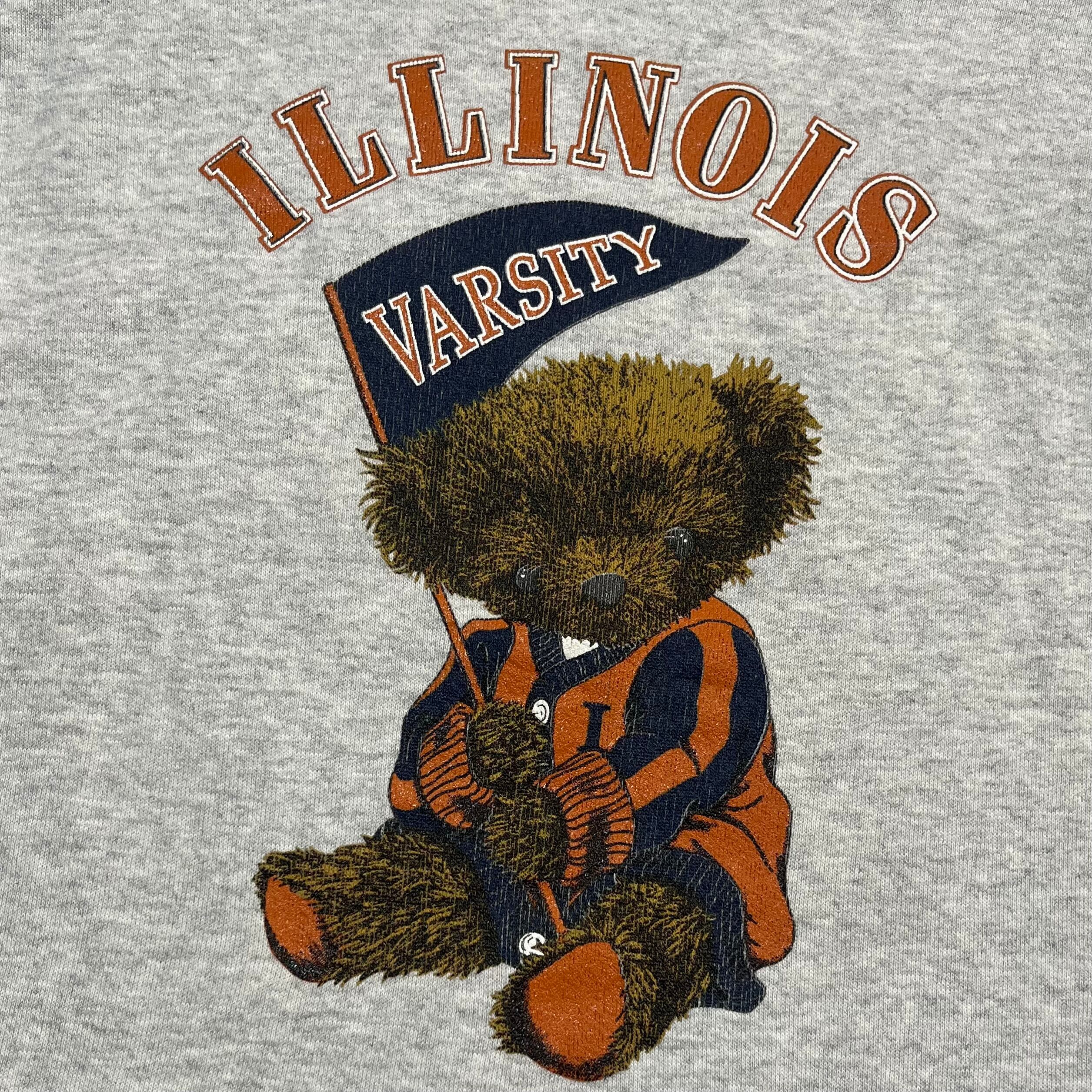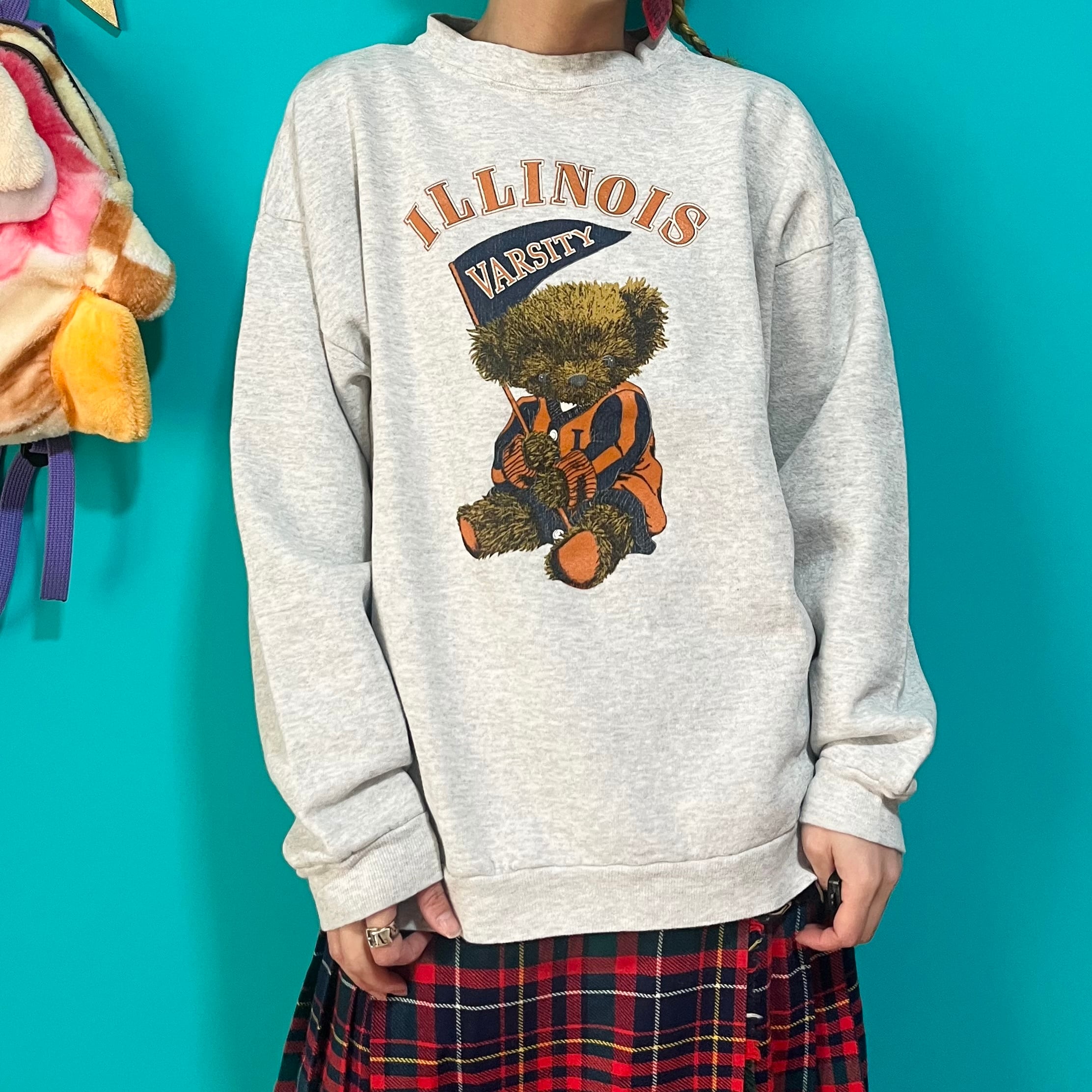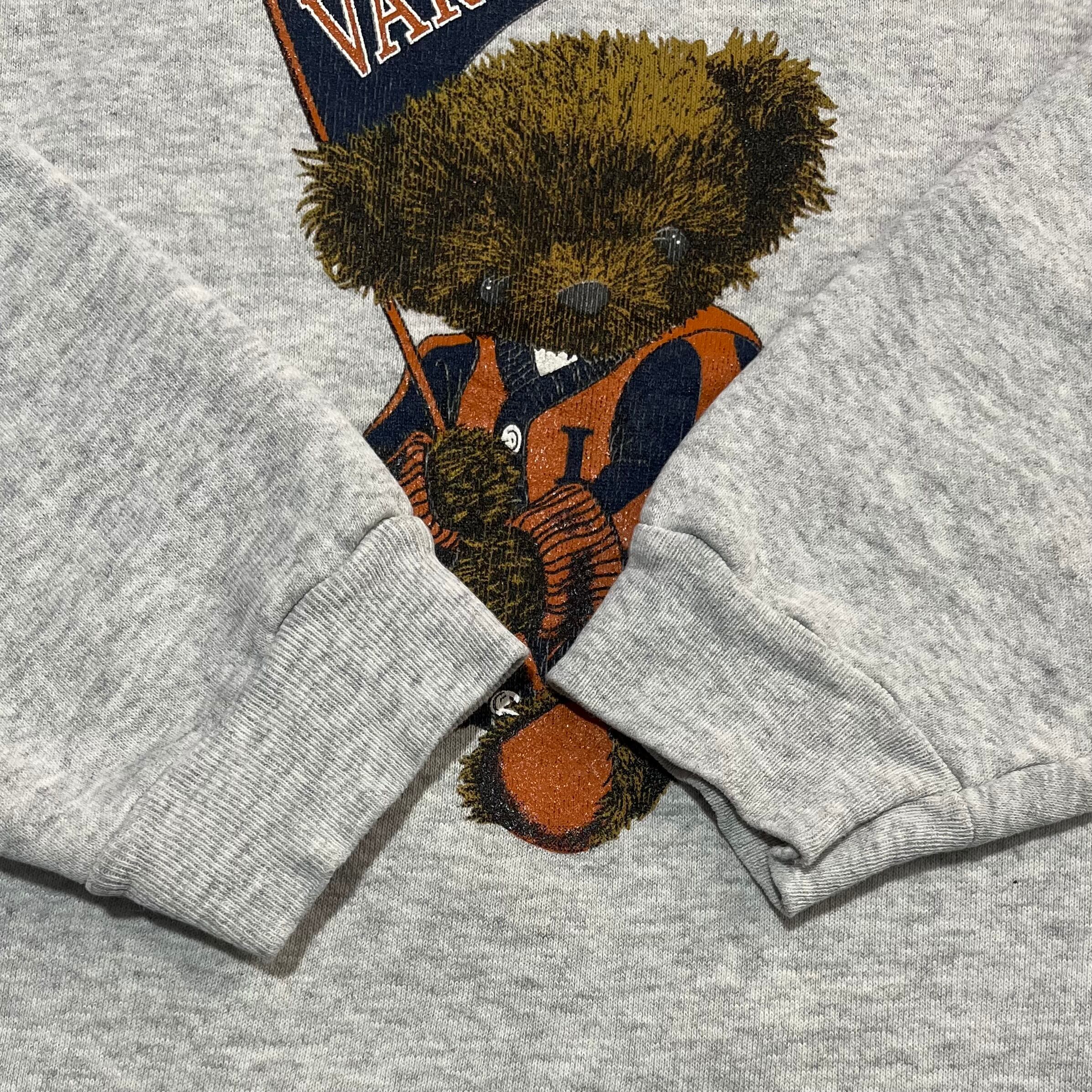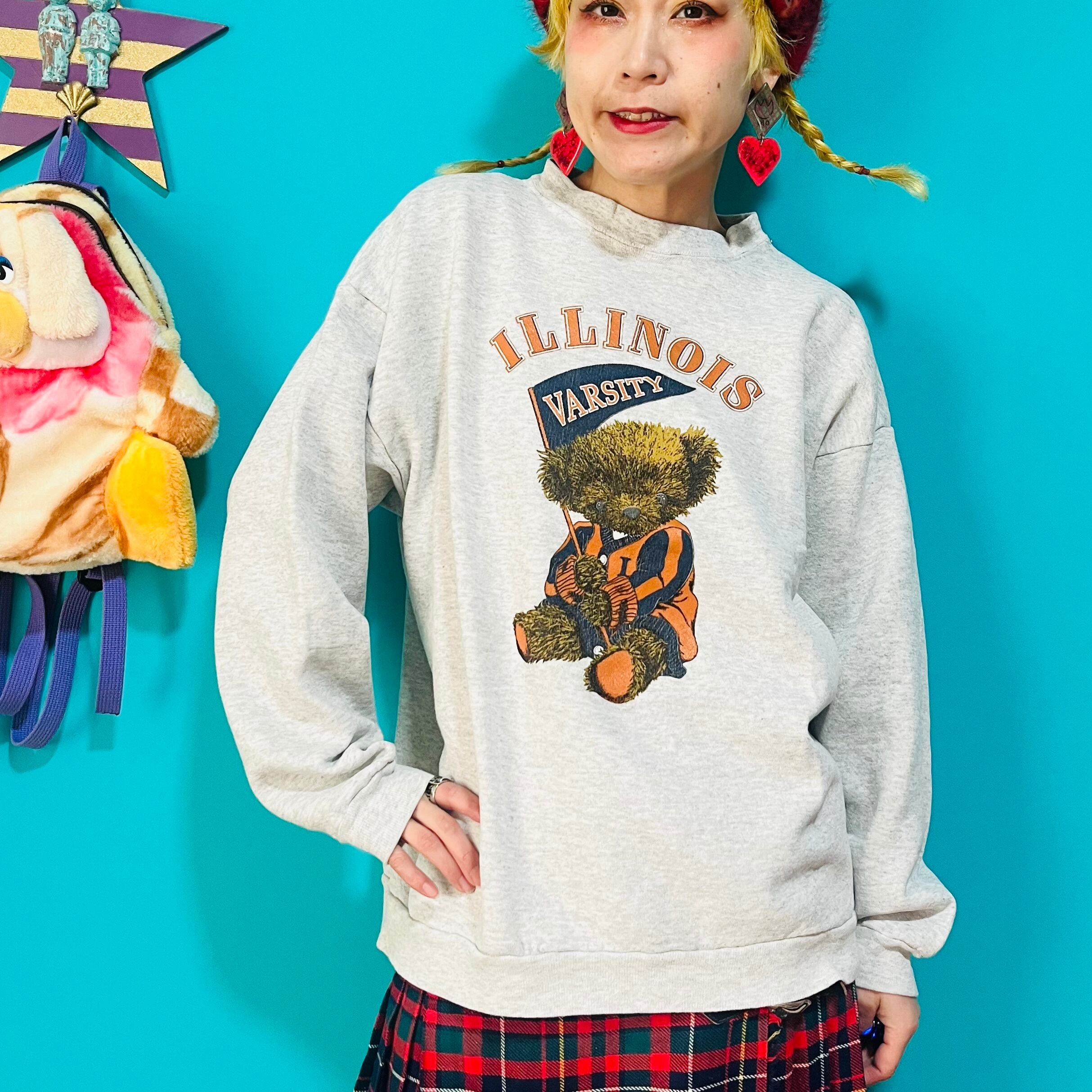 オレンジの服を着たくまちゃんがプリントされたスウェットです。