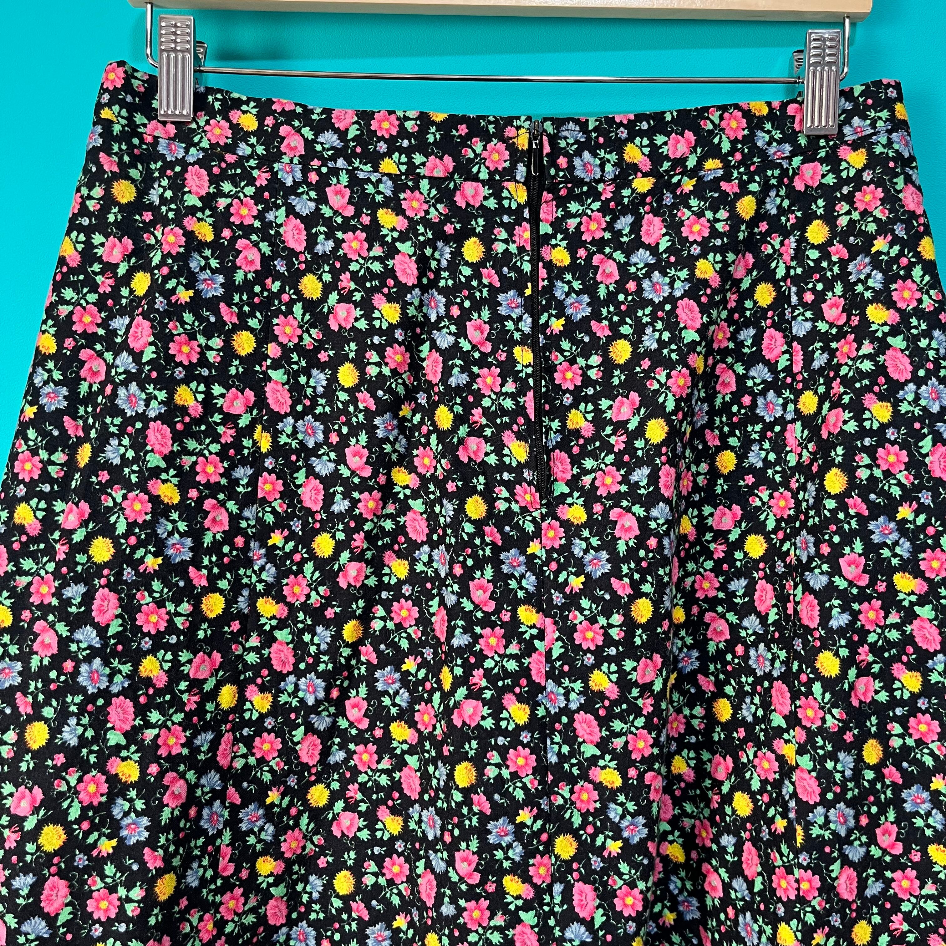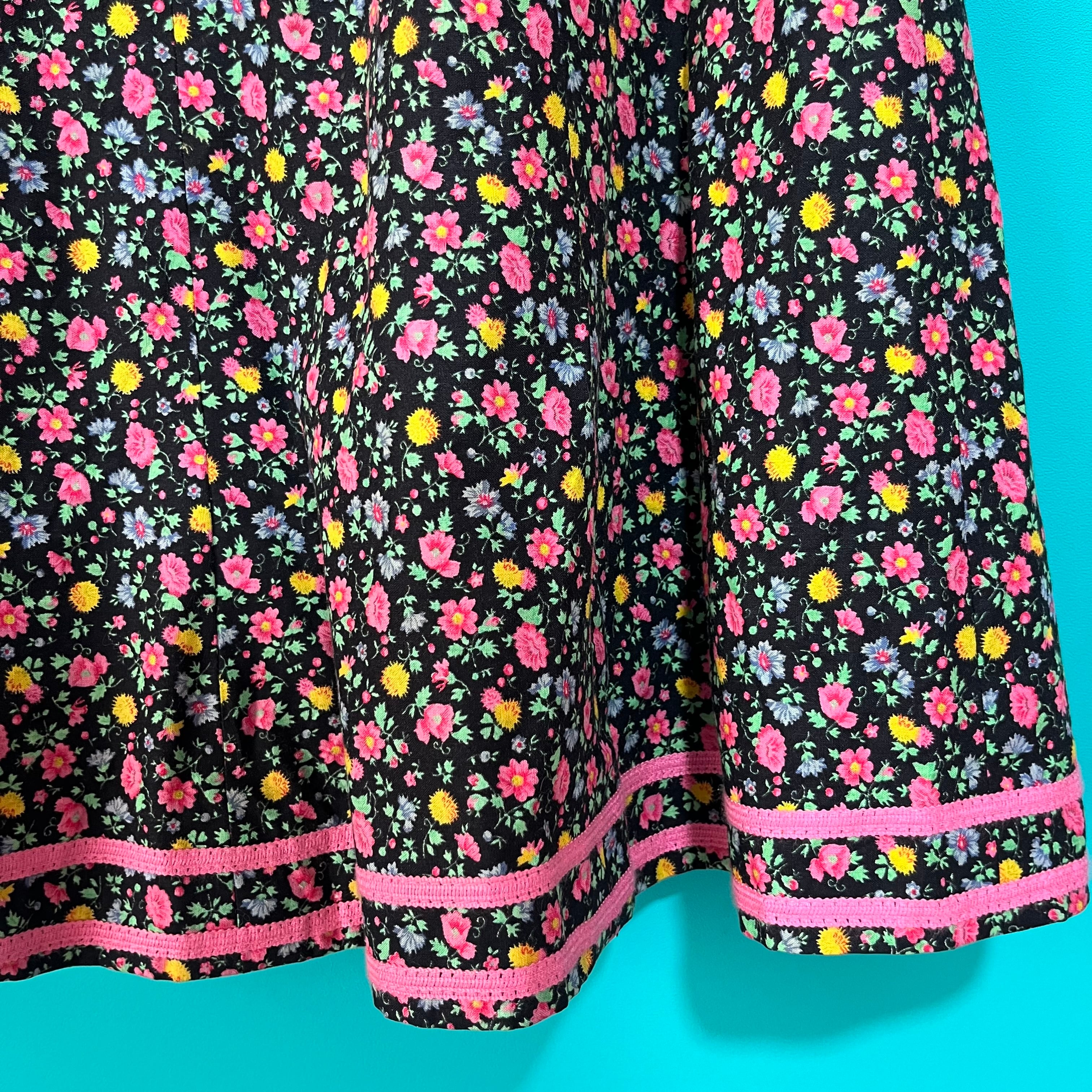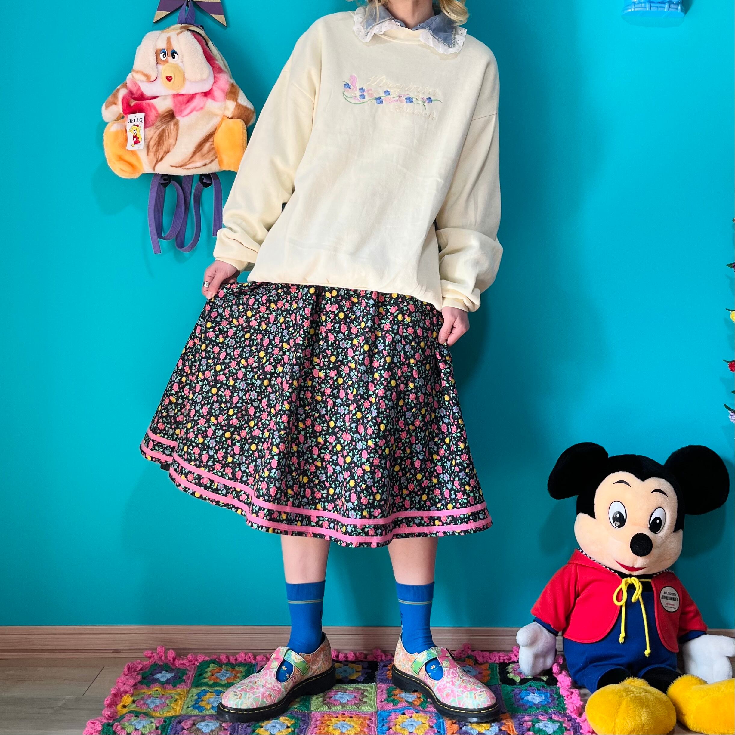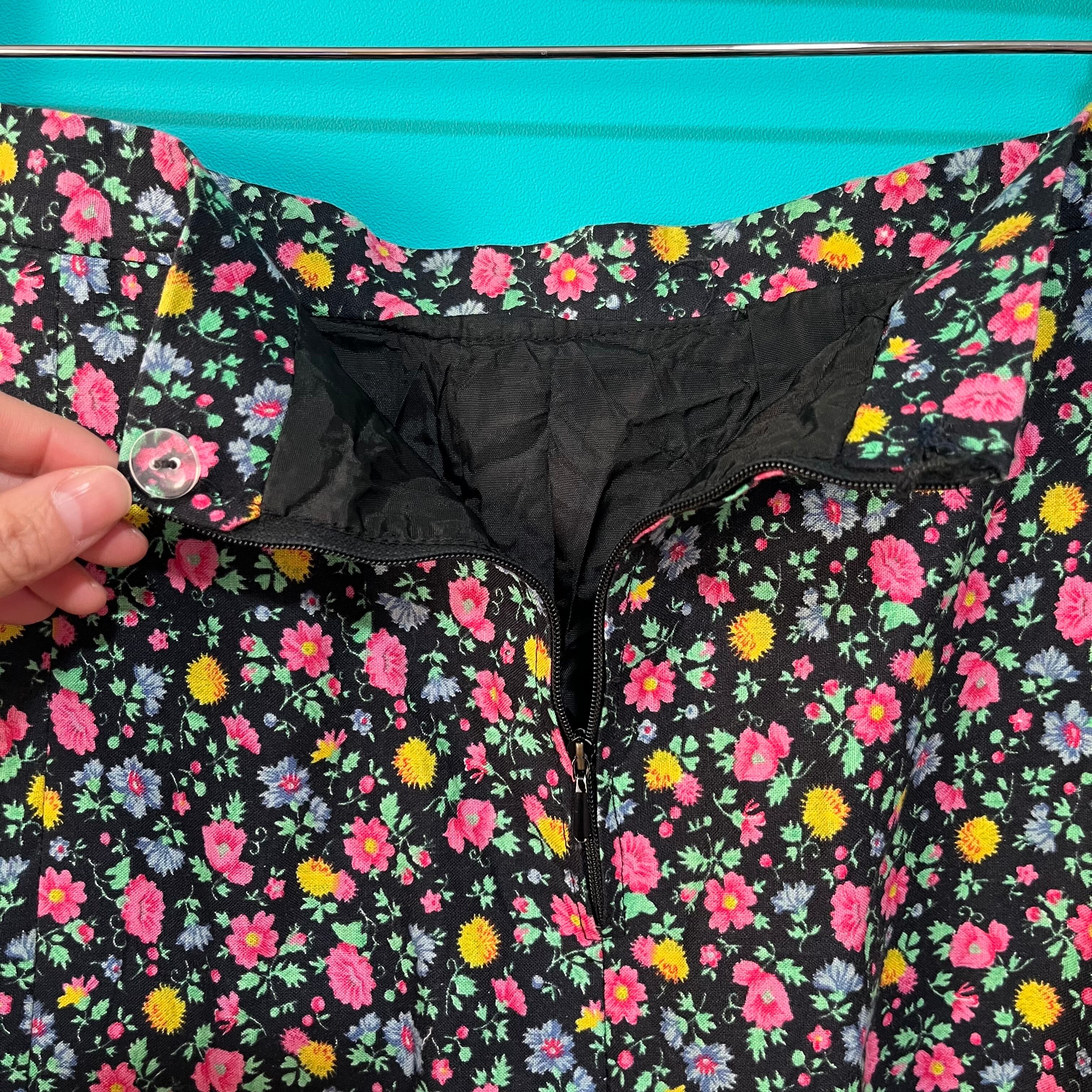 黒ベースにカラフルなお花がプリントされたスカートです。