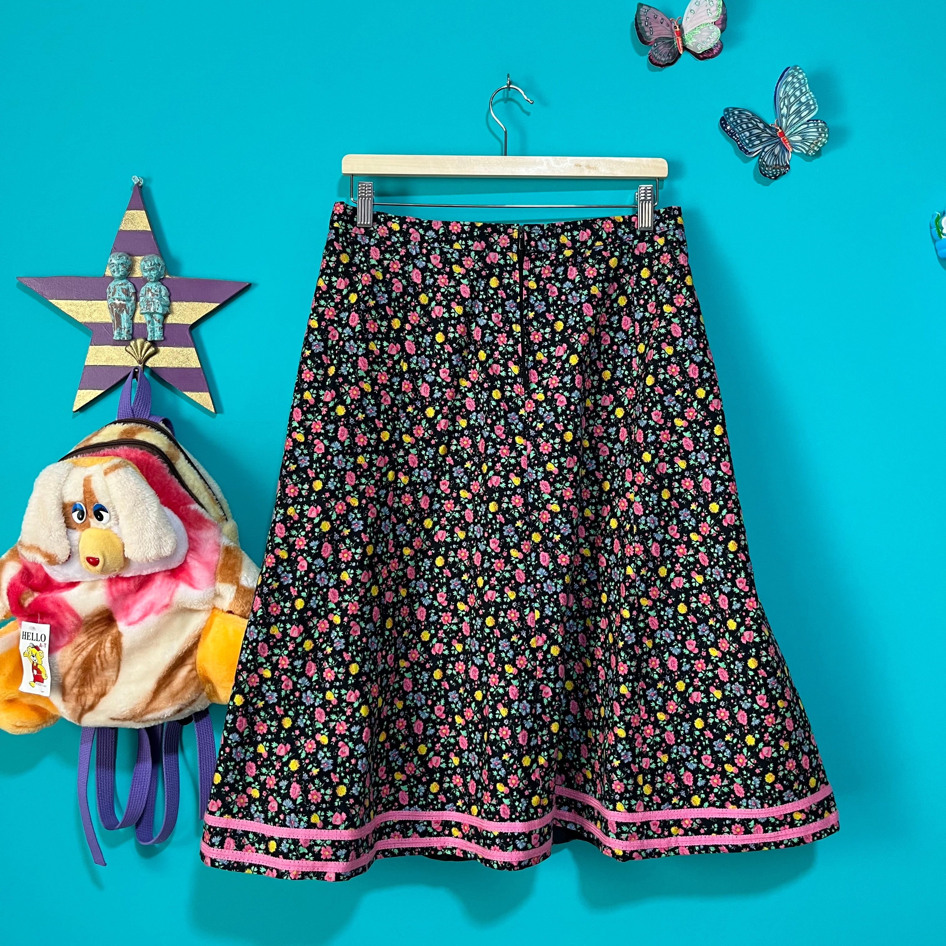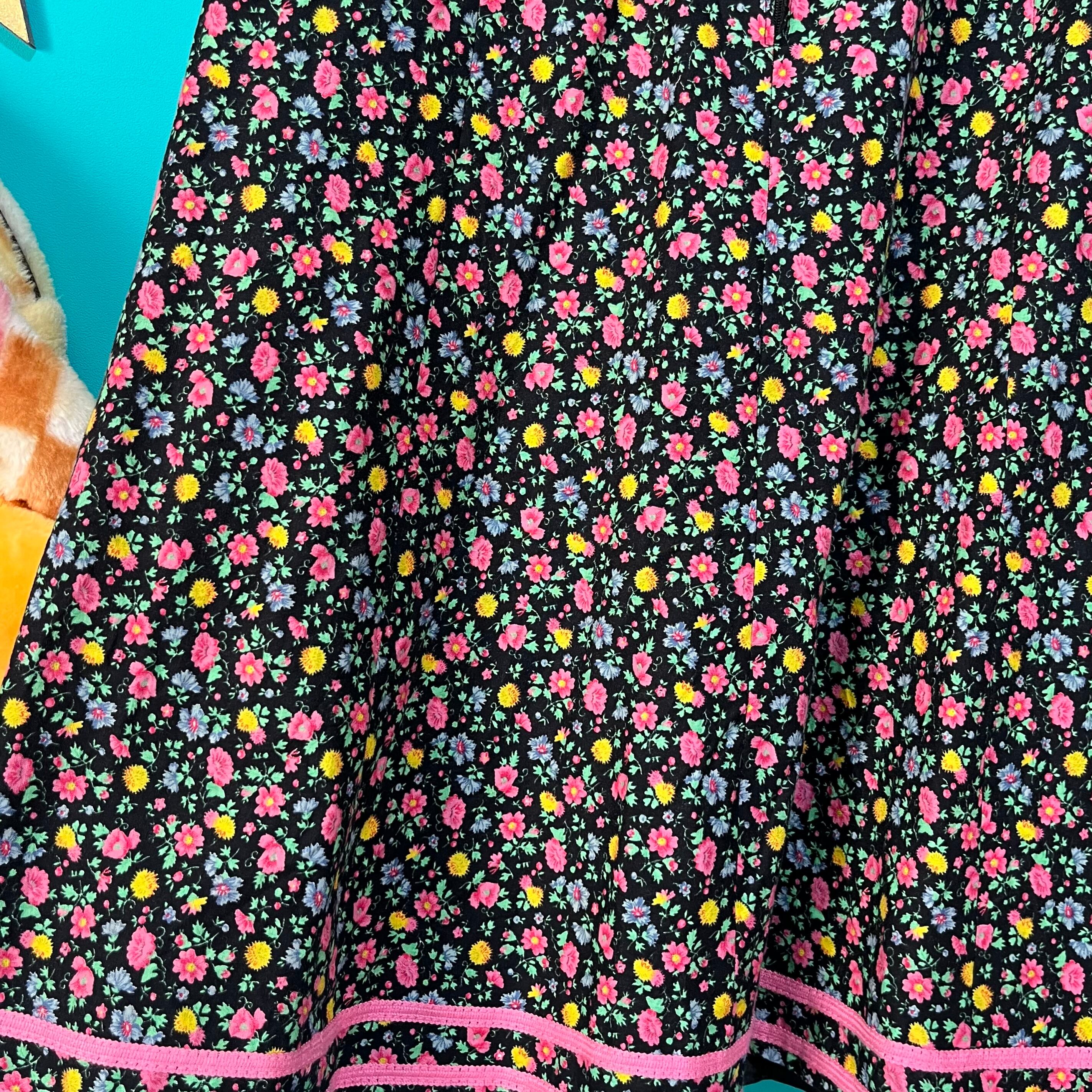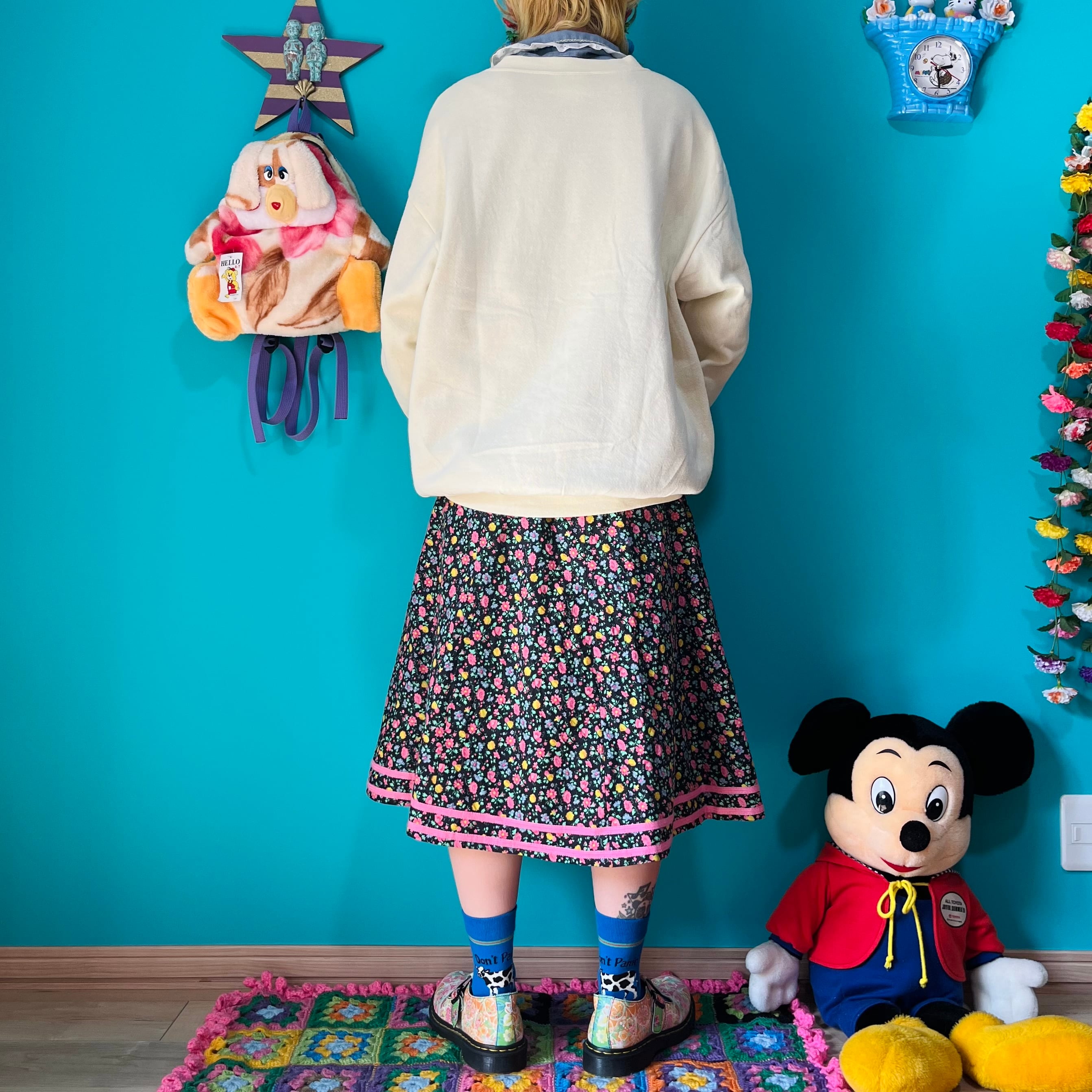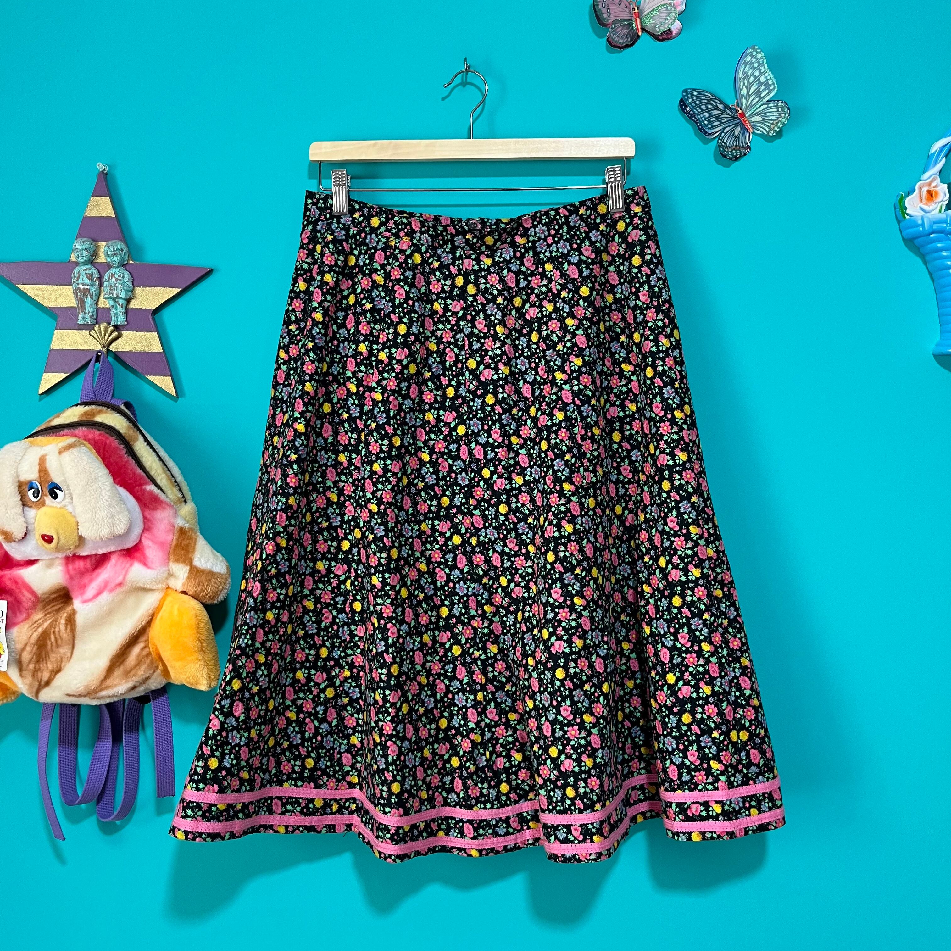 黒ベースにカラフルなお花がプリントされたスカートです。