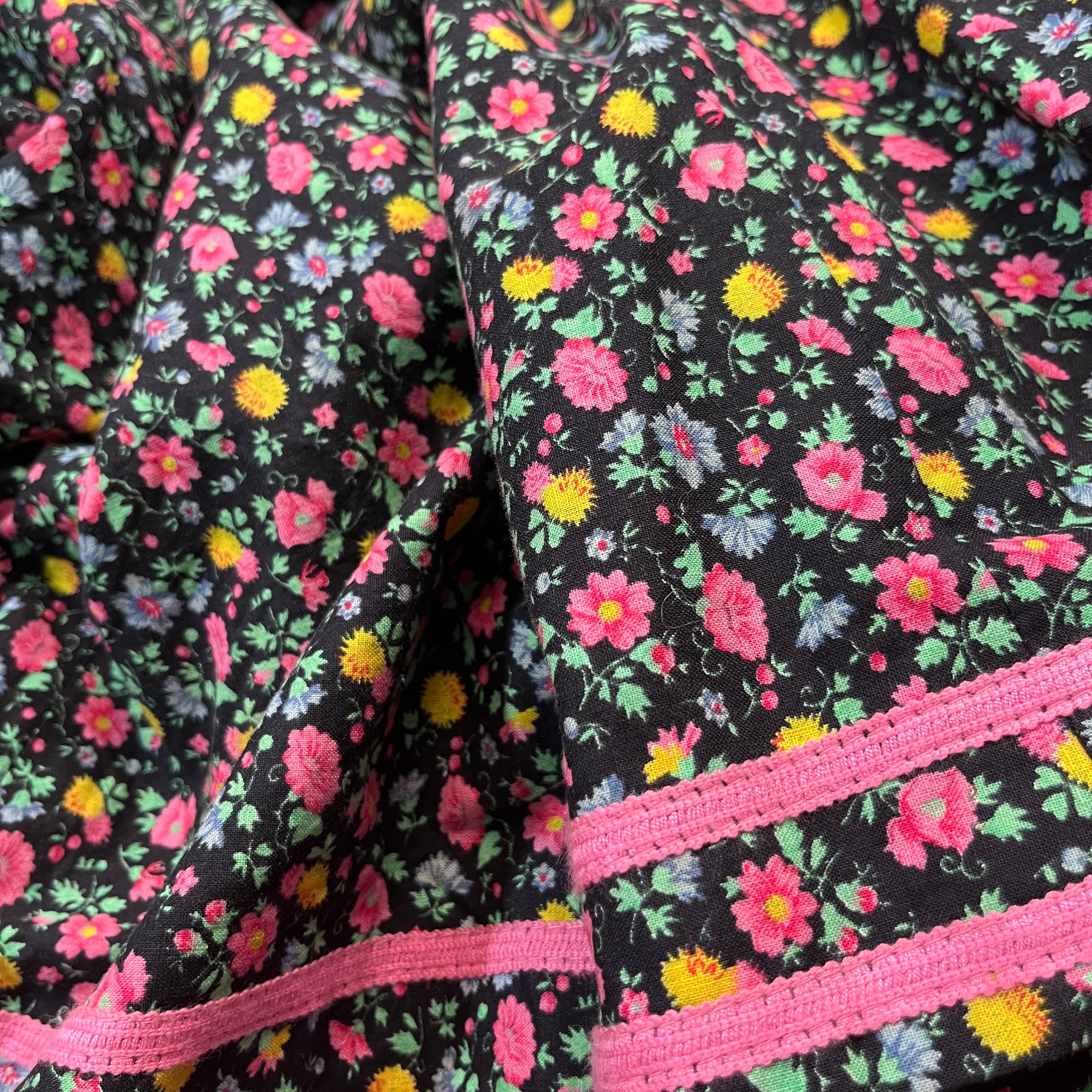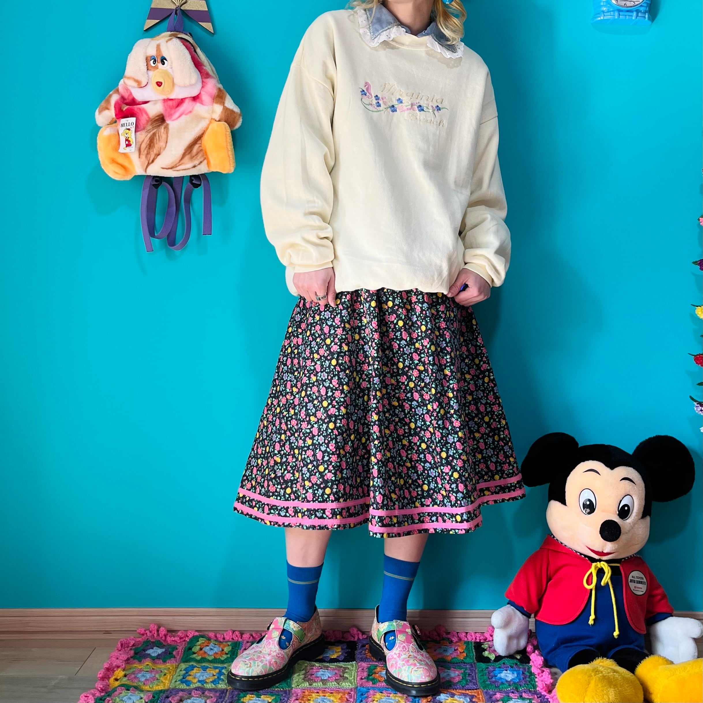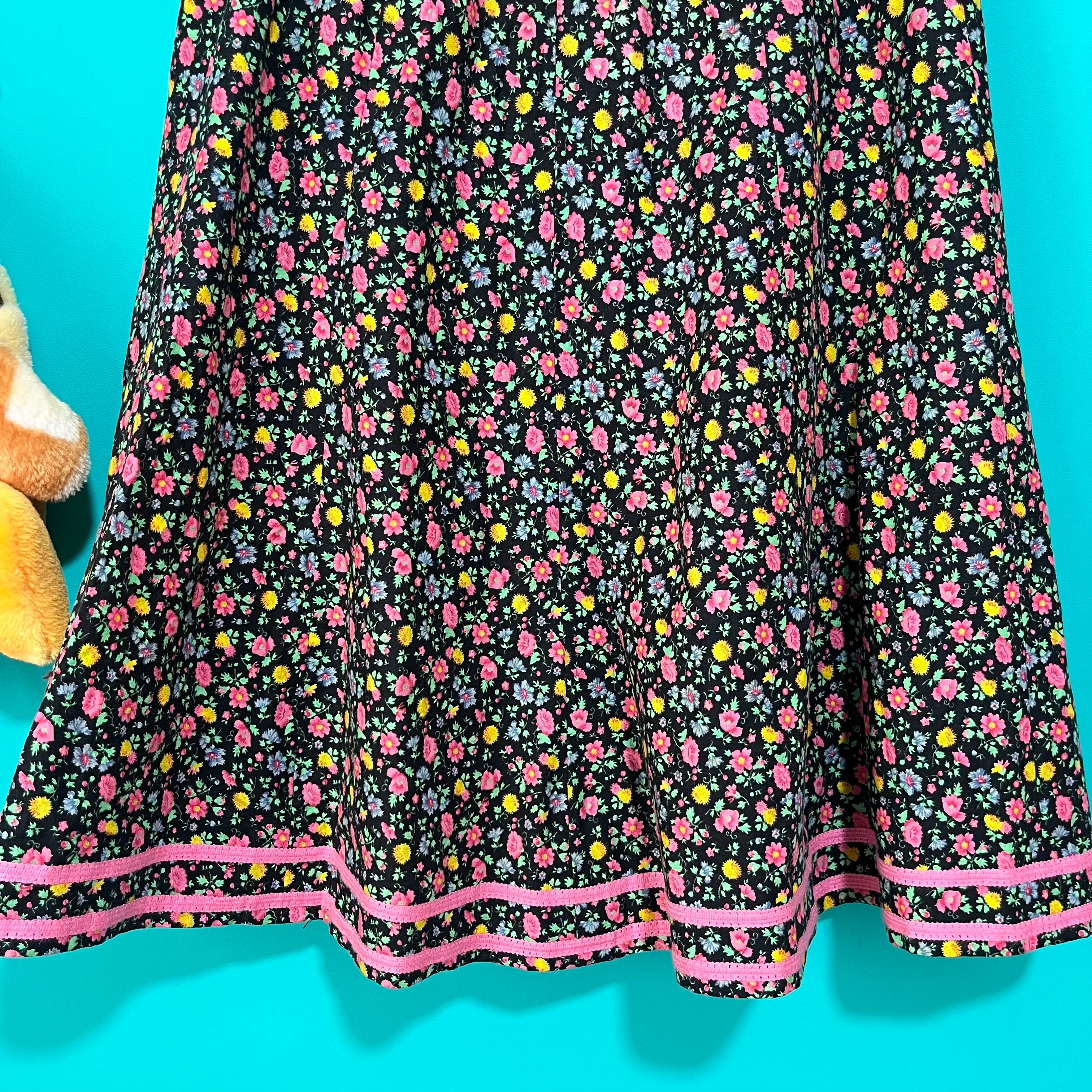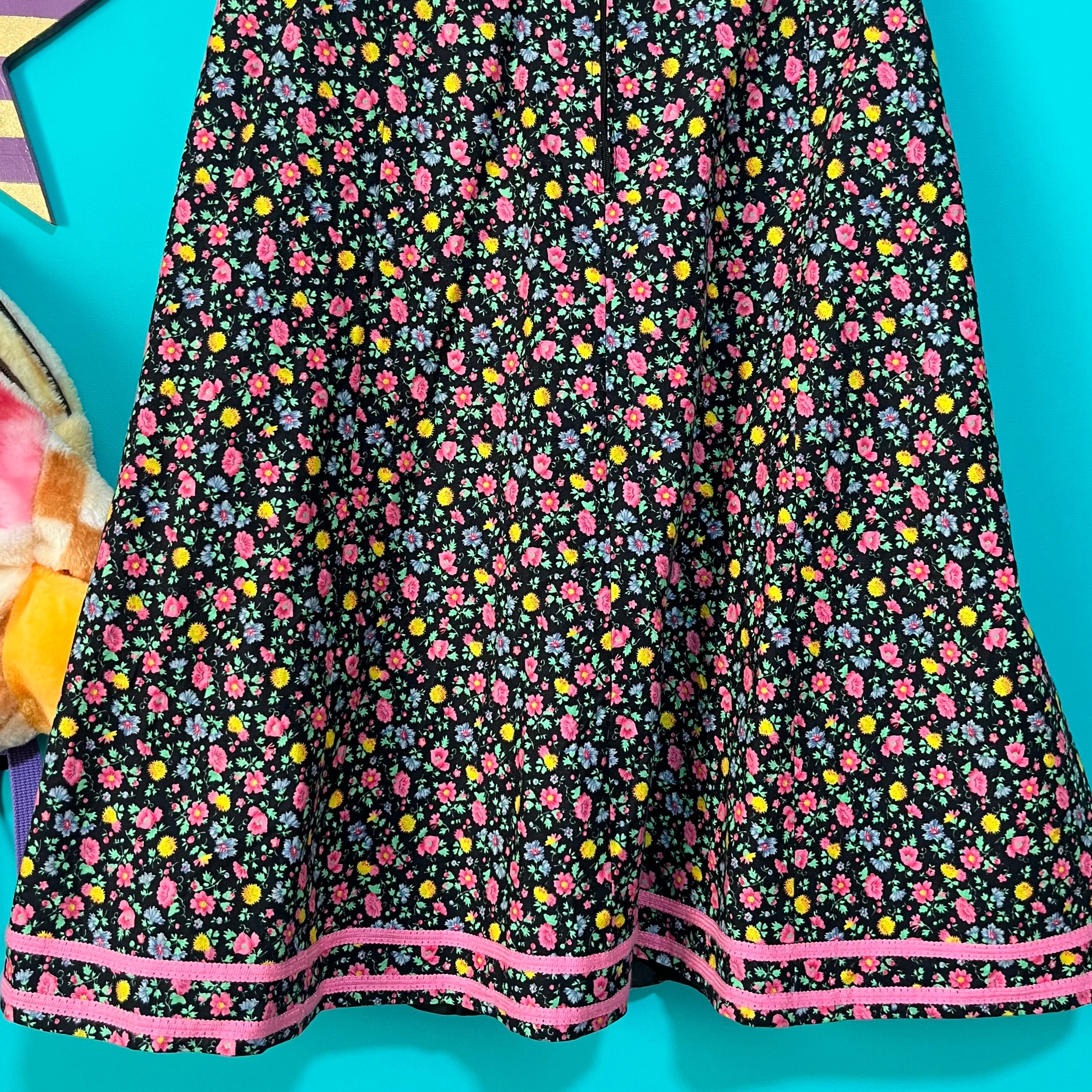 黒ベースにカラフルなお花がプリントされたスカートです。