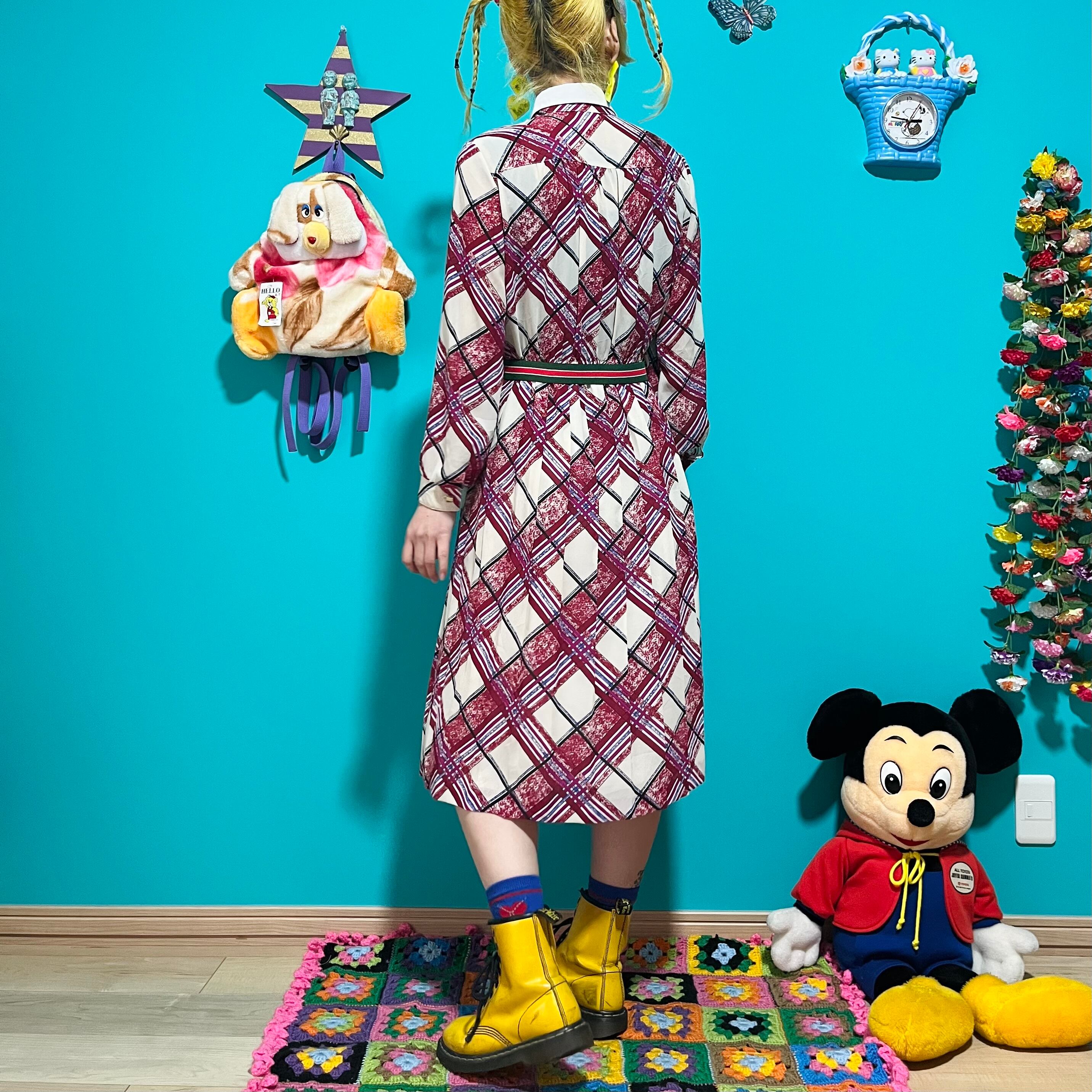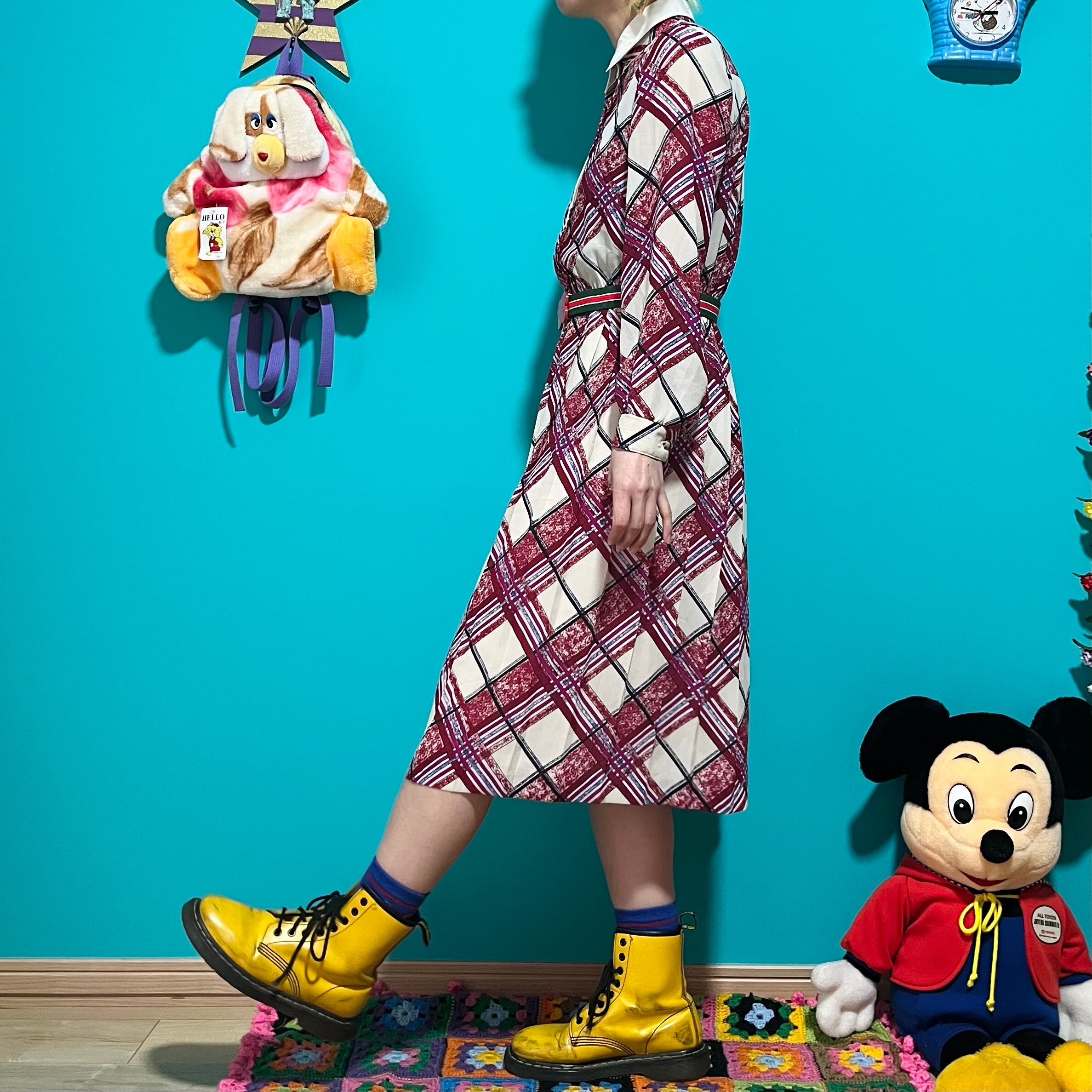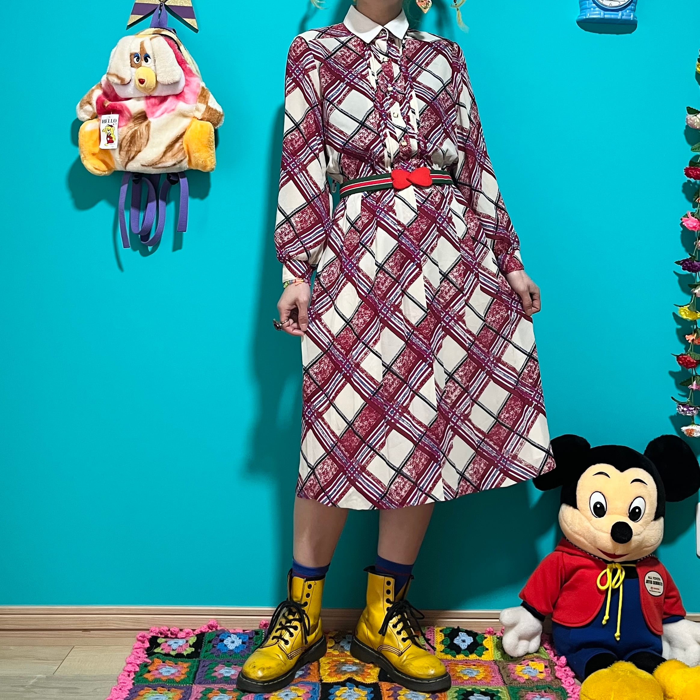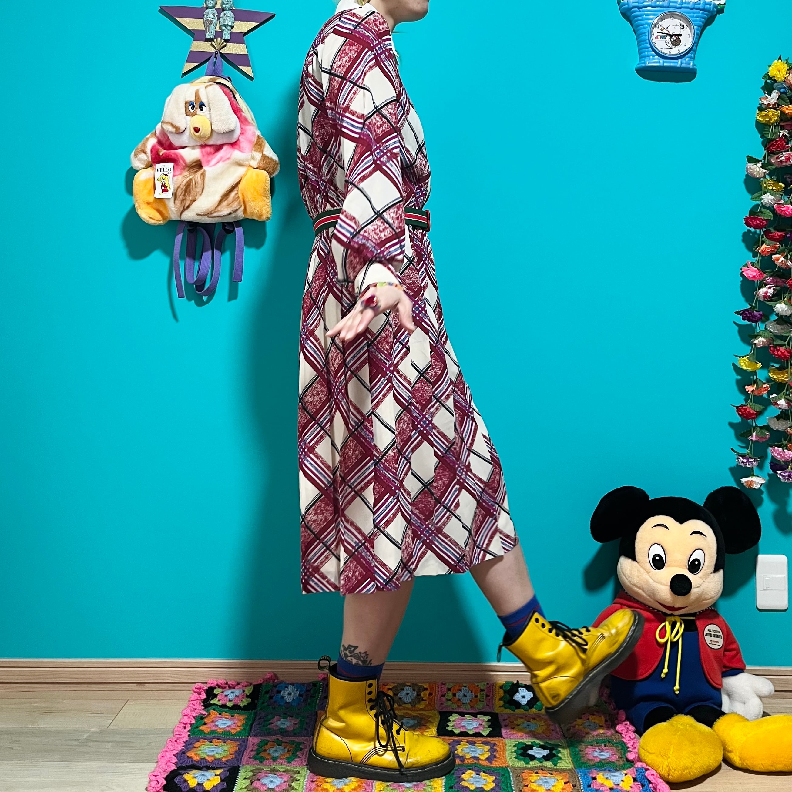 とろんとしたポリエステル素材の日本製レトロワンピースです。