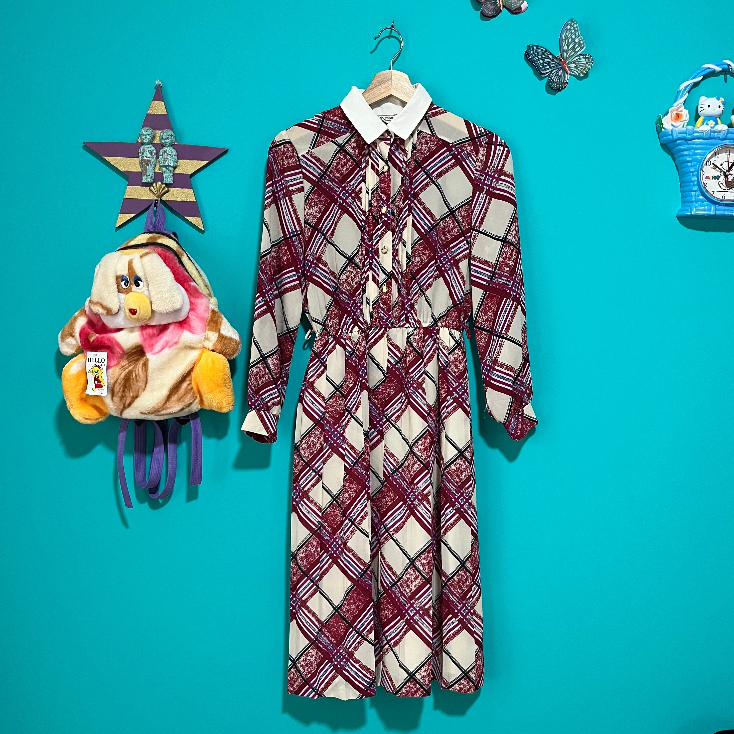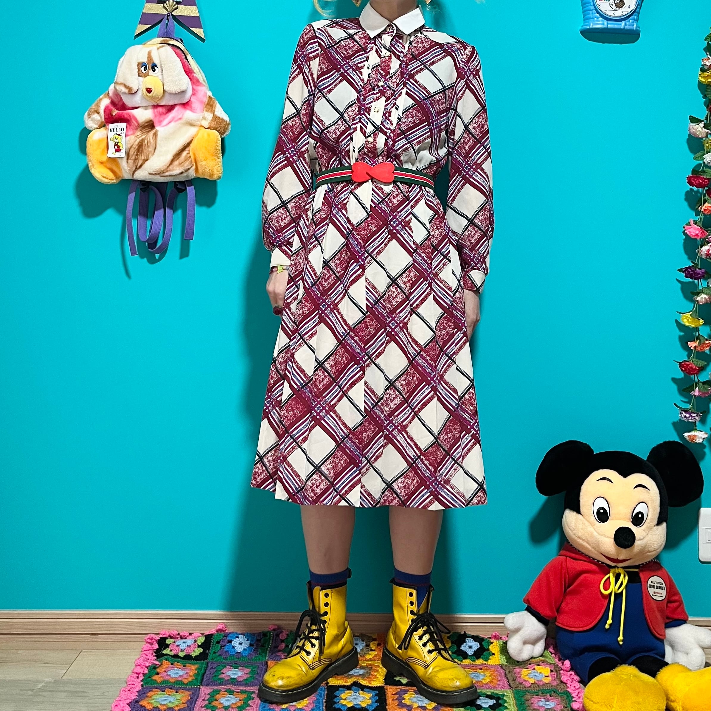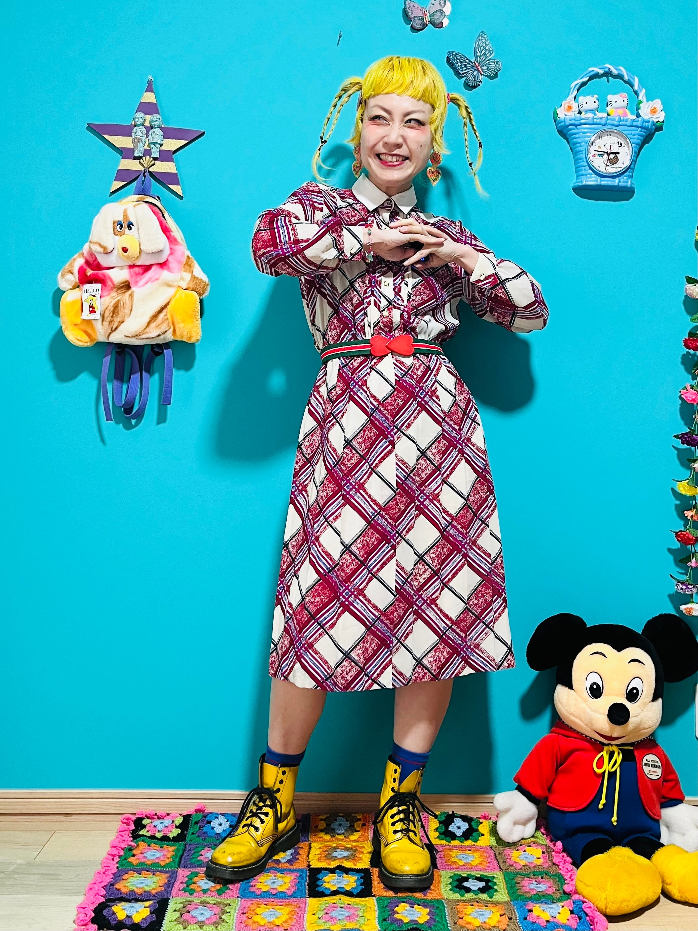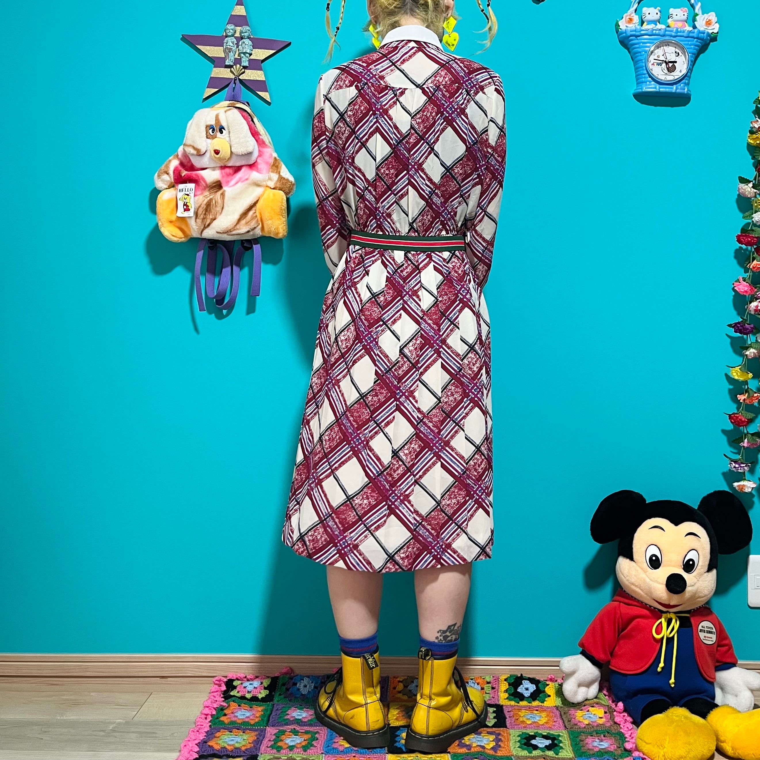 とろんとしたポリエステル素材の日本製レトロワンピースです。