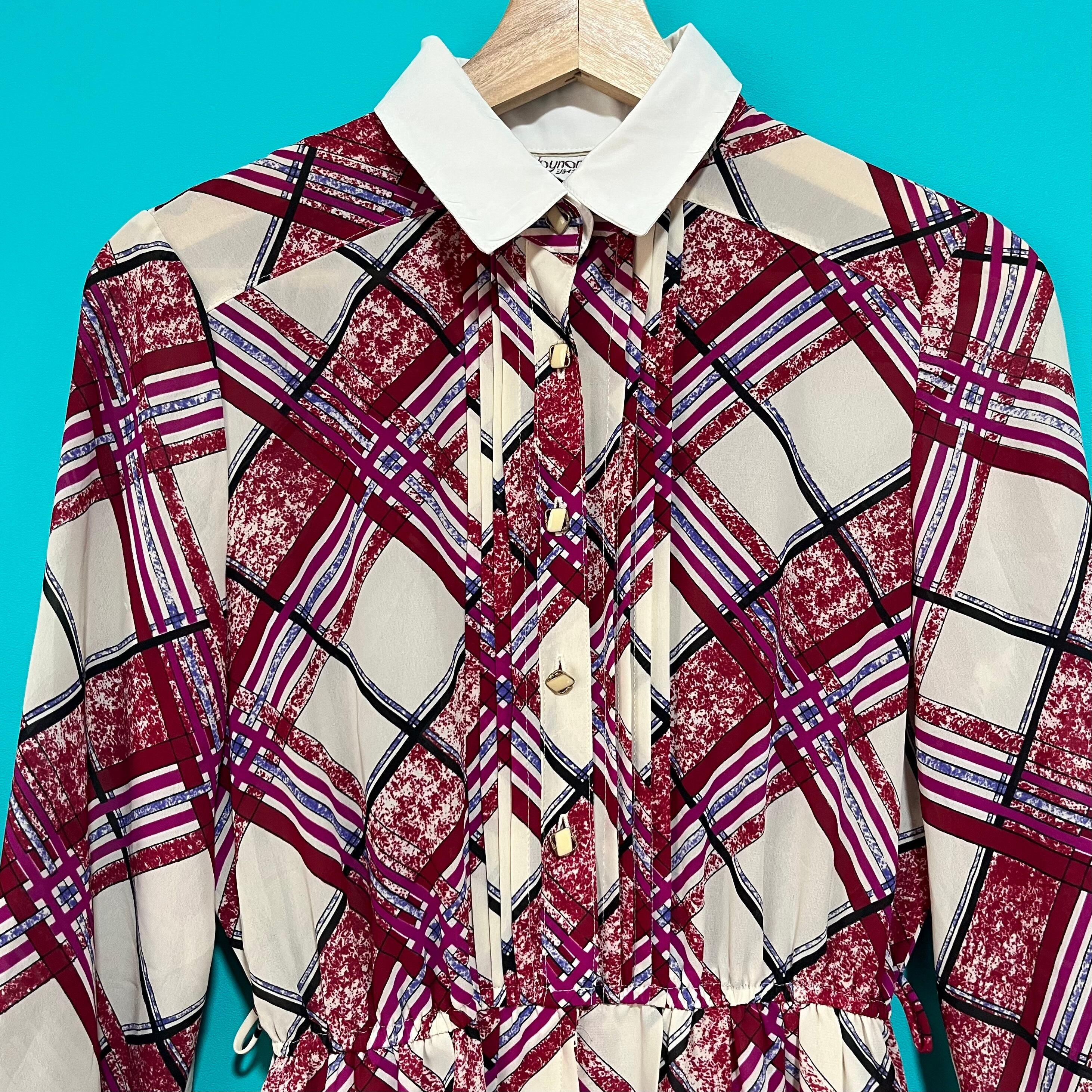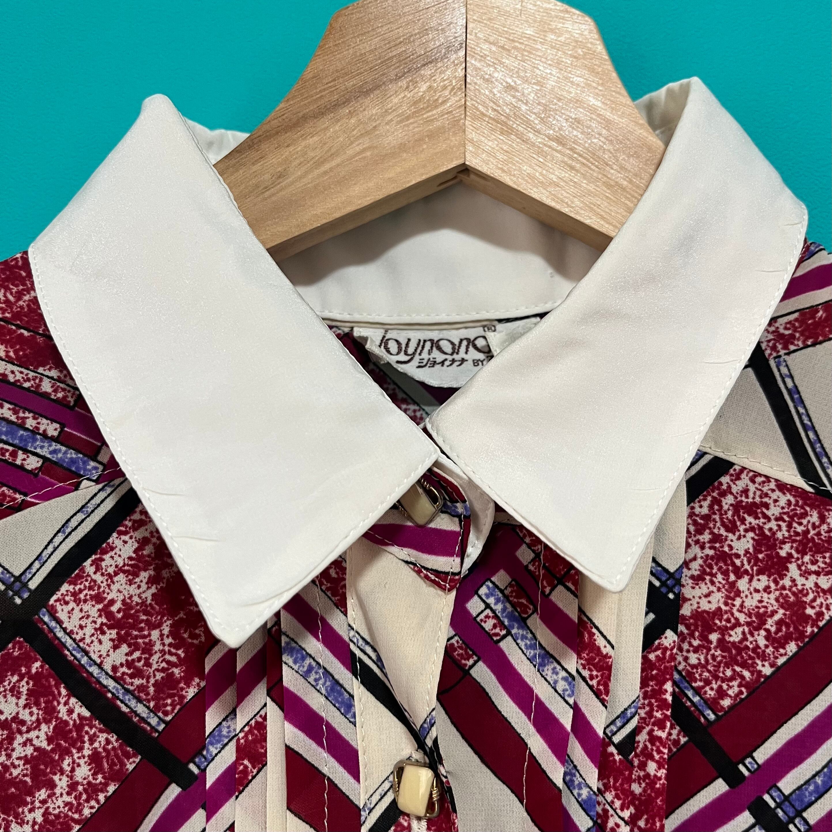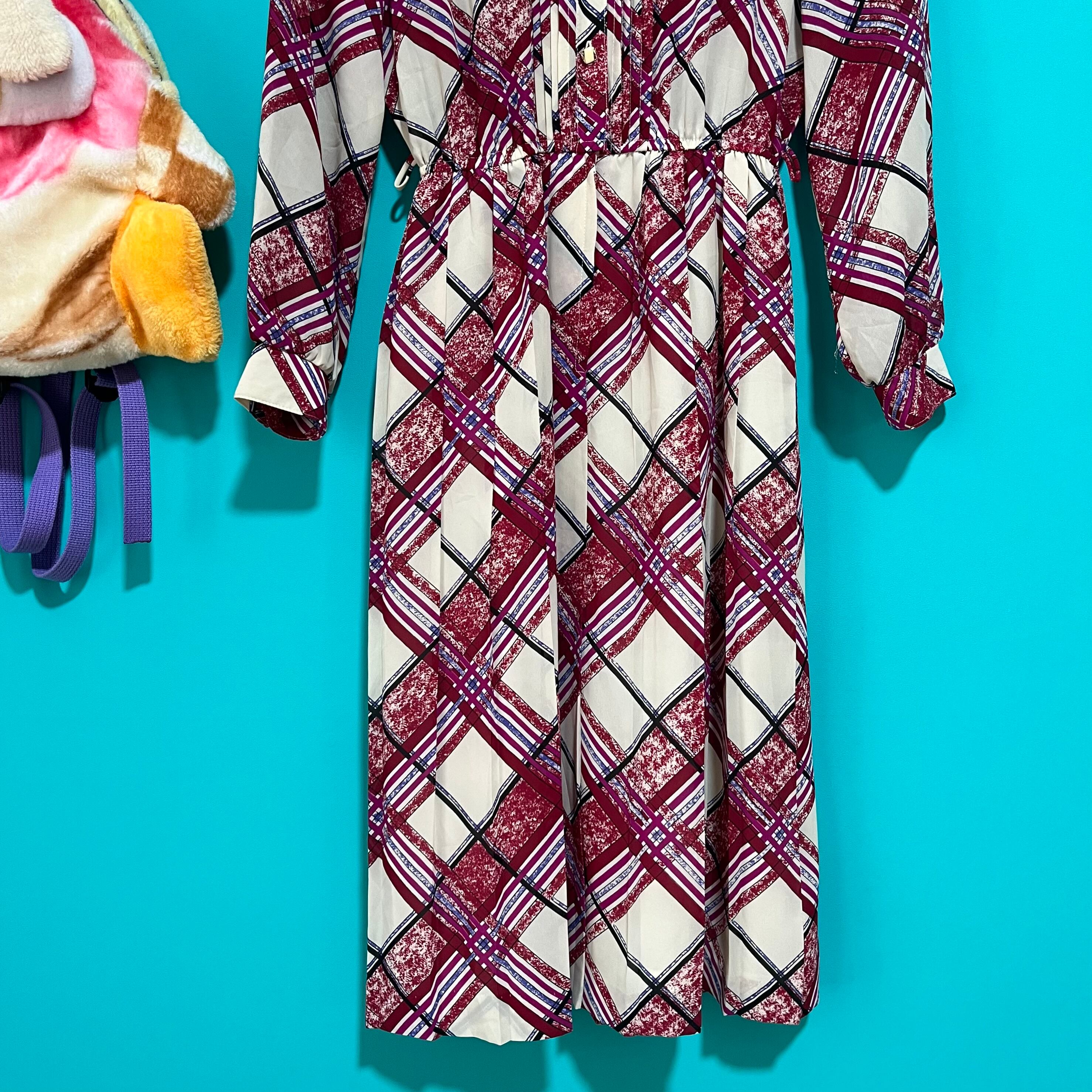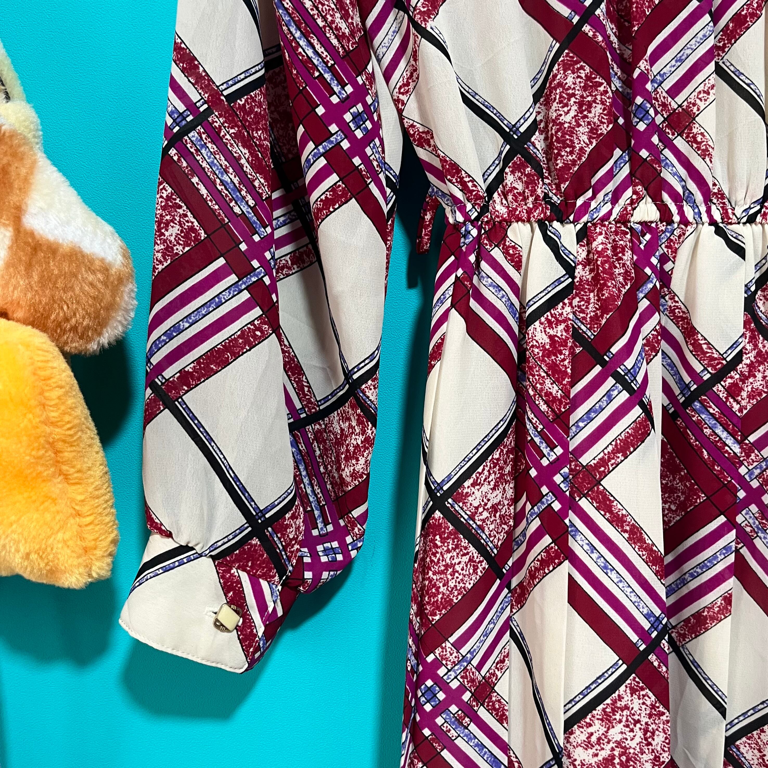 とろんとしたポリエステル素材の日本製レトロワンピースです。