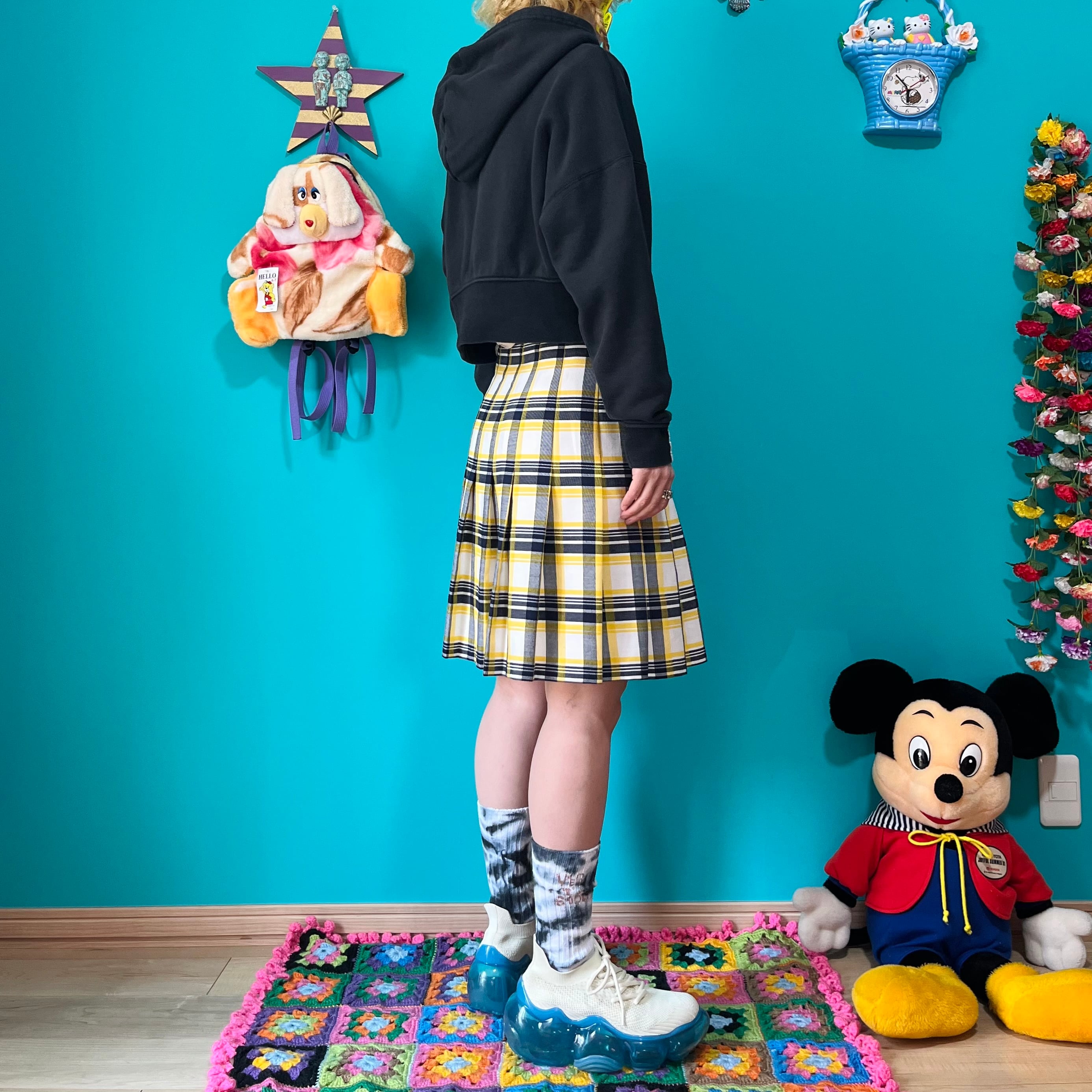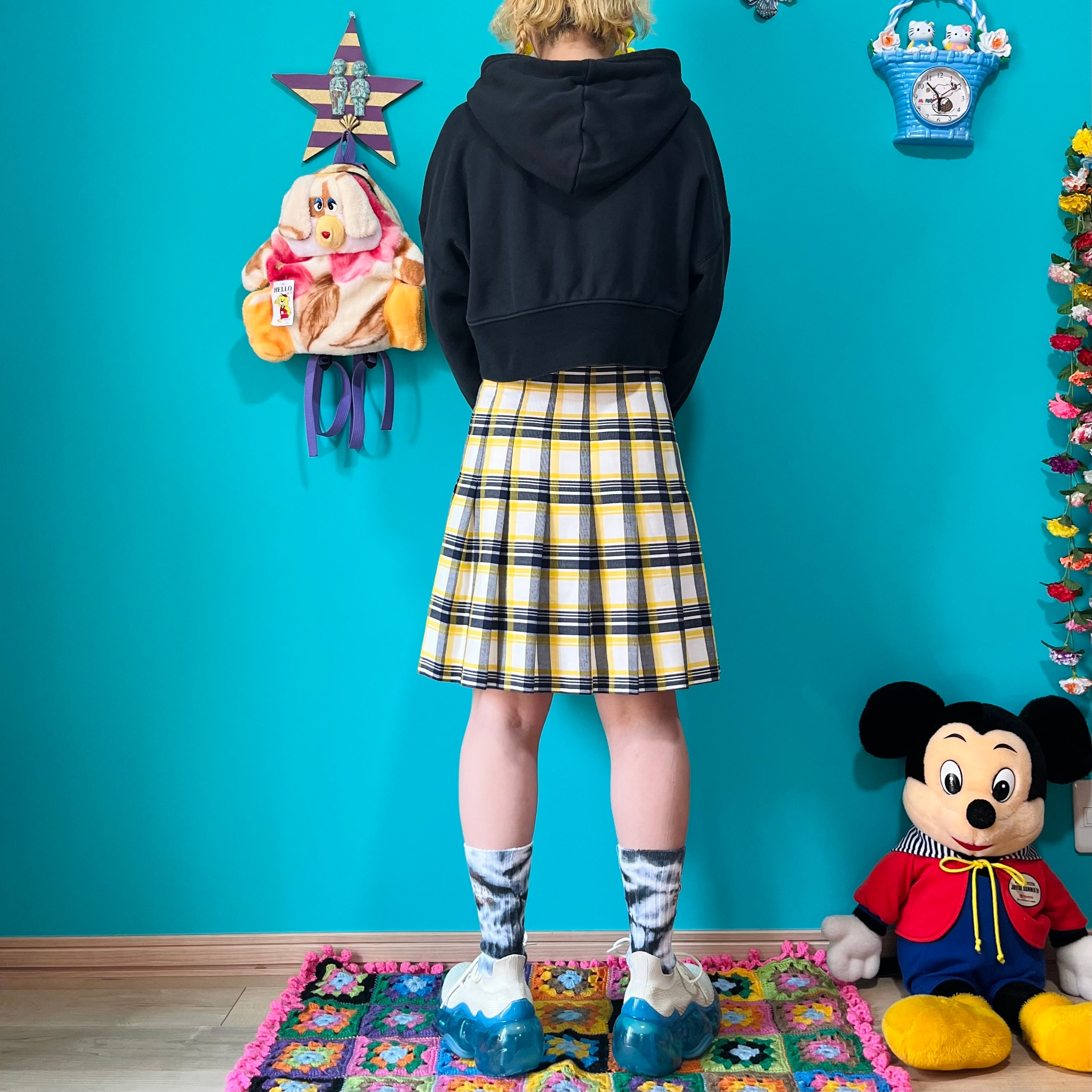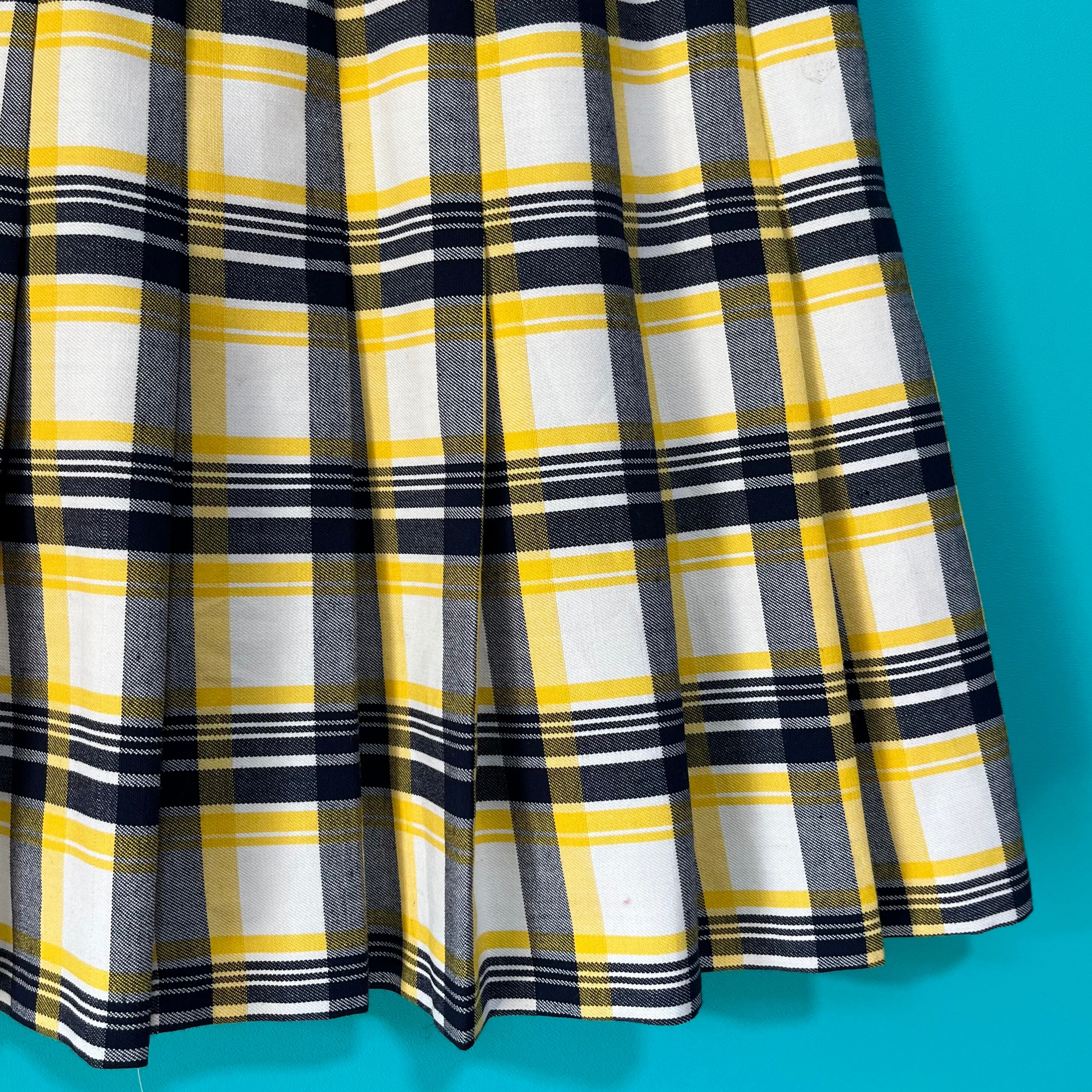 イエローチェックのプリーツミニスカートです。