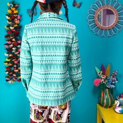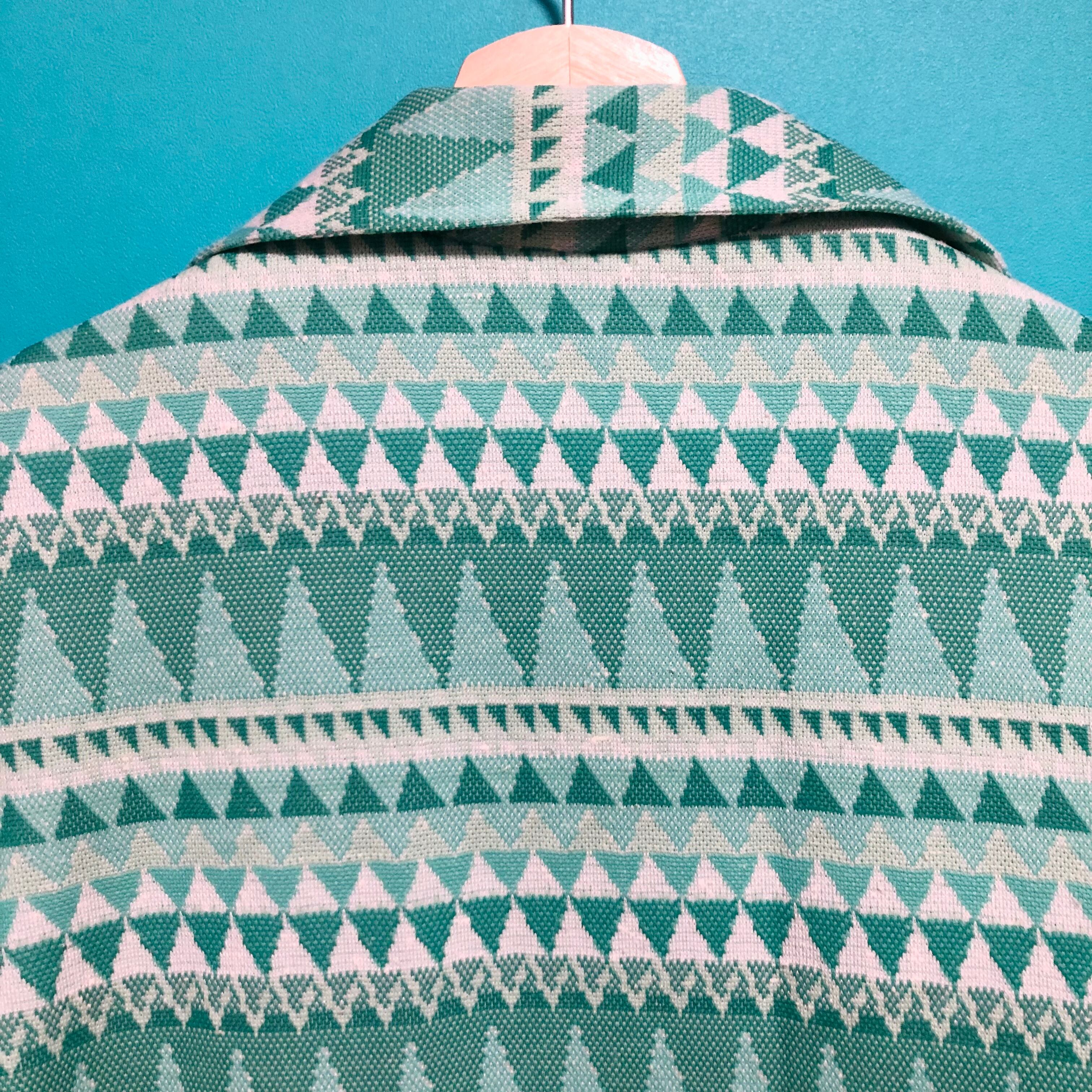 鮮やかなグリーンの総柄レトロブラウスです。