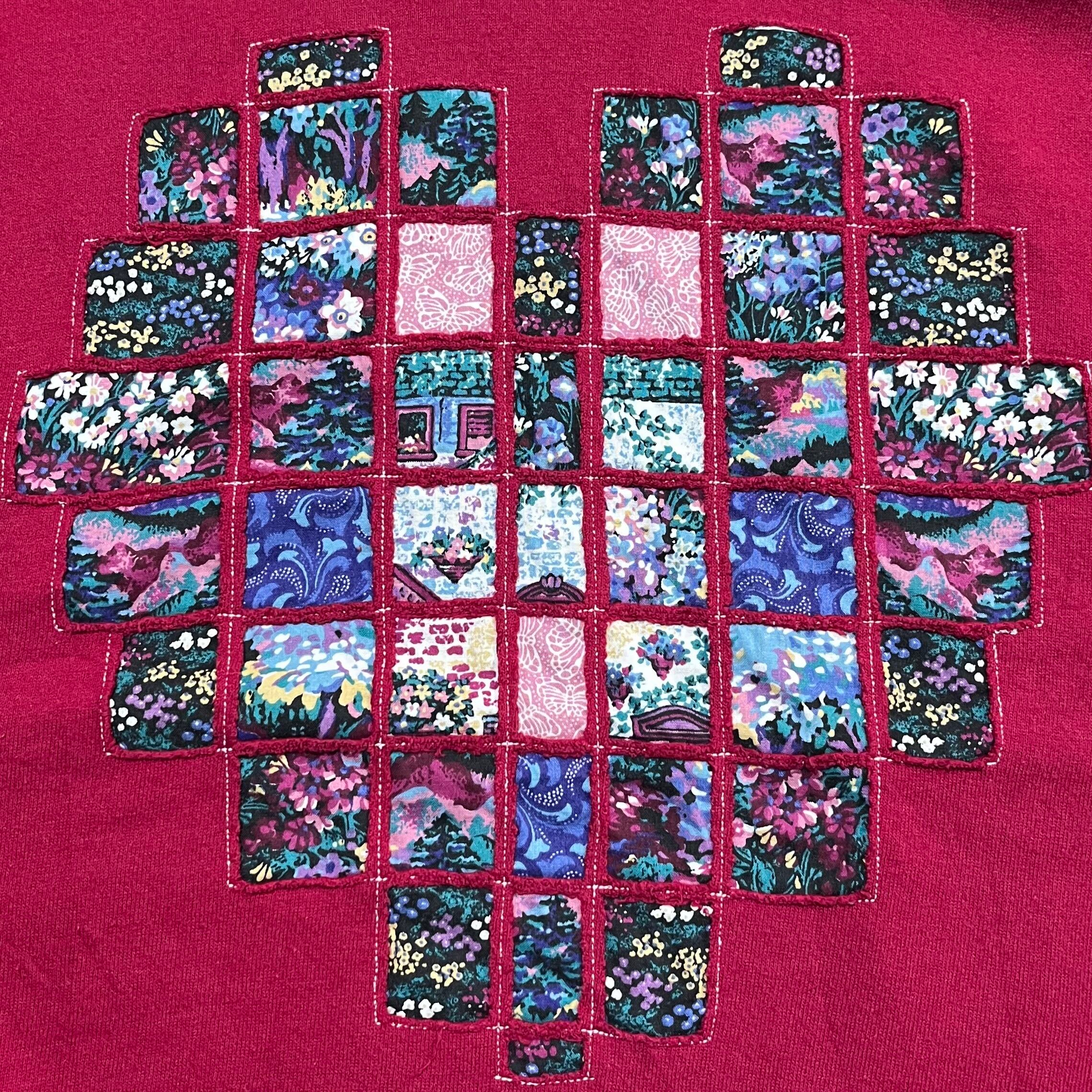 ハートのカットワークからお花や蝶々など色々な模様が見える楽しいスウェットです。
