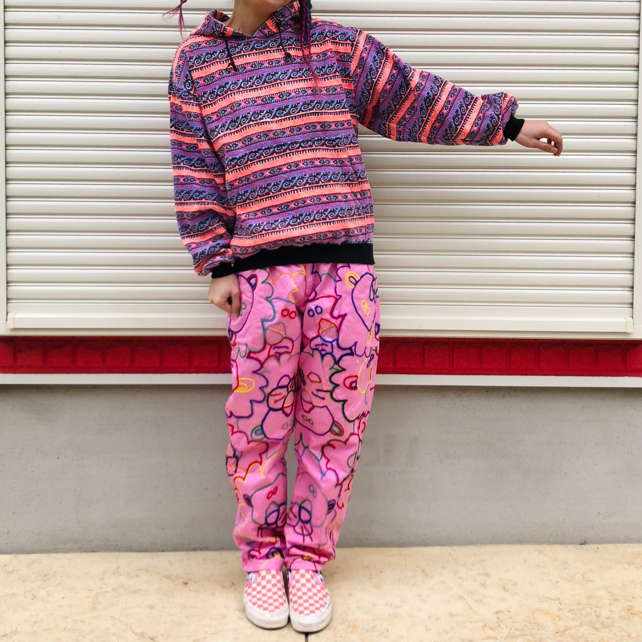 カラフルで可愛いシマシマ渦巻きパーカーです。