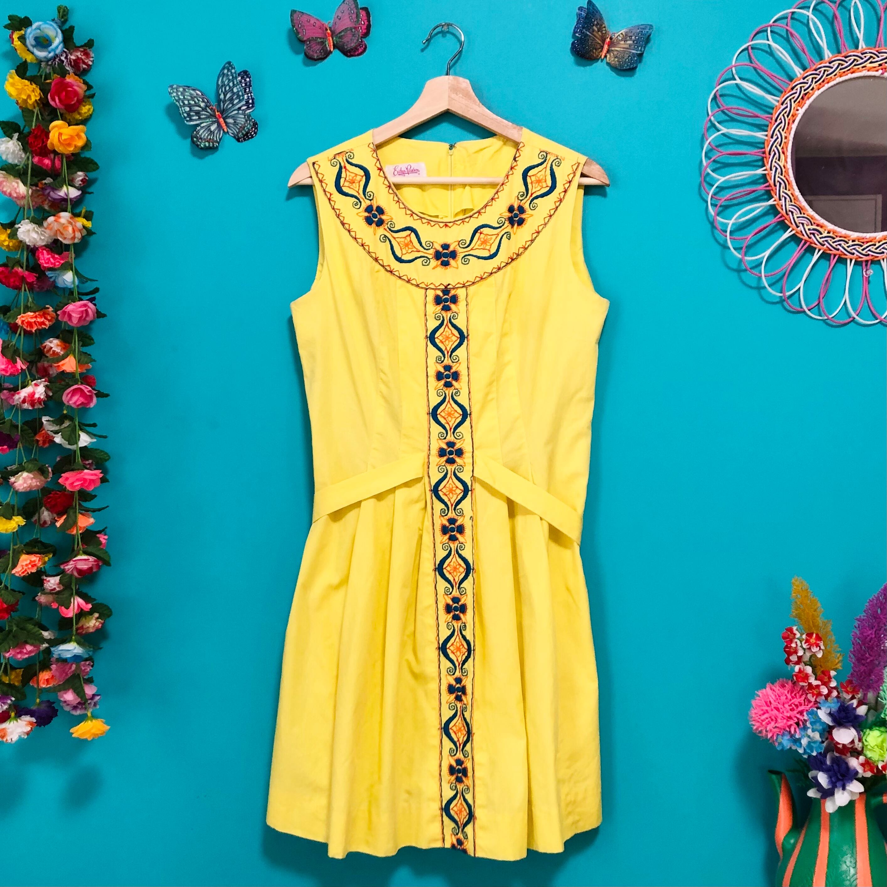 刺繍たっぷりの黄色いひよこ色のワンピースです♡