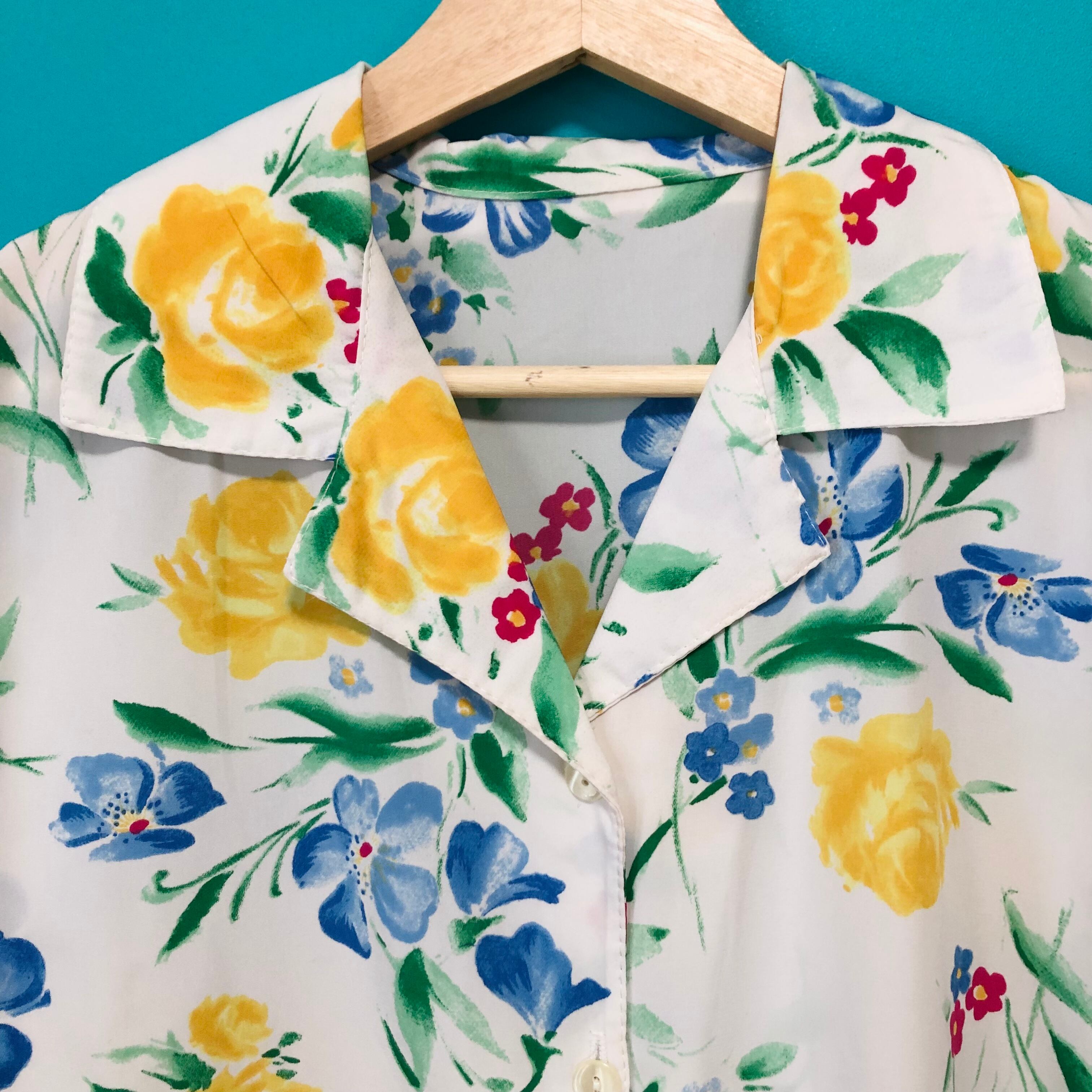 白いお花柄のレトロブラウスです。