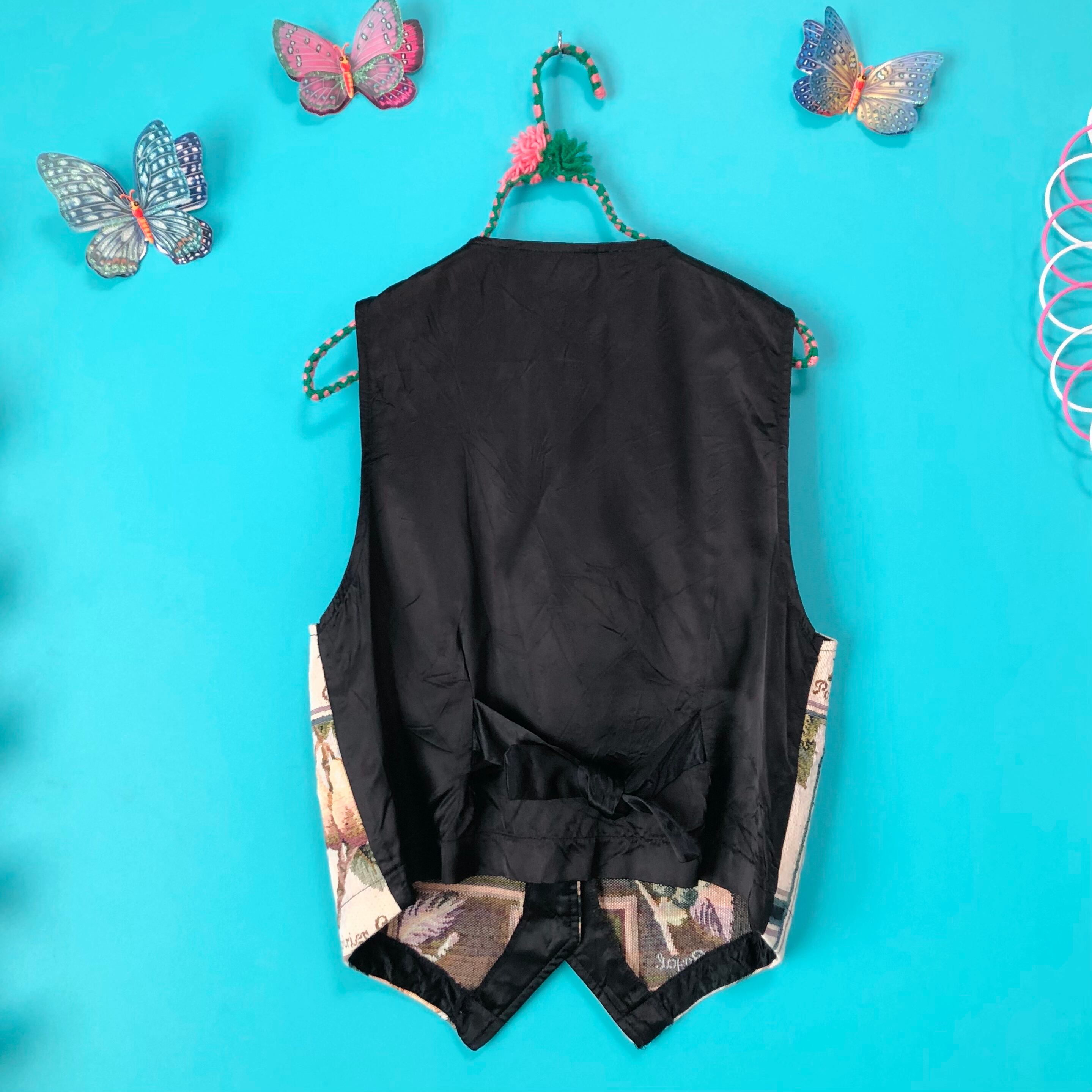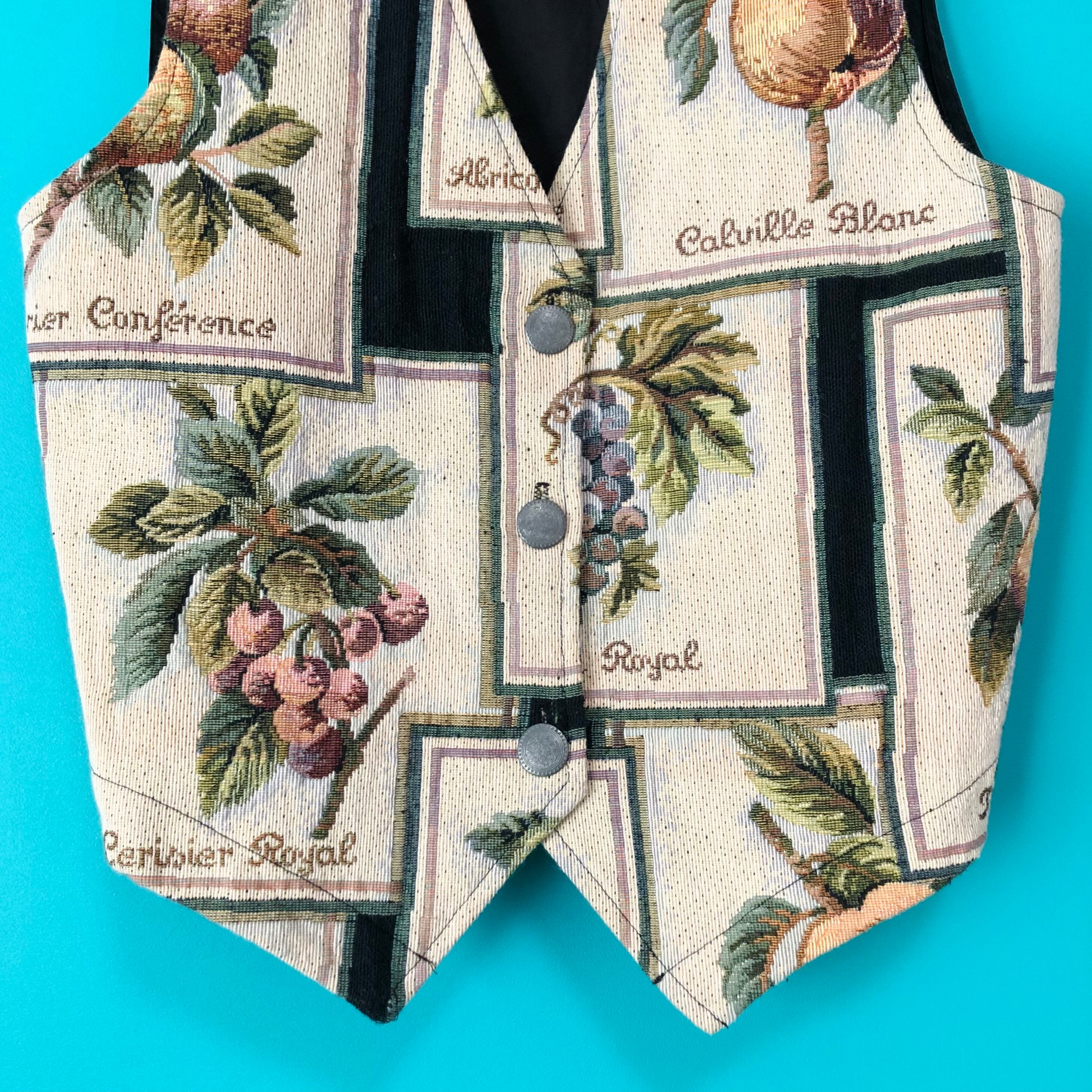 みずみずしいフルーツ柄のゴブラン織りベストです。