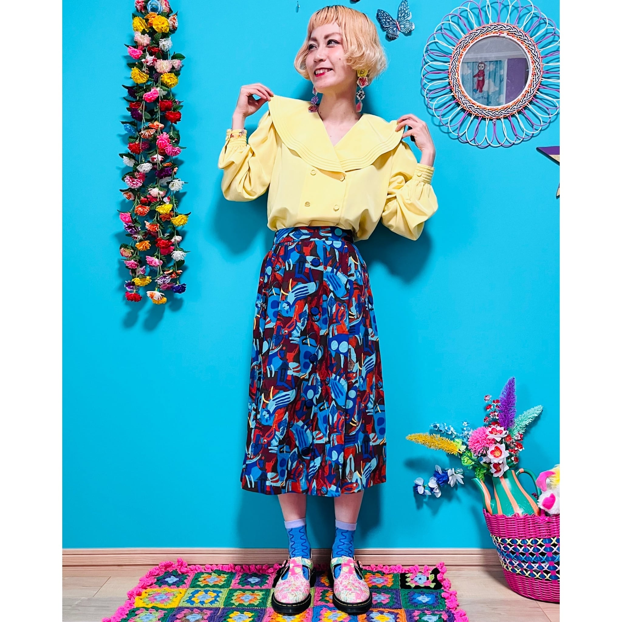 大きな襟が魅力的な黄色いレトロブラウスです。