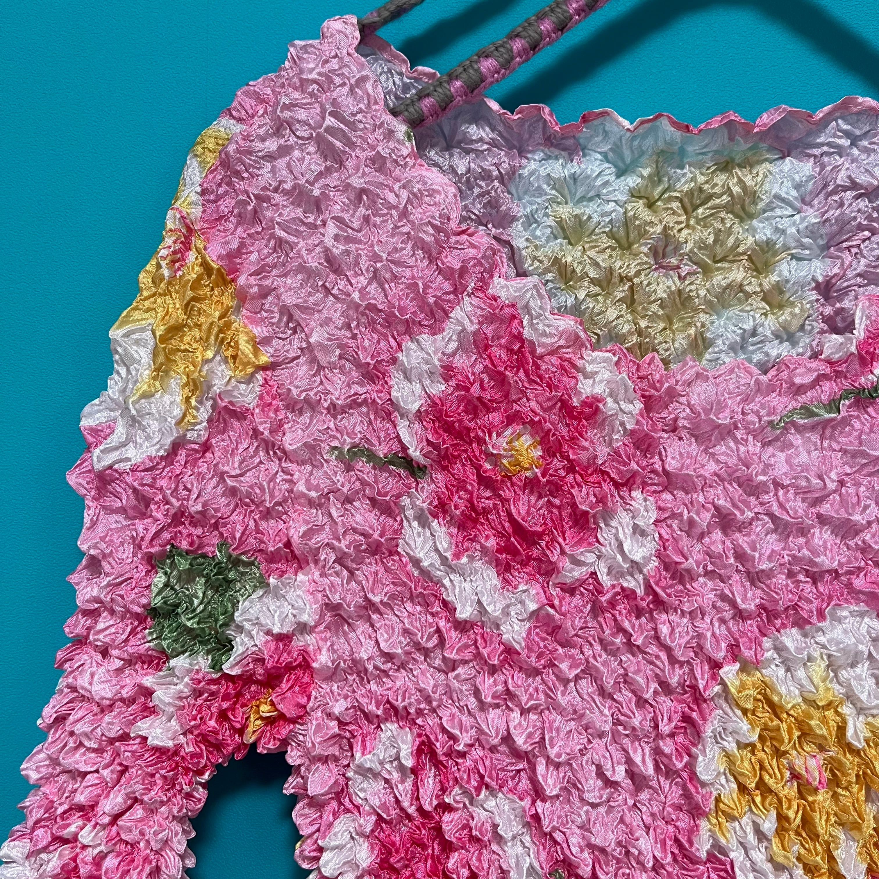 ピンクのお花柄のぽこぽこポップコーントップス!