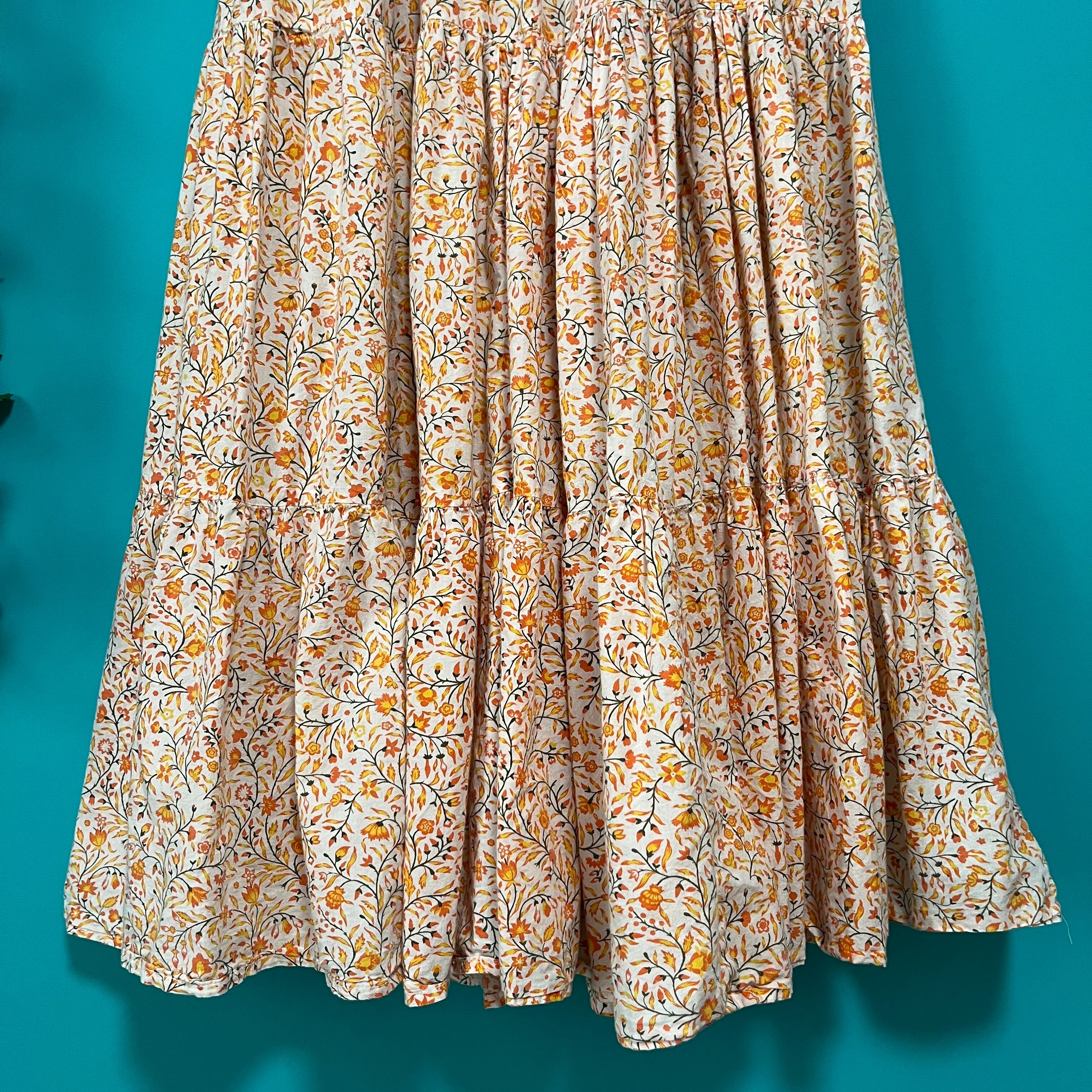 オレンジのお花柄ティアードスカートです。