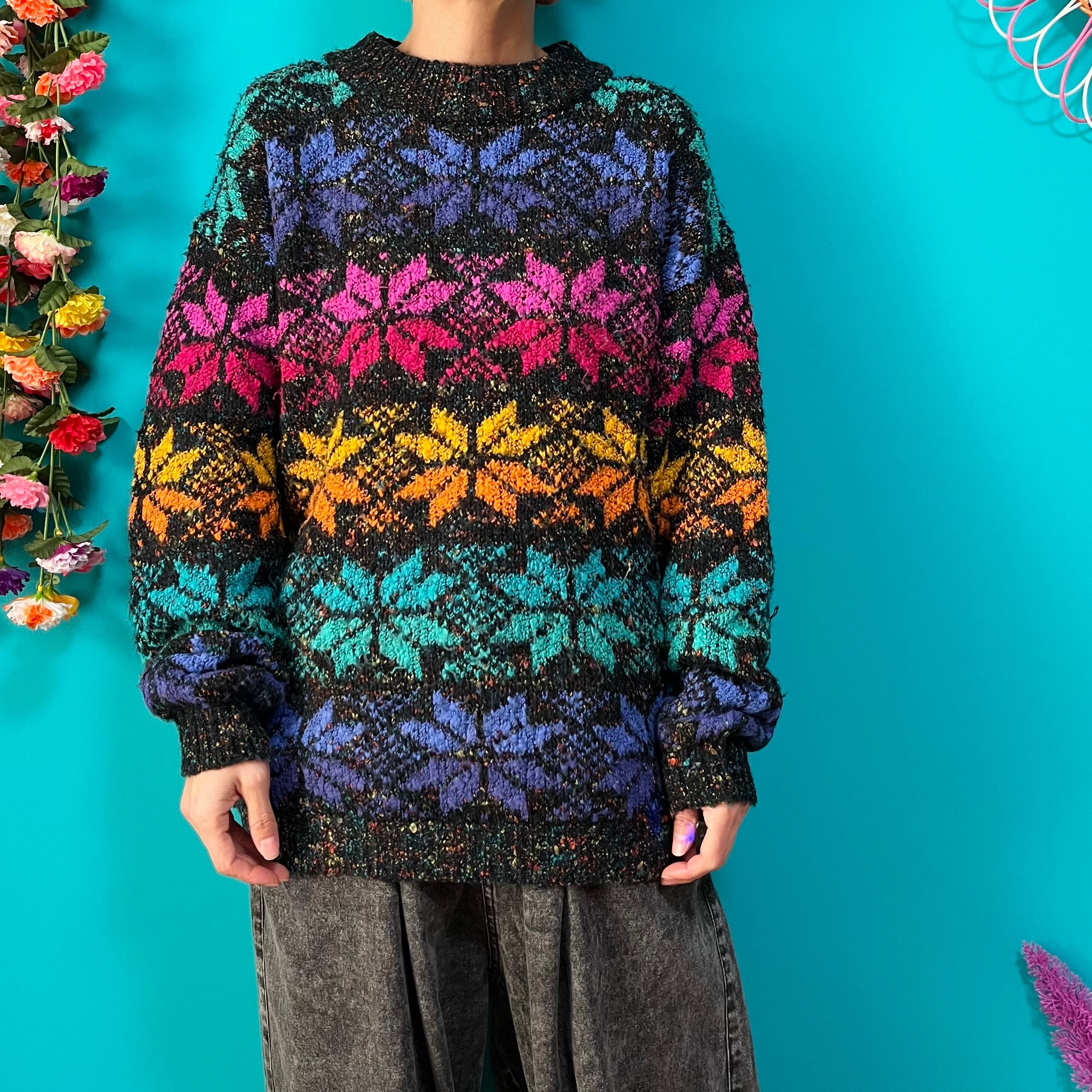 レインボーな雪の結晶柄ニットです。