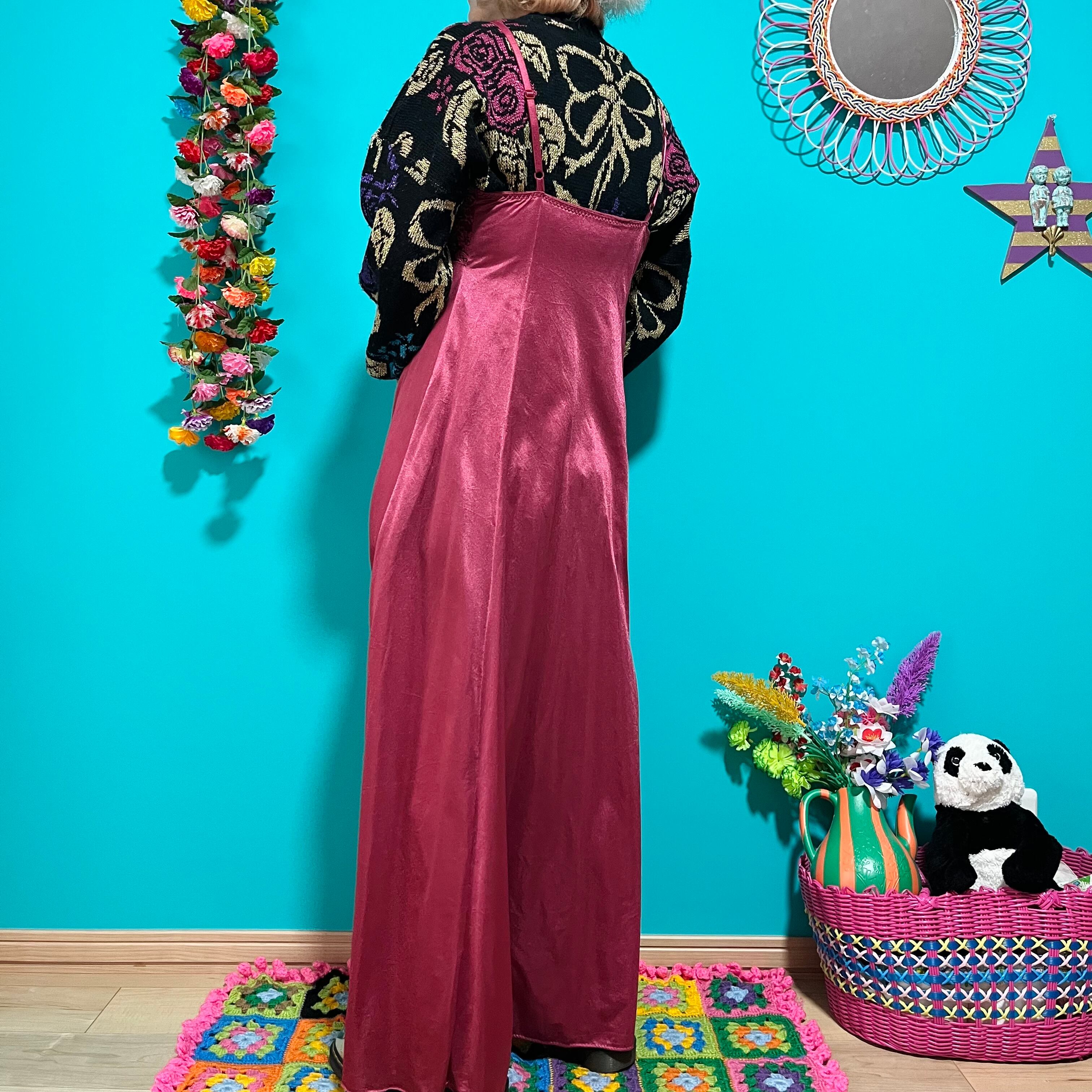 大人っぽいワイン色のロング丈ランジェリードレスです。